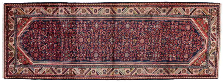 Mattans ID: 309615005166485 Storlek: 333x123 cm Tjocklek: ap. 12 mm Knuttäthet: 128 000 - 160 000 / m² Tillverkning: Knuten för hand Lugg: Handspunnen ull Varp: Bomull Ursprung: Persien / Iran Ålder: Ny Vikt: ap. 16 kg Också känd som Huseinabad I lager: Unik - Endast 1 i lager