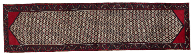 Mattans ID: 308746008887976 Storlek: 409x106 cm Tjocklek: ap. 12 mm Knuttäthet: 128 000 - 160 000 / m² Tillverkning: Knuten för hand Lugg: Handspunnen ull Varp: Bomull Ursprung: Persien / Iran Ålder: Ny Vikt: ap. 17 kg Också känd som Huseinabad I lager: Unik - Endast 1 i lager