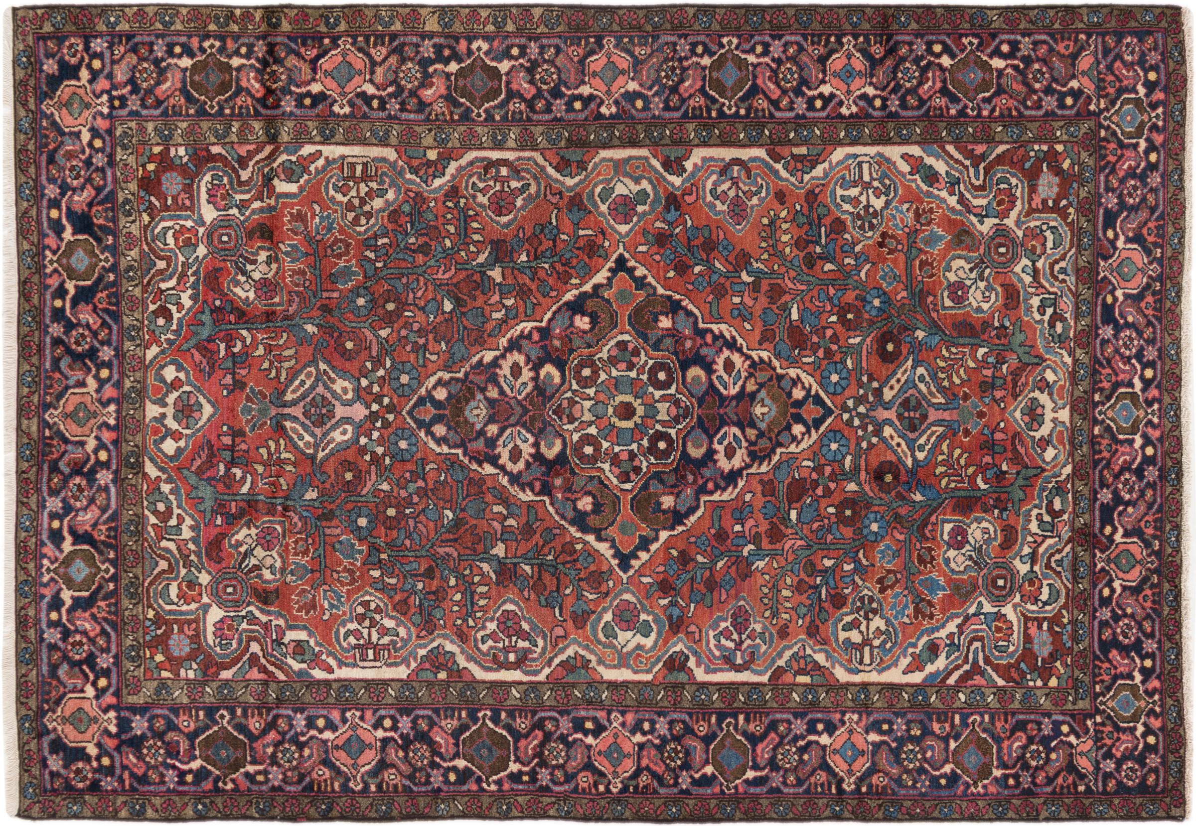 Mattans ID: 296100001716 Storlek: 203x144 cm Tjocklek: ap. 8 mm Knuttäthet: 200 000 - 250 000 / m² Tillverkning: Knuten för hand Lugg: Handspunnen ull Varp: Bomull Ursprung: Persien / Iran Ålder: Gammal/Halvantik, äldre än 50 år Vikt: ap. 10 kg Också känd som Huseinabad I lager: Unik - Endast 1 i lager