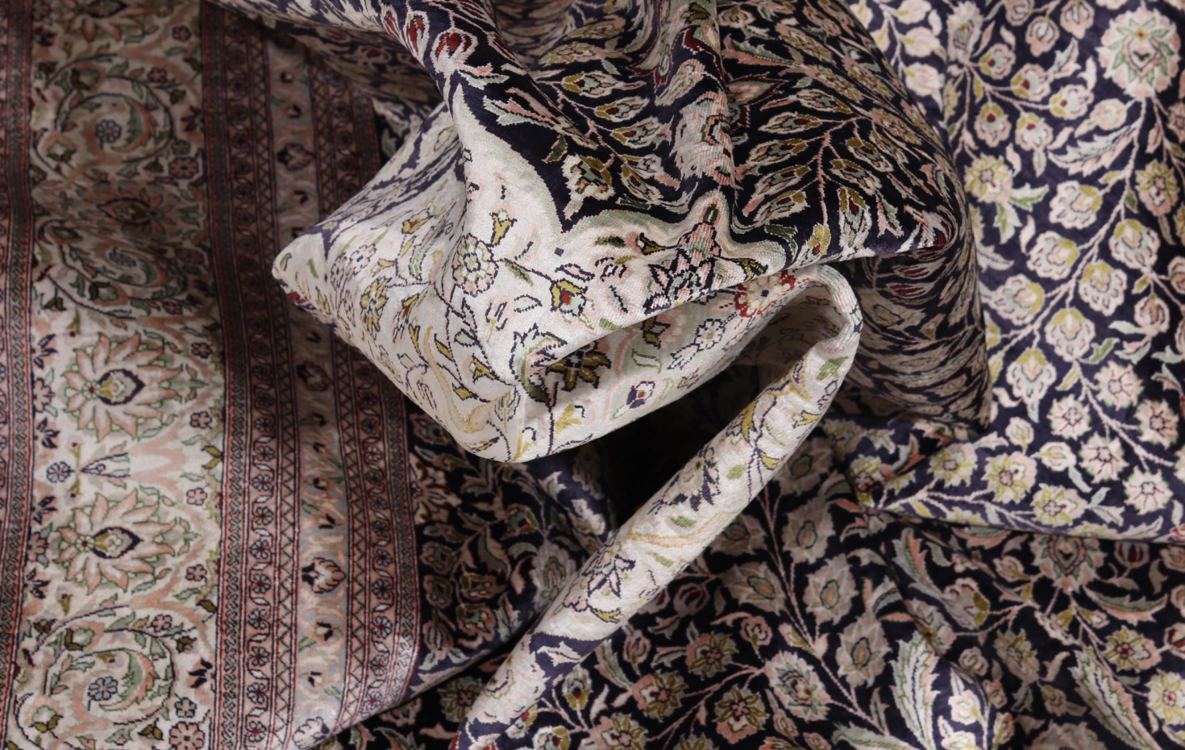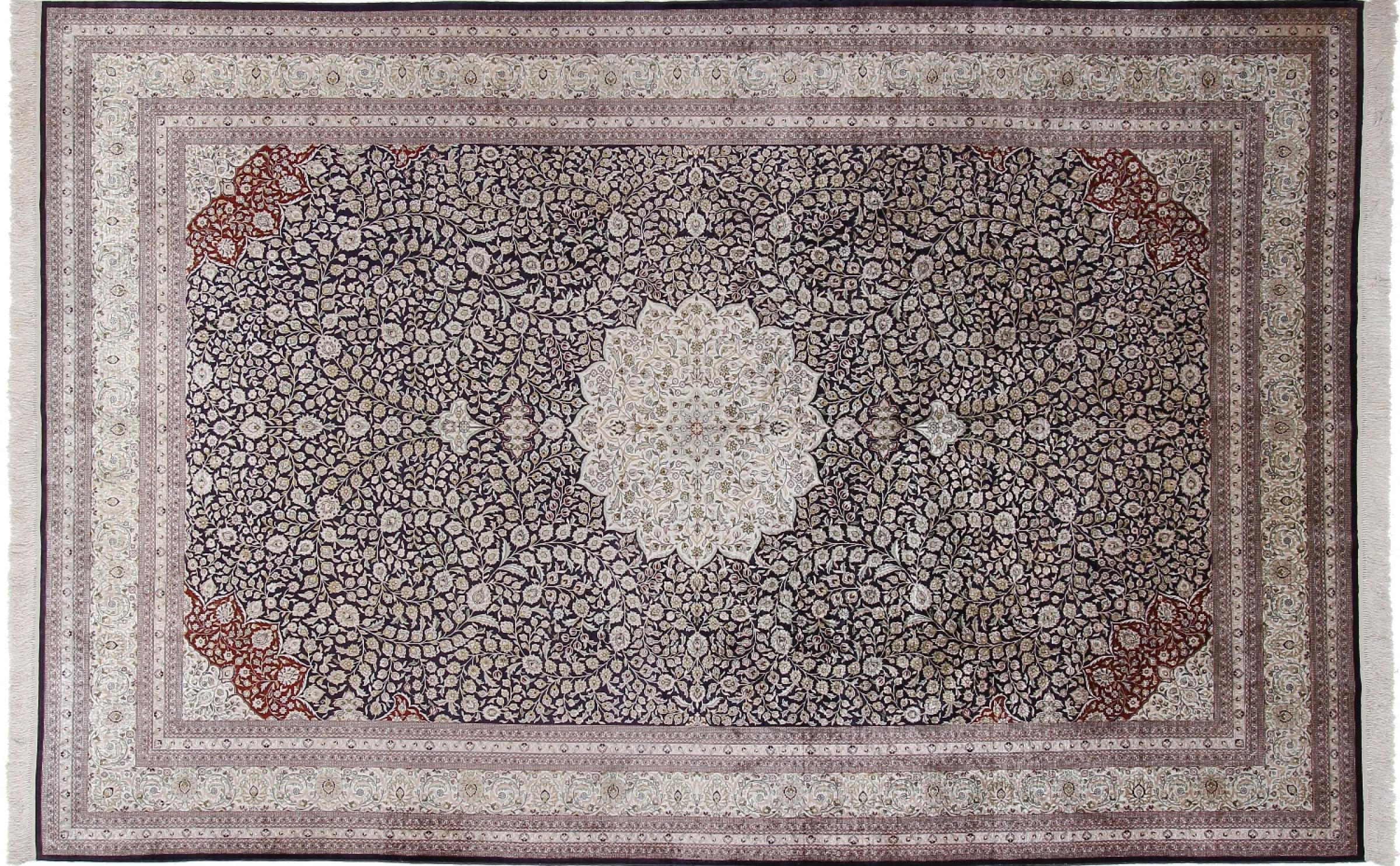Mattans ID: 291973002706119 Storlek: 302x201 cm Tjocklek: ap. 5 mm Knuttäthet: 1 000 000 / m² Tillverkning: Knuten för hand Lugg: Silke Varp: Silke Ursprung: Kina Ålder: Ny Vikt: ap. 18 kg I lager: Unik - Endast 1 i lager