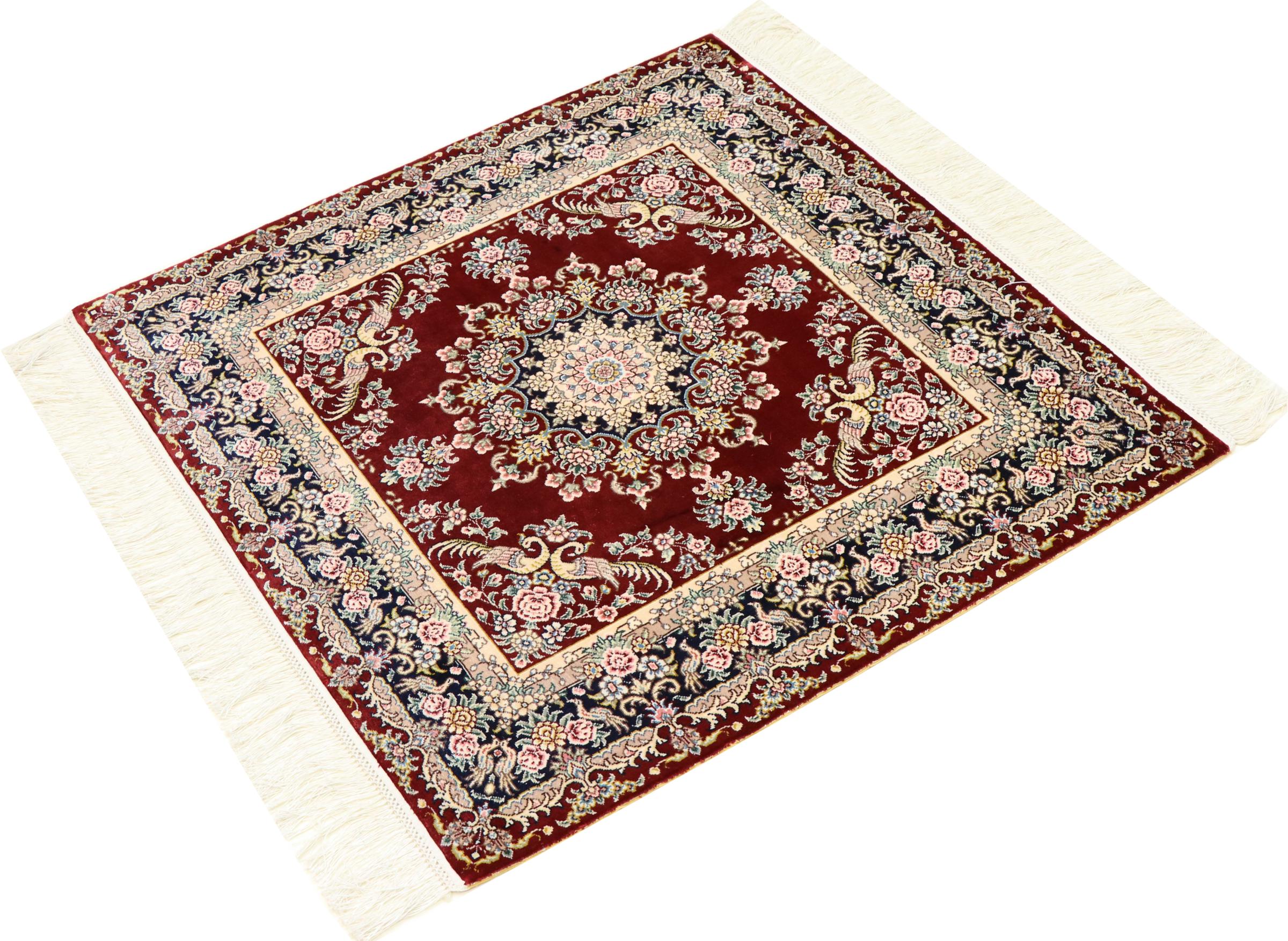Mattans ID: 303384003064002 Storlek: 78x75 cm Tjocklek: ap. 5 mm Knuttäthet: 640 000 / m² Tillverkning: Knuten för hand Lugg: Silke Varp: Silke Ursprung: kalkon Ålder: Ny Vikt: ap. 1 kg I lager: Unik - Endast 1 i lager