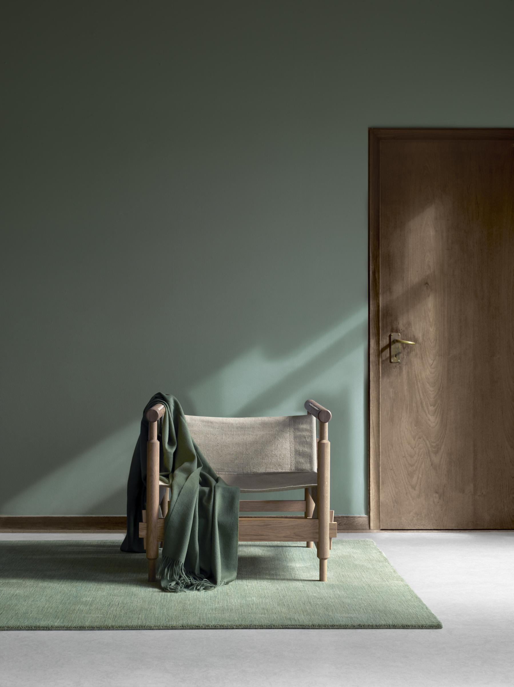 Denna handgjorda designermatta använder medvetet fina nyanser av ett specifikt färgspektrum. Detta skapar en lugn och samtidigt modern design. Naturlig ull har använts tillsammans med viskos för att skapa en vacker glans. Färgspektrumet ser verkligen fantastiskt ut i verkligheten.