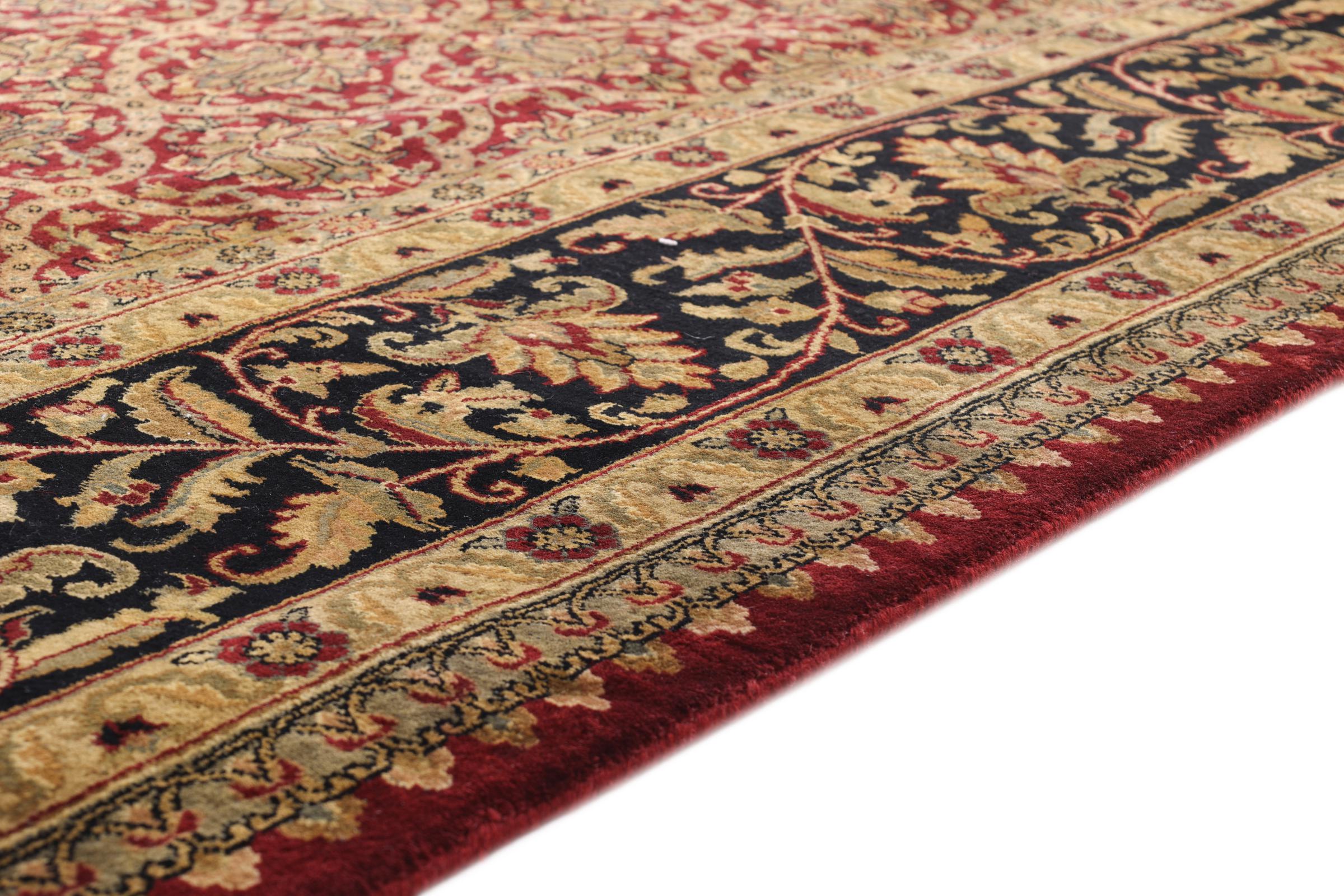Mattans ID: 198228007471126 Storlek: 365x275 cm Tjocklek: ap. 12 mm Knuttäthet: 200 000 - 250 000 / m² Tillverkning: Knuten för hand Lugg: Handspunnen ull Varp: Bomull Ursprung: Indien Ålder: Ny Vikt: ap. 40 kg I lager: Unik - Endast 1 i lager