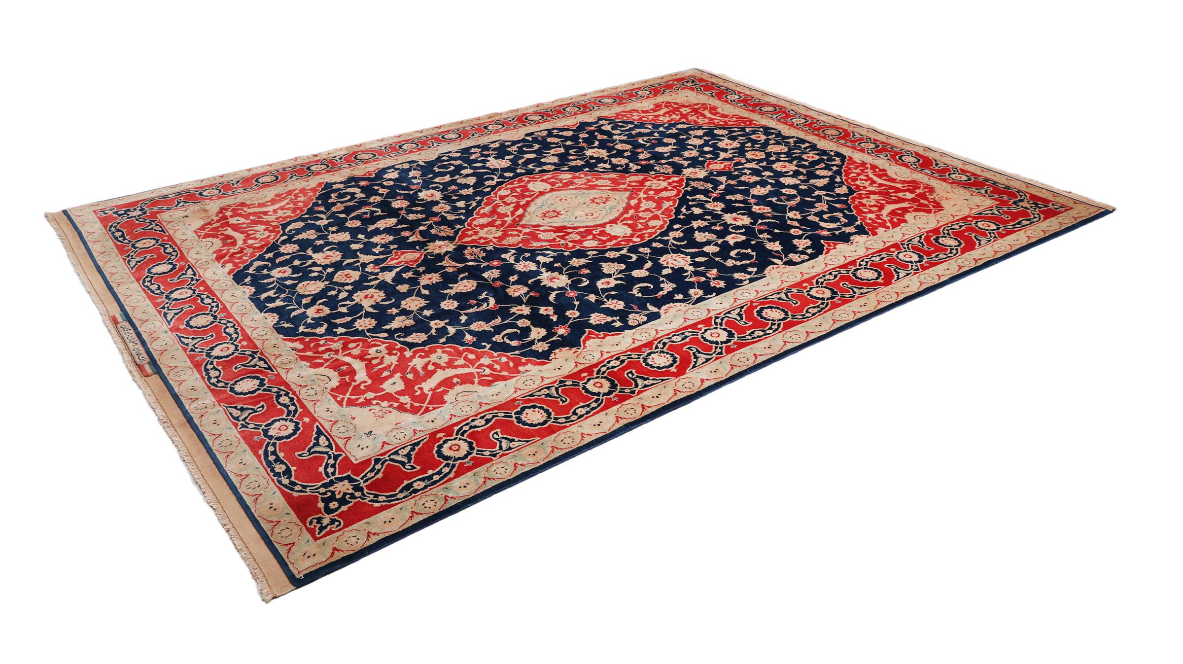 Mattans ID: 316307006172017 Storlek: 335x251 cm Tjocklek: ap. 6 mm Knuttäthet: 410 000 - 450 000 / m² Tillverkning: Knuten för hand Lugg: Handspunnen ull Varp: Bomull Ursprung: Persien / Iran Ålder: Ny Vikt: ap. 25 kg I lager: Unik - Endast 1 i lager