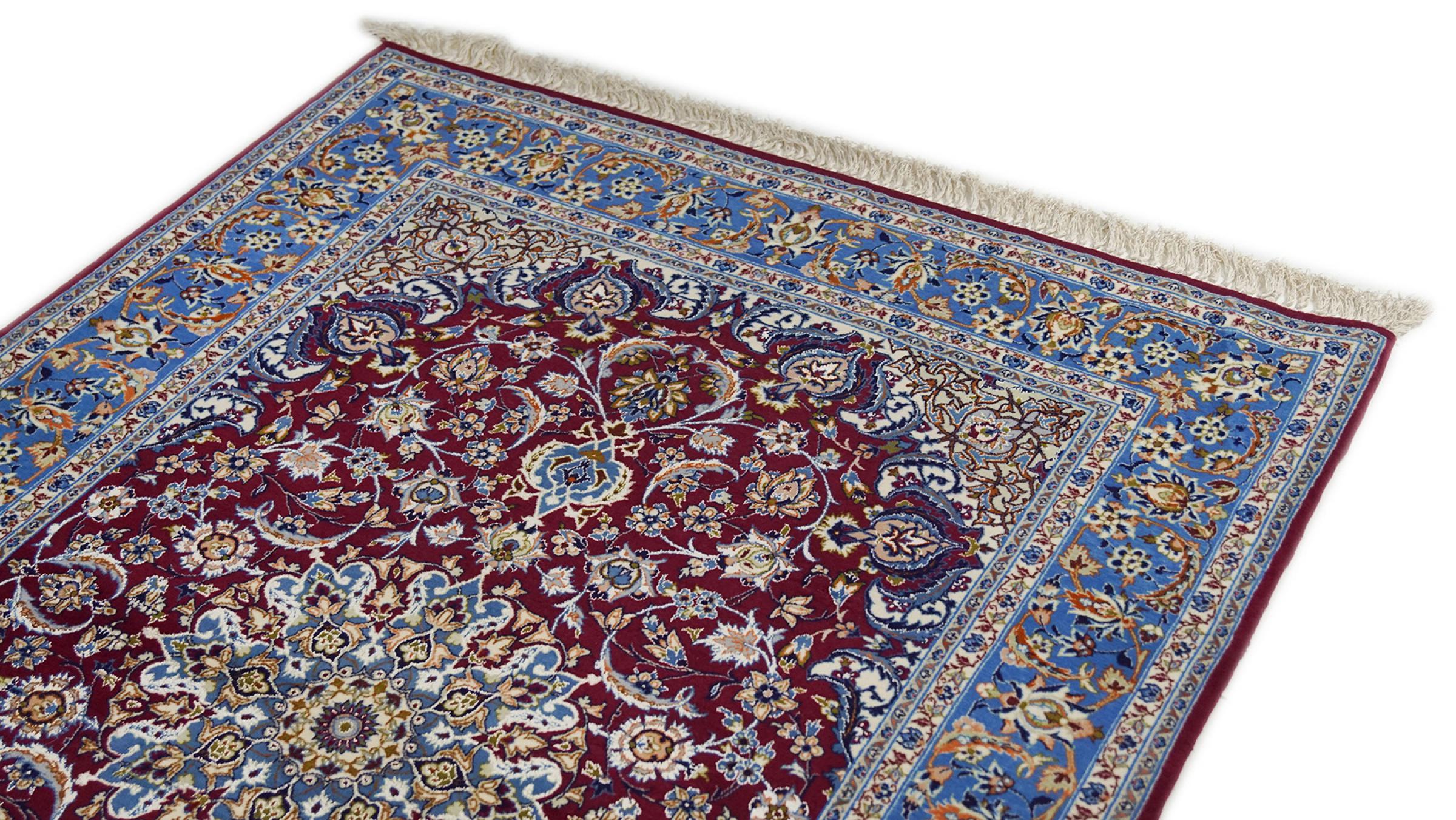Det här mattan kommer från Iran (tidigare Persien) och är förmodligen det högsta rykte bland alla handknutna mattor som persisk matta. Ingen region ser tillbaka på en jämförbar lång tradition inom mattvätning än Iran. Så här kommer de finaste och mest utarbetade mattorna hit. Den persiska knutens robusthet, hållbarhet och kvalitet är fortfarande oöverträffad idag. Persiska mattor namnges vanligtvis efter din ursprungsregion. Så både en Nain, en Ghom och en Isfahan-matta kommer från staden med samma namn i Iran.