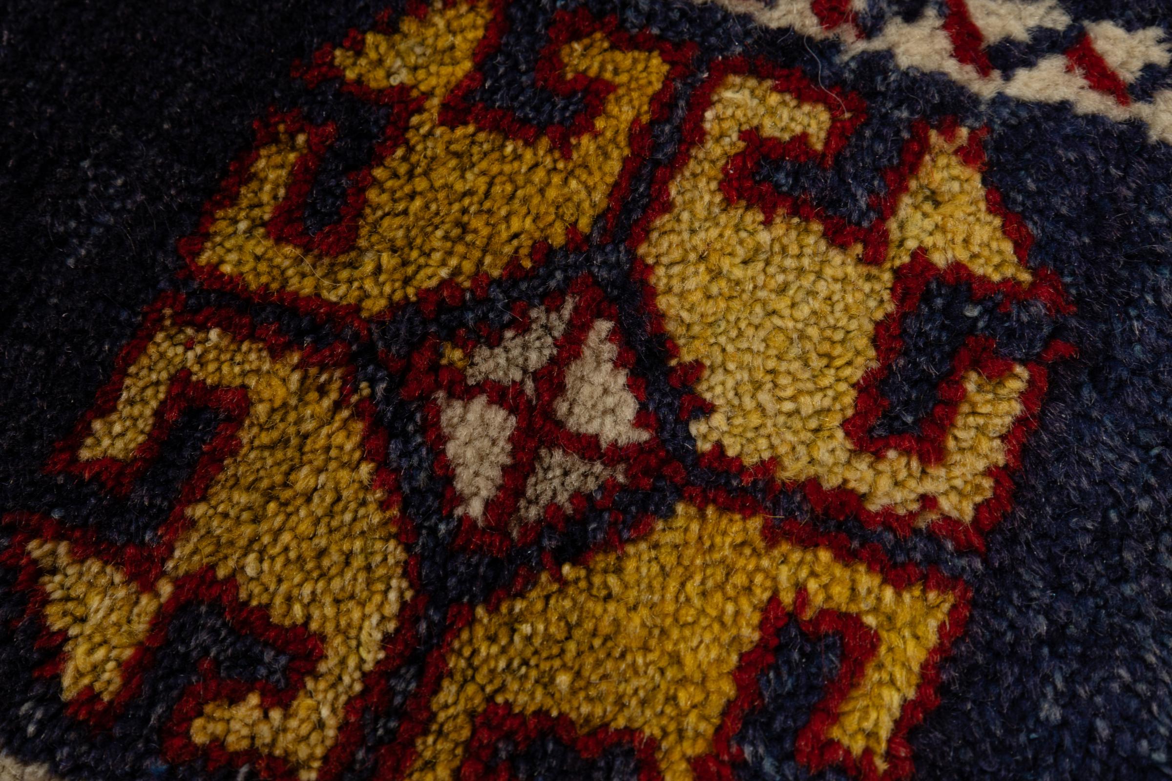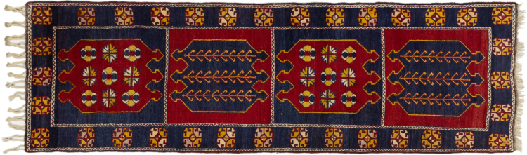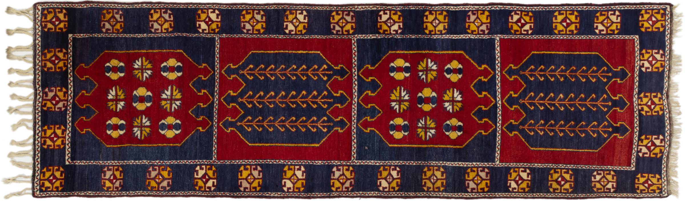 Mattans ID: 297058002459198 Storlek: 366x113 cm Tjocklek: ap. 12 mm Knuttäthet: 128 000 - 160 000 / m² Tillverkning: Knuten för hand Lugg: Ull Varp: Ull Ursprung: kalkon Ålder: Gammal/Halvantik, äldre än 50 år Vikt: ap. 14 kg I lager: Unik - Endast 1 i lager