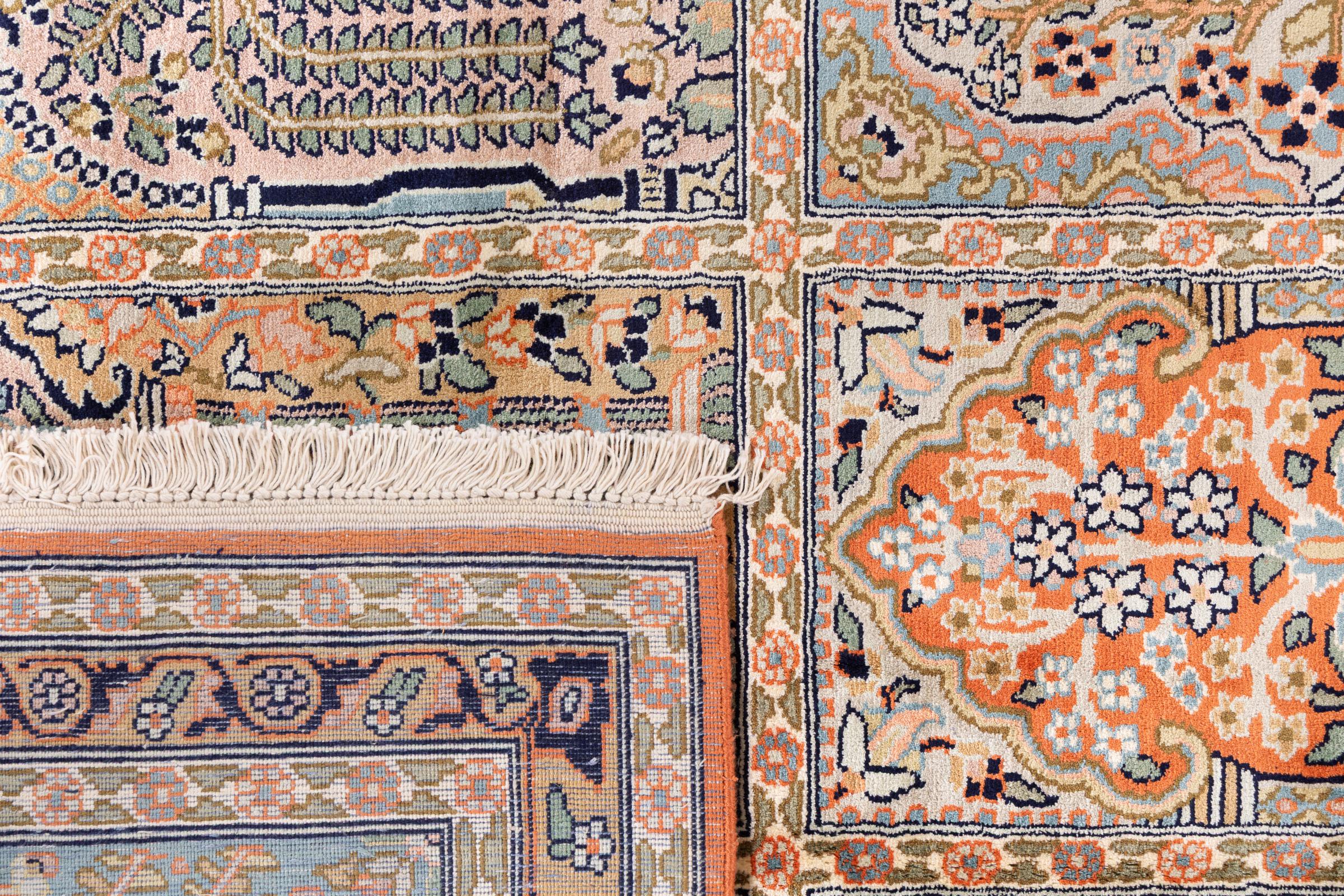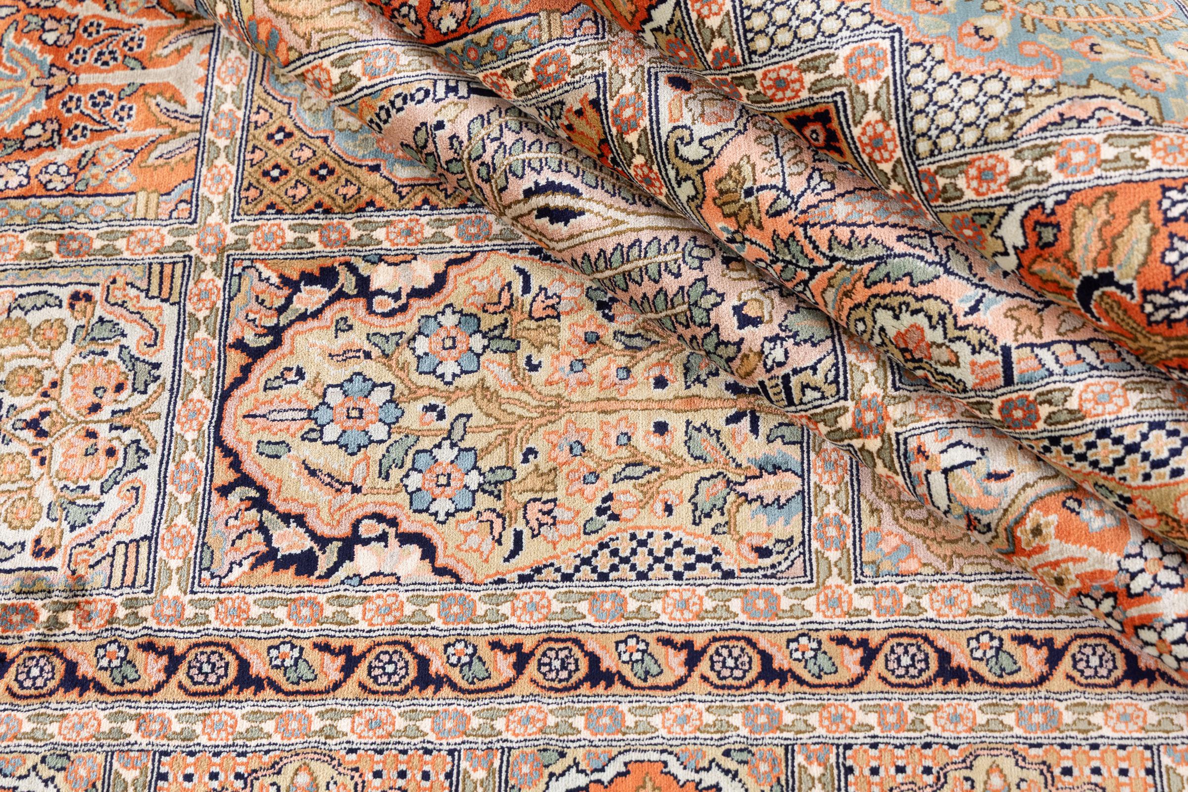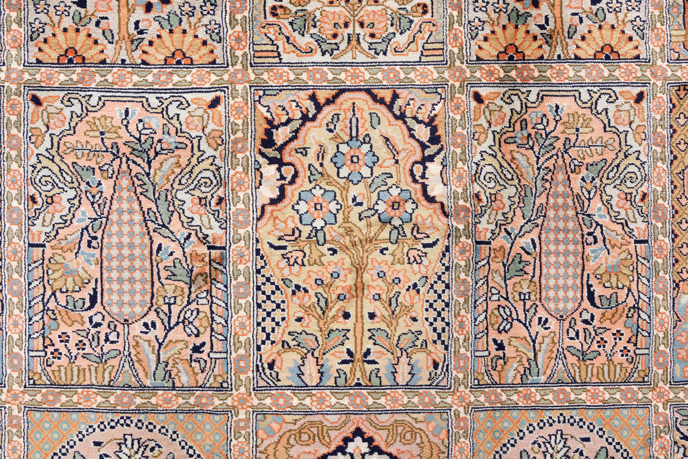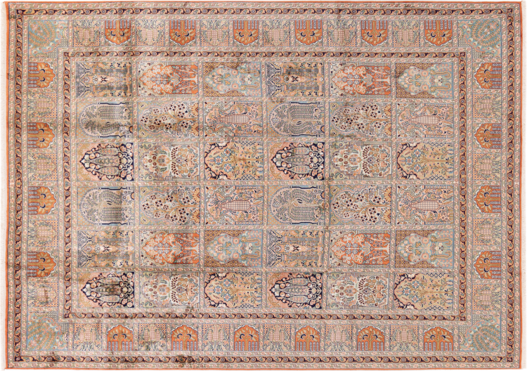 Mattans ID: 3307800263838 Storlek: 298x214 cm Tjocklek: ap. 7 mm Knuttäthet: 650 000 / m² Tillverkning: Knuten för hand Lugg: Silke Varp: Bomull Ursprung: Indien Ålder: Ny Vikt: ap. 19 kg I lager: Unik - Endast 1 i lager