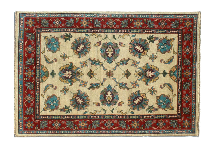 Mattans ID: 291009004093628 Storlek: 179x121 cm Tjocklek: ap. 5 mm Knuttäthet: 160 000 - 200 000 / m² Tillverkning: Knuten för hand Lugg: Handspunnen ull Varp: Bomull Ursprung: pakistan Ålder: Ny Vikt: ap. 5 kg I lager: Unik