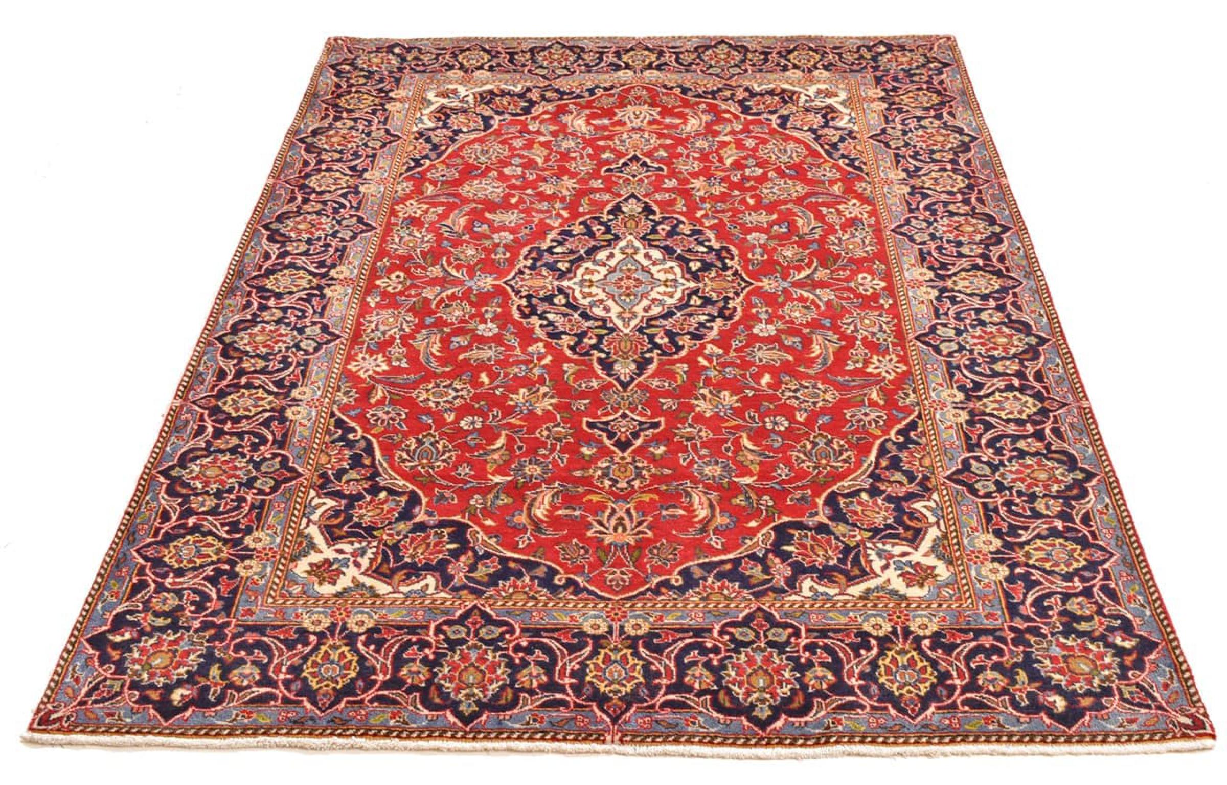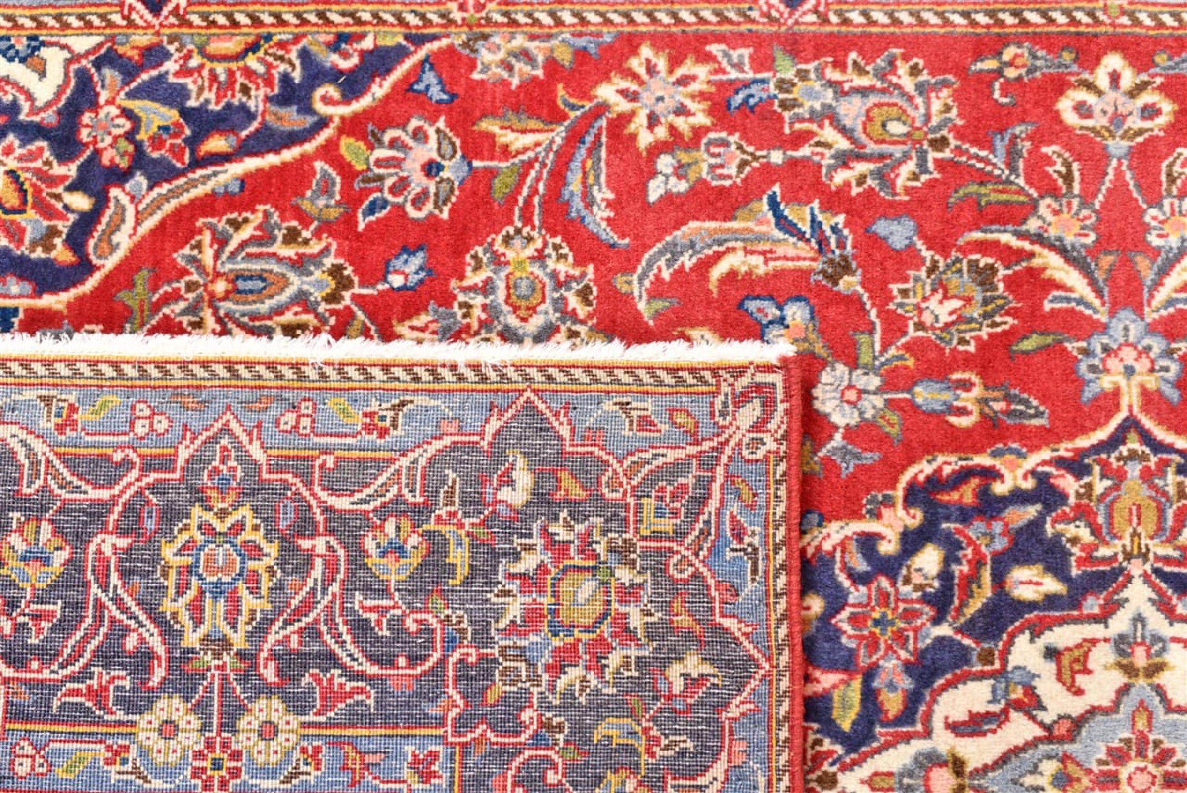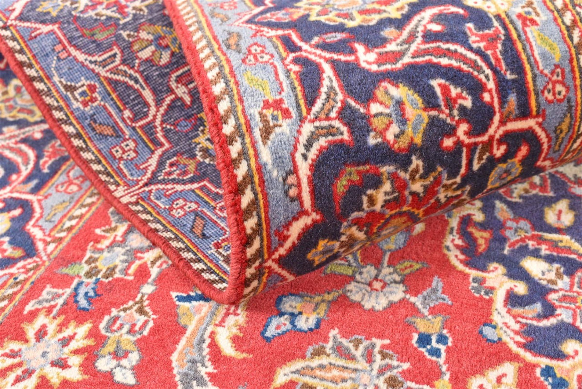 Denna matta från Kashan (Keshan) hålls i sin mycket traditionella och typiska persiska design med vackra ornament. Kashan-mattor är mycket populära på grund av sin exceptionellt eleganta design. Dessa mattor kommer från Kashan, en stad på den antika sidenvägen. Denna matta har knutens för hand av högkvalitativ fårull och kommer att bli en unik höjdpunkt i ditt hem.