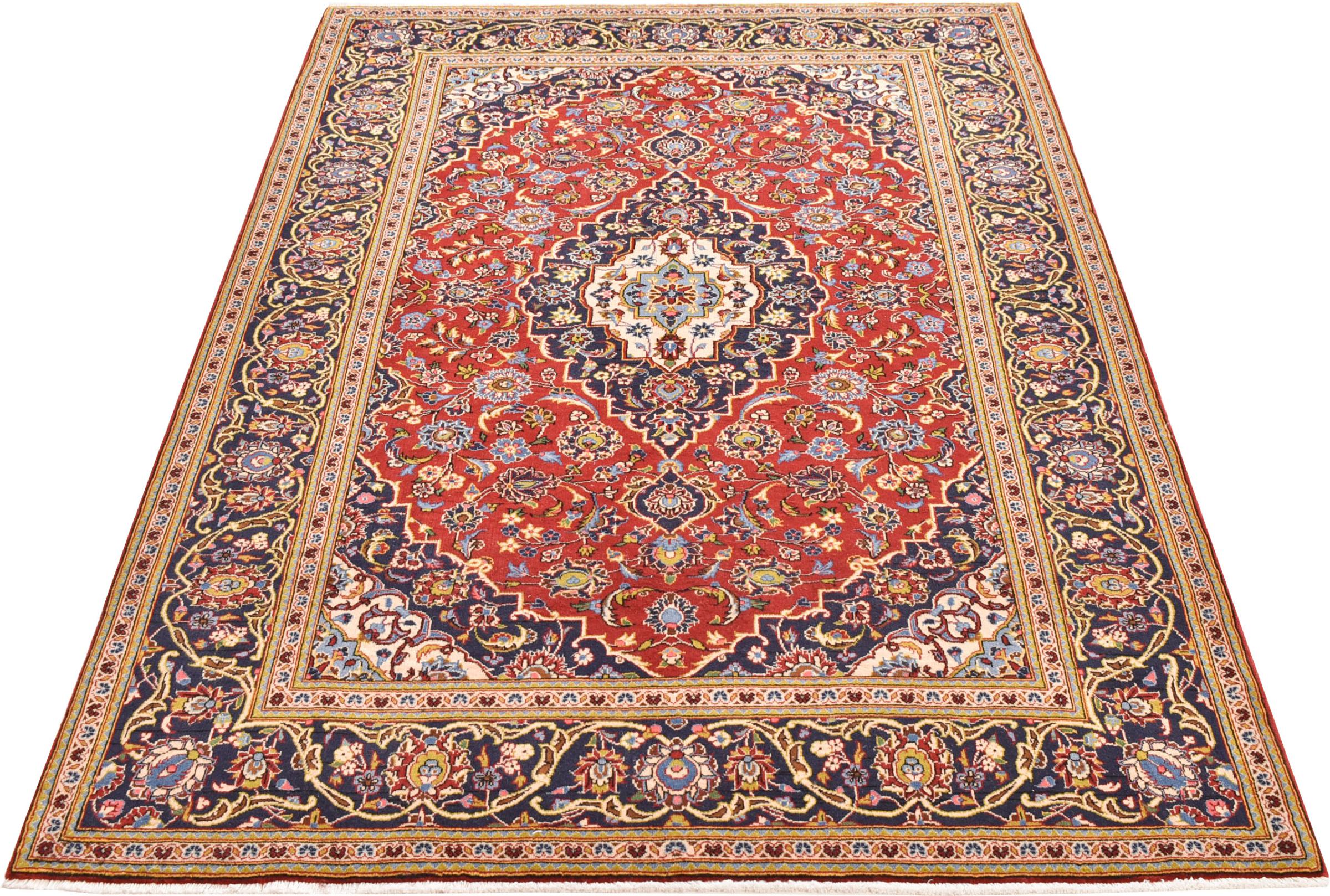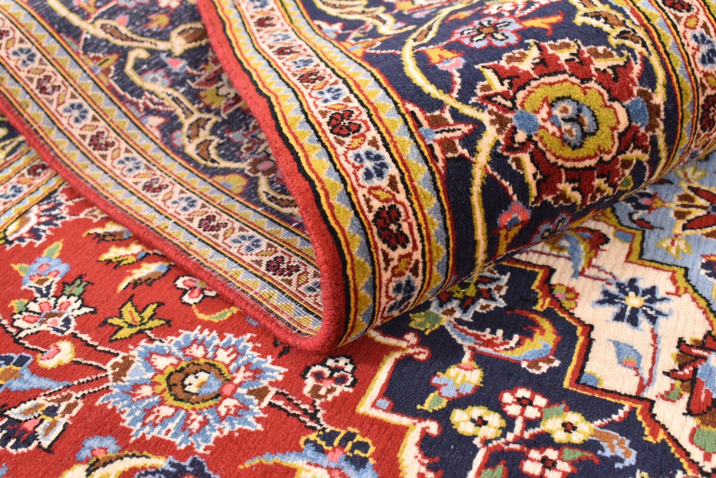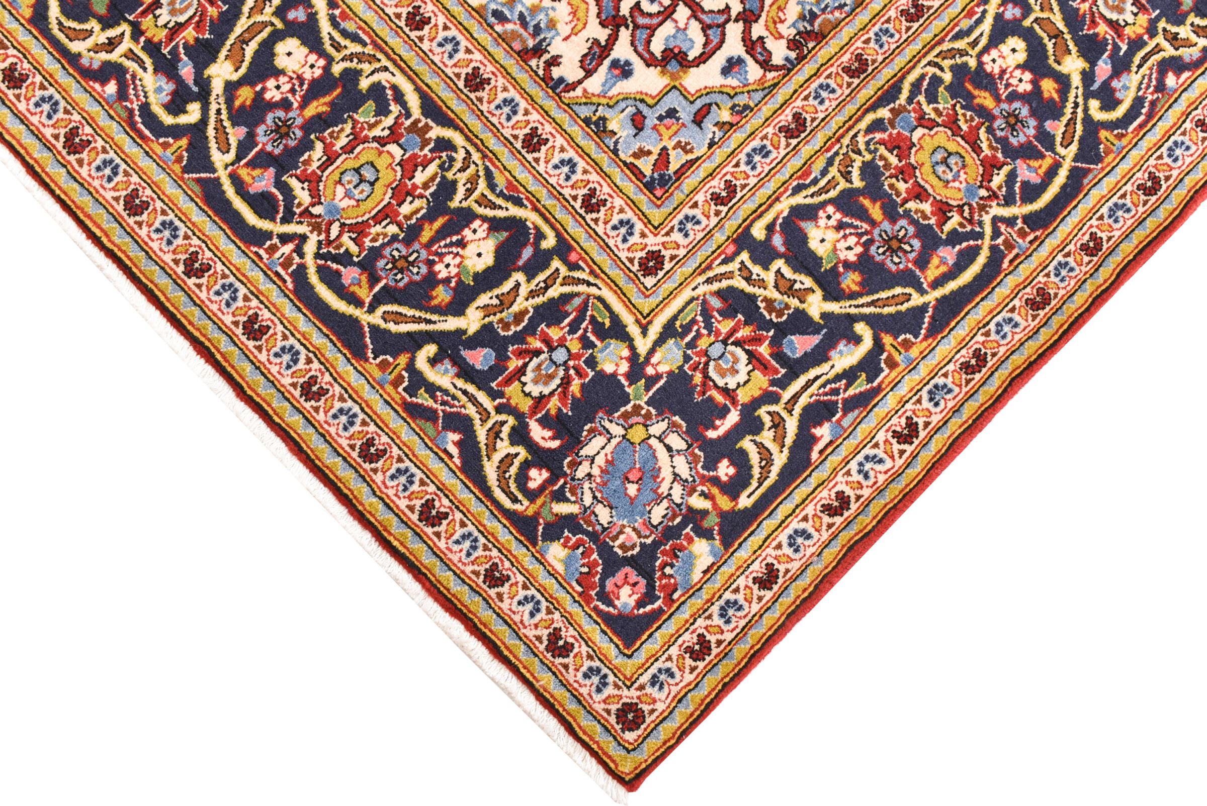 Denna matta från Kashan (Keshan) hålls i sin mycket traditionella och typiska persiska design med vackra ornament. Kashan-mattor är mycket populära på grund av sin exceptionellt eleganta design. Dessa mattor kommer från Kashan, en stad på den antika sidenvägen. Denna matta har knutens för hand av högkvalitativ fårull och kommer att bli en unik höjdpunkt i ditt hem.