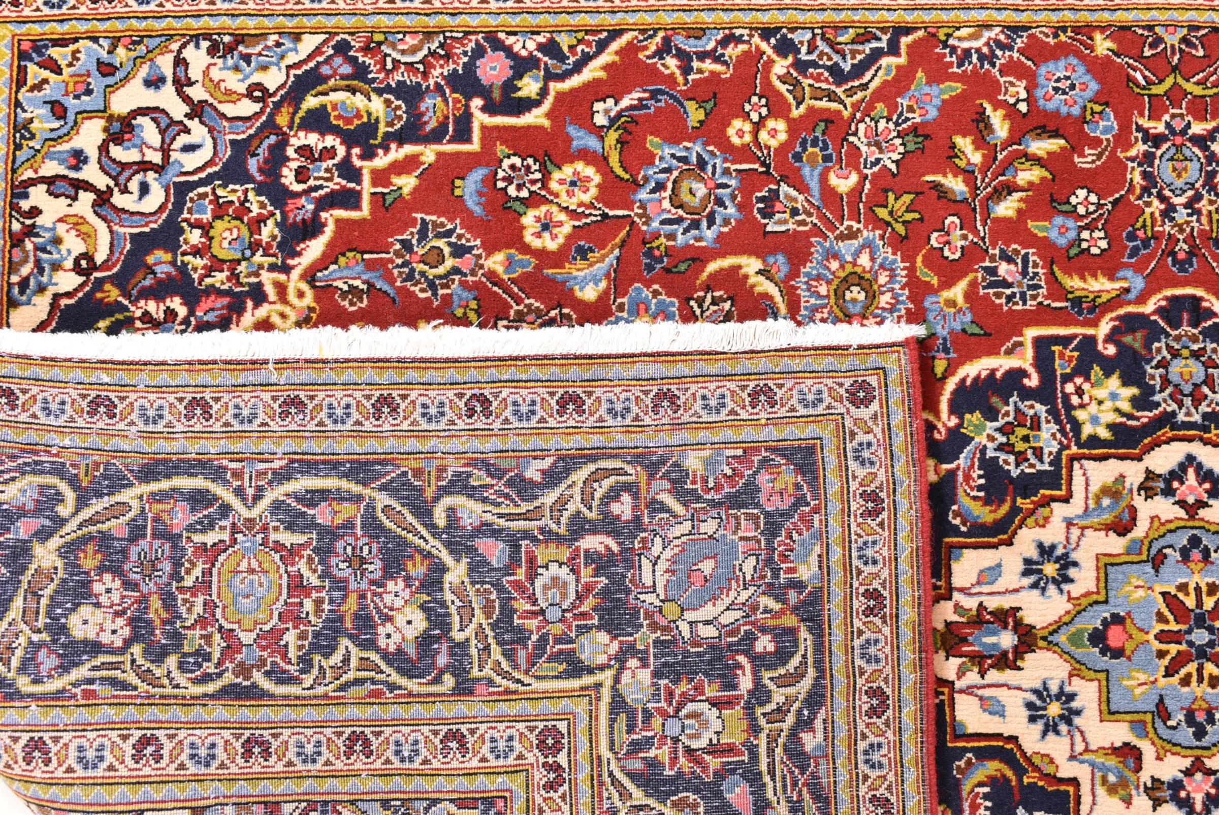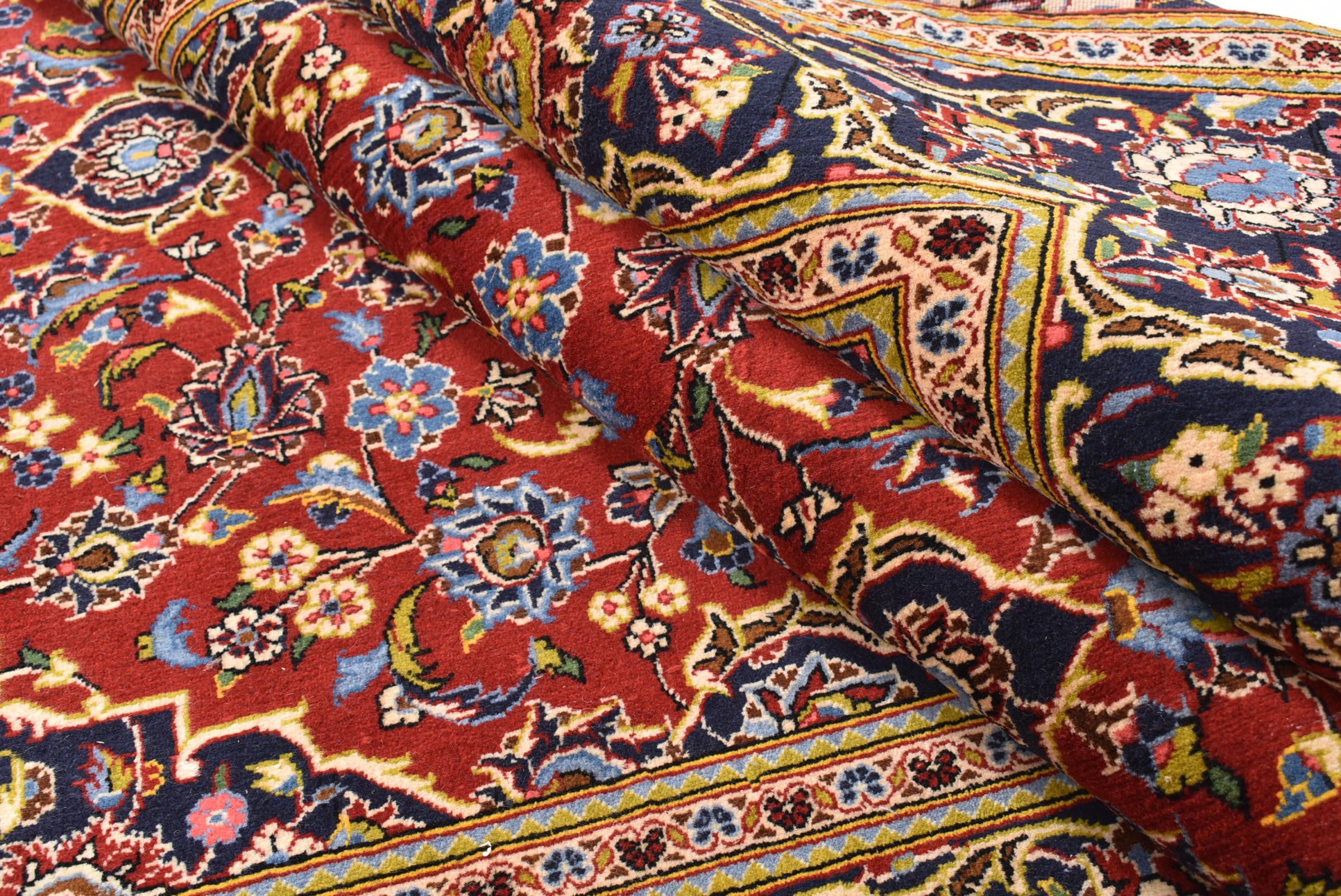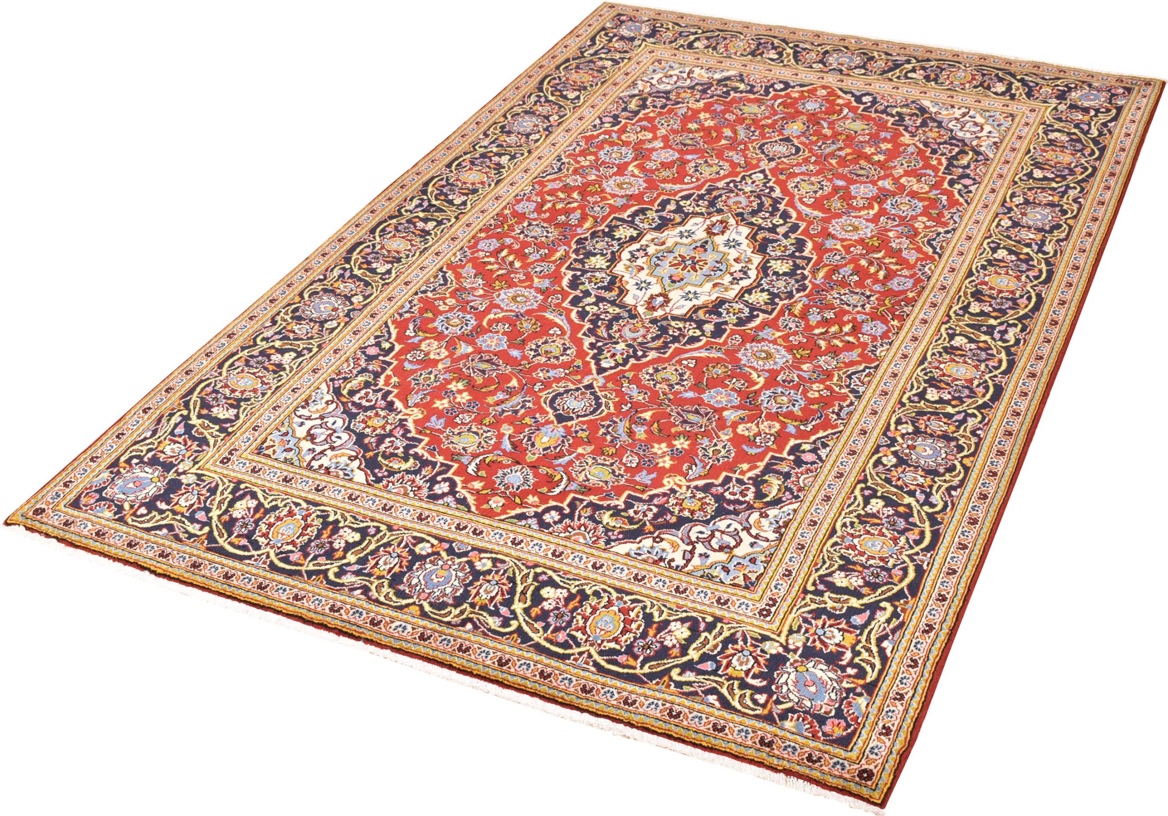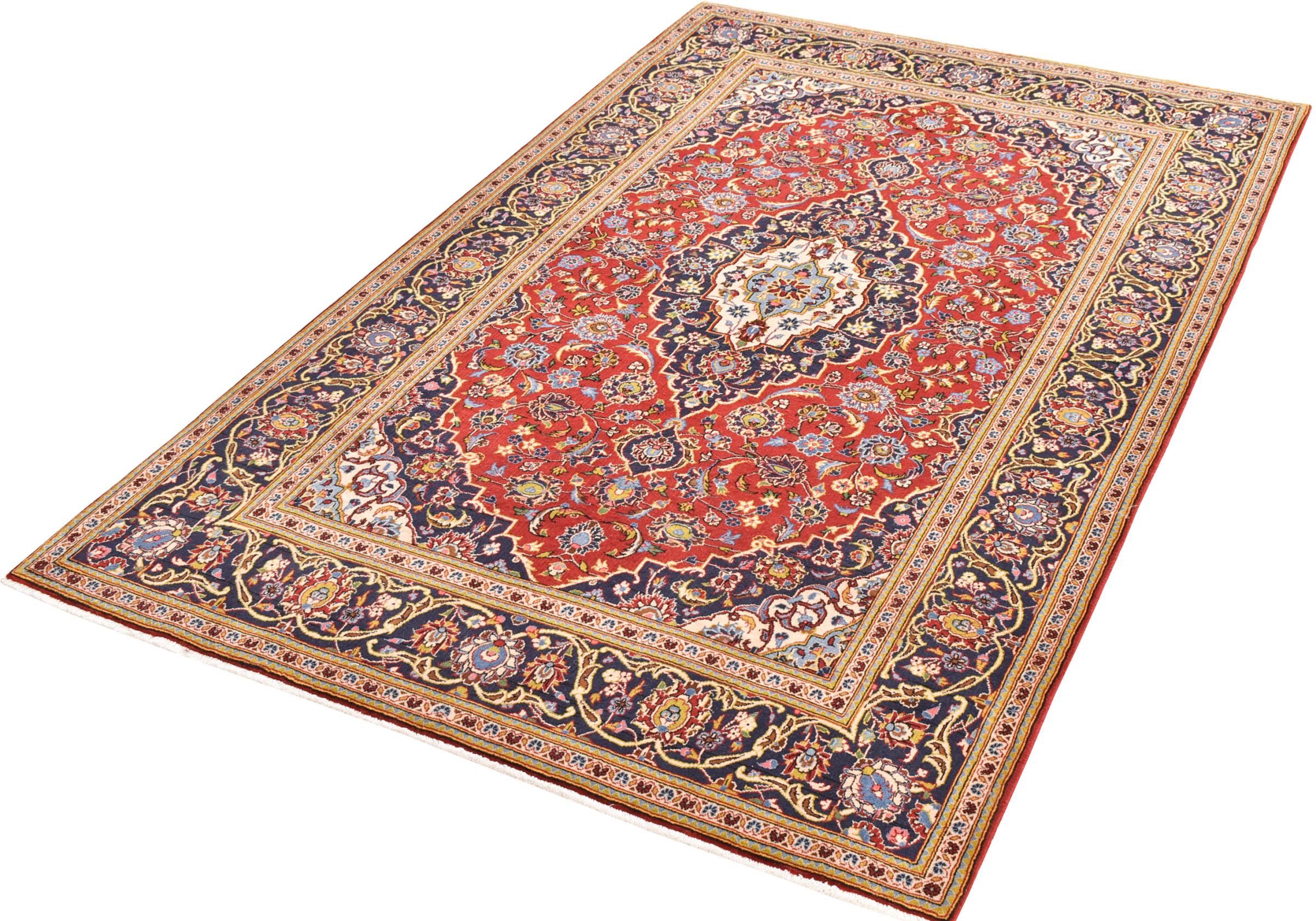Denna matta från Kashan (Keshan) hålls i sin mycket traditionella och typiska persiska design med vackra ornament. Kashan-mattor är mycket populära på grund av sin exceptionellt eleganta design. Dessa mattor kommer från Kashan, en stad på den antika sidenvägen. Denna matta har knutens för hand av högkvalitativ fårull och kommer att bli en unik höjdpunkt i ditt hem.