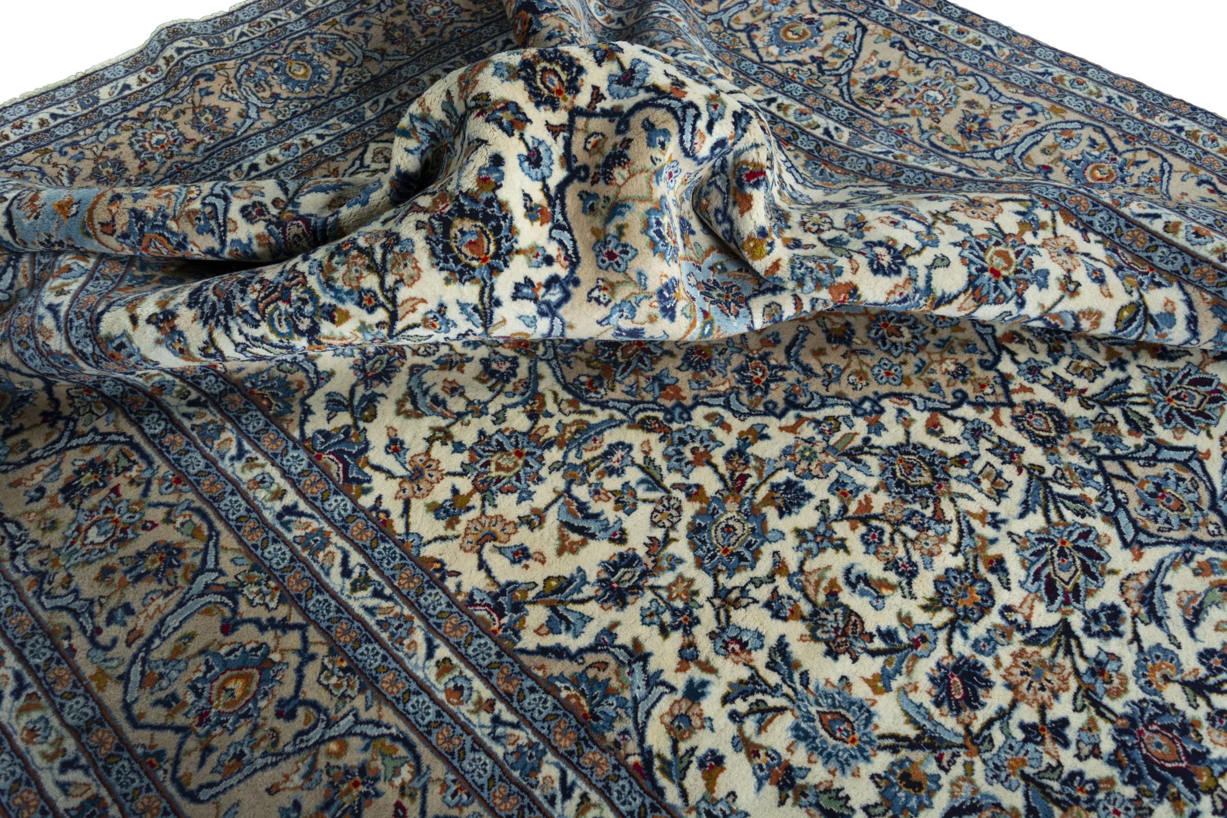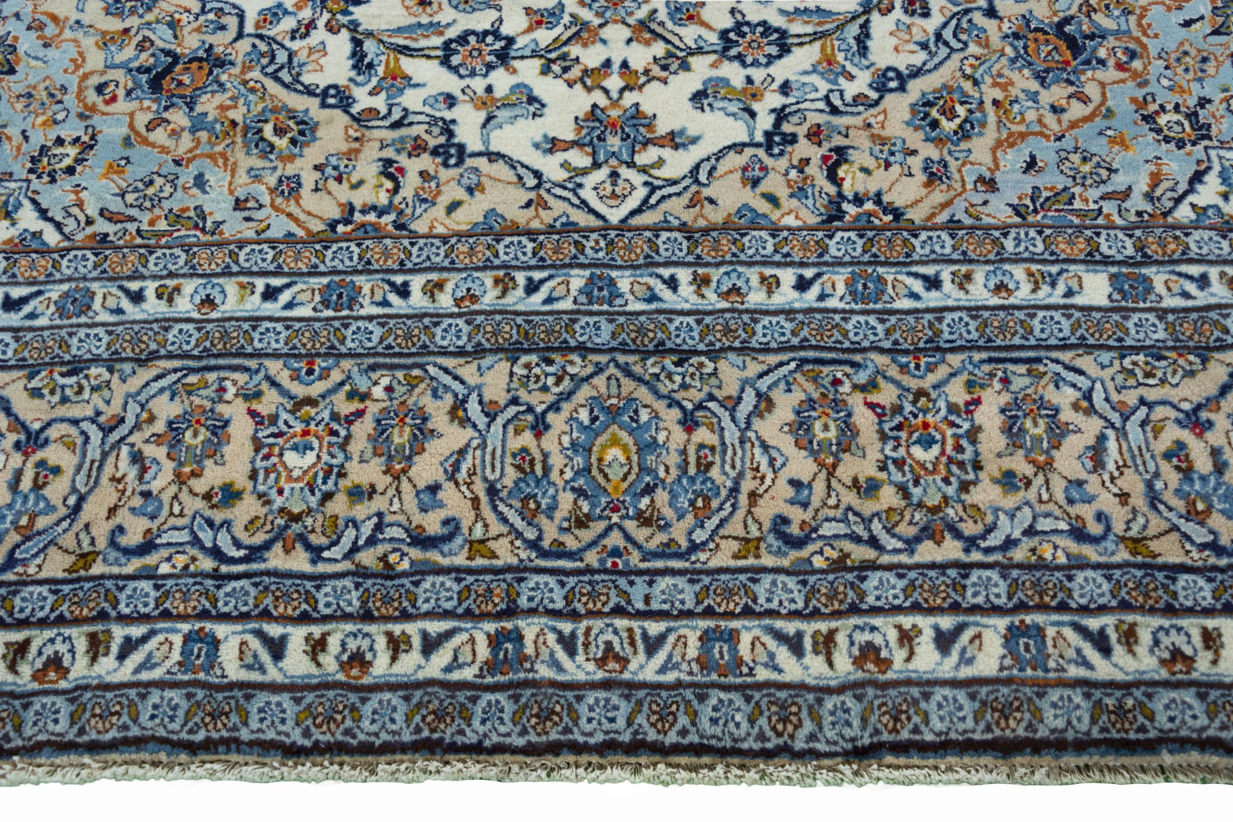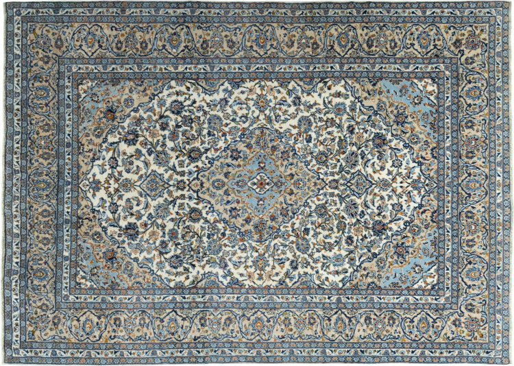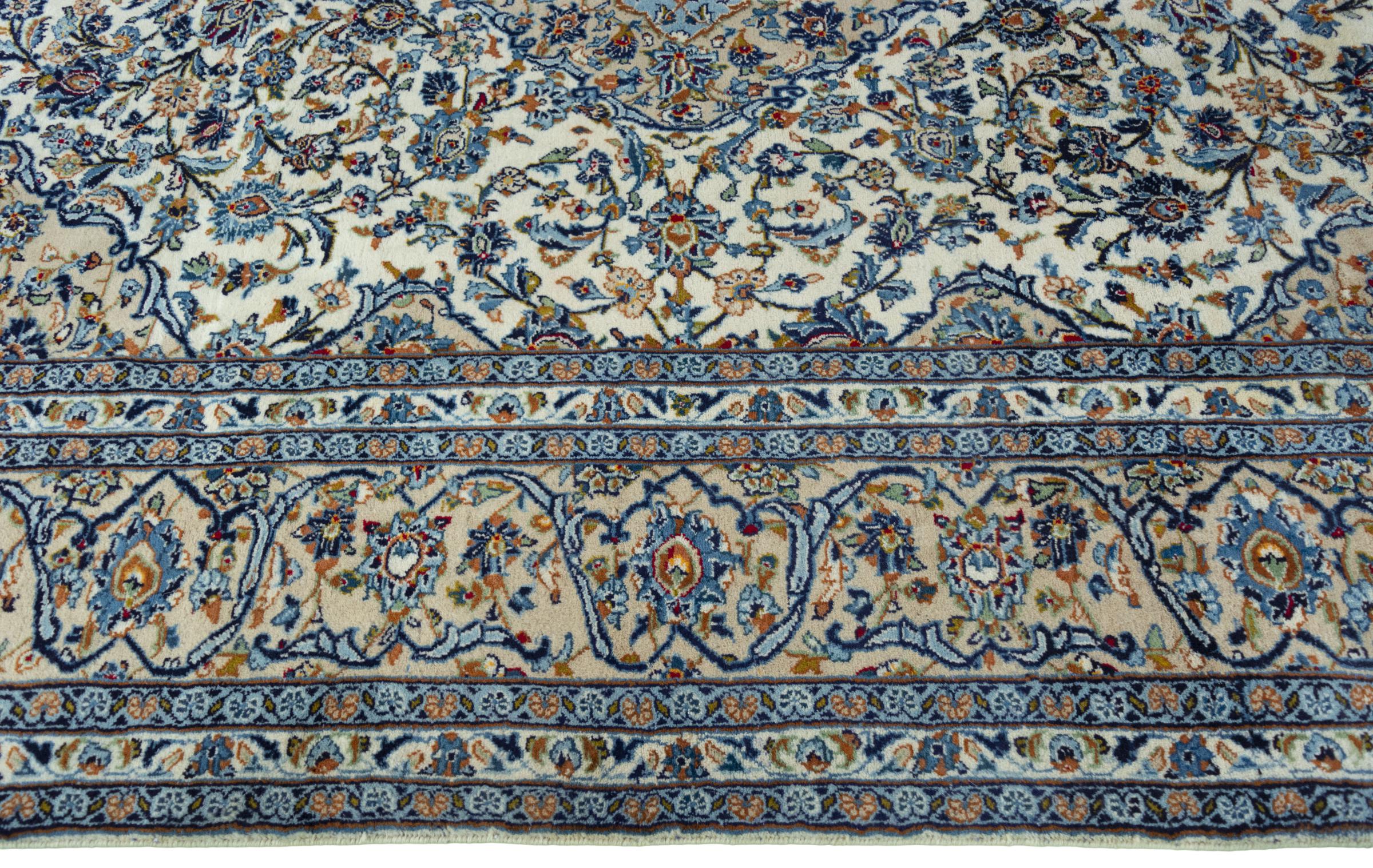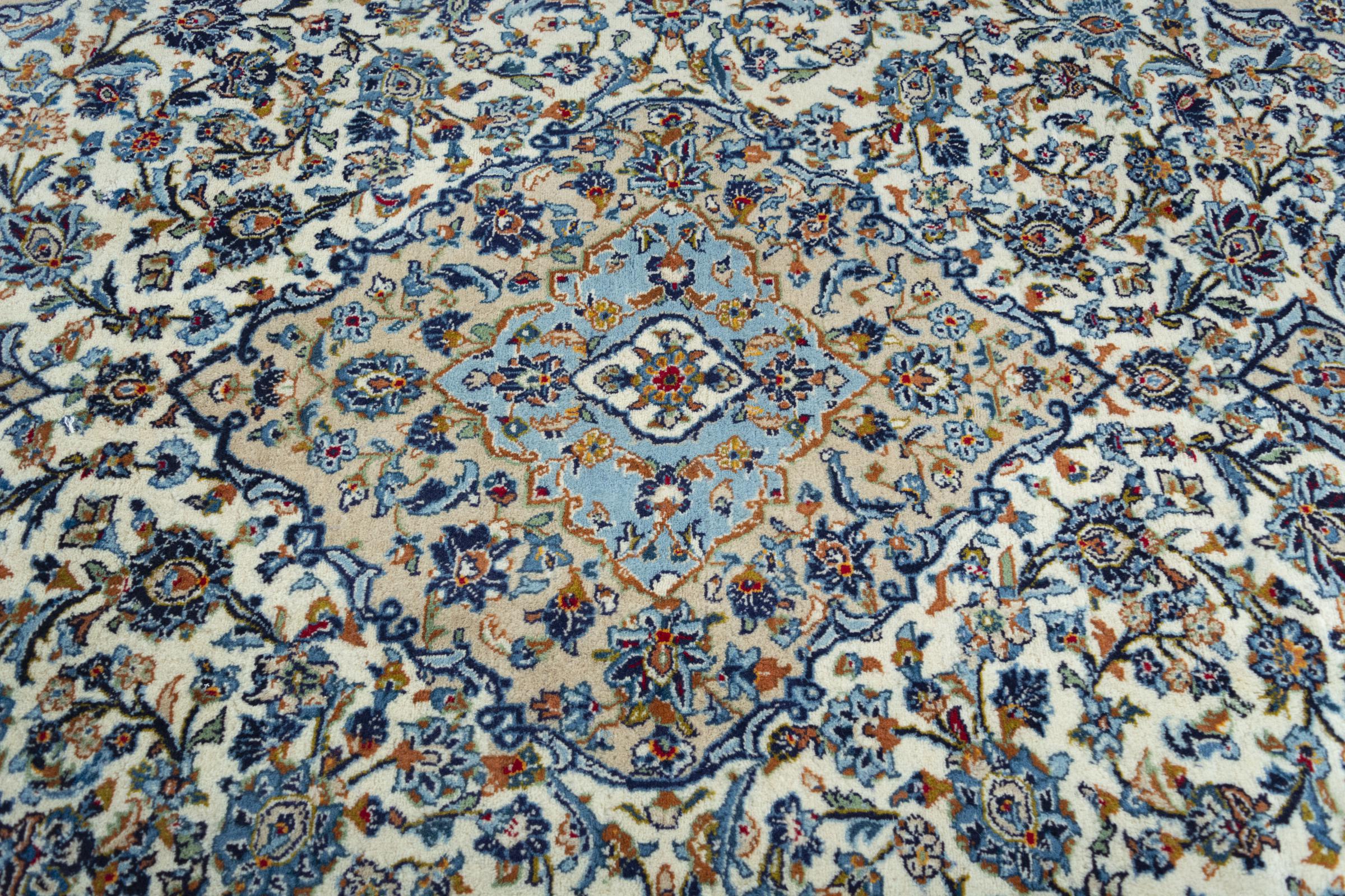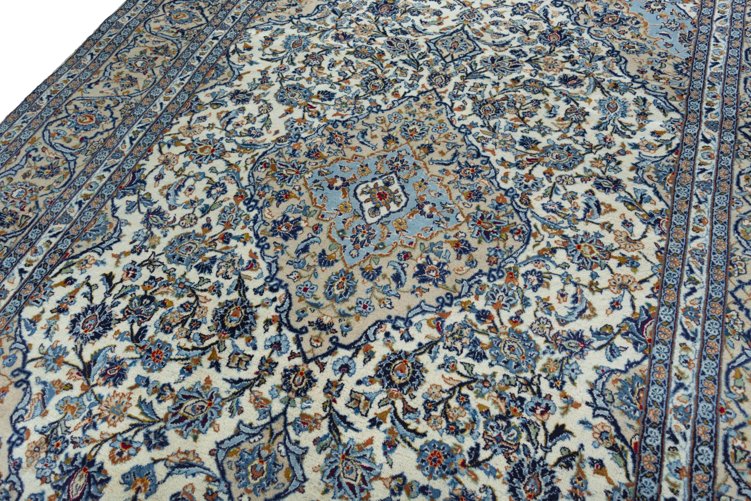 Denna matta från Kashan (Keshan) hålls i sin mycket traditionella och typiska persiska design med vackra ornament. Kashan-mattor är mycket populära på grund av sin exceptionellt eleganta design. Dessa mattor kommer från Kashan, en stad på den antika sidenvägen. Denna matta har knutens för hand av högkvalitativ fårull och kommer att bli en unik höjdpunkt i ditt hem.