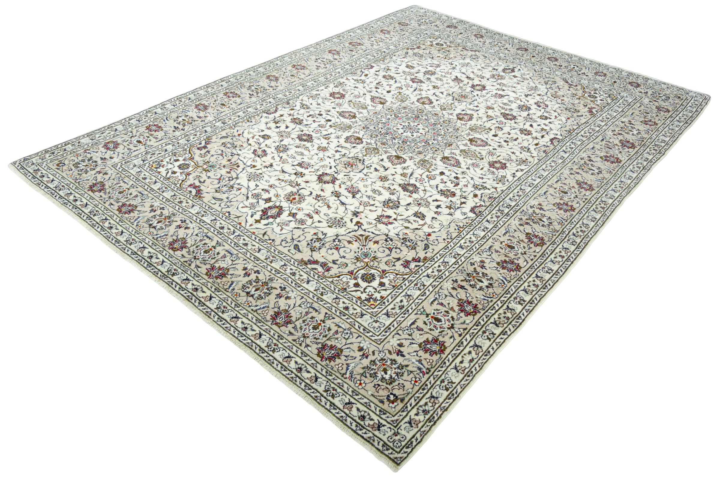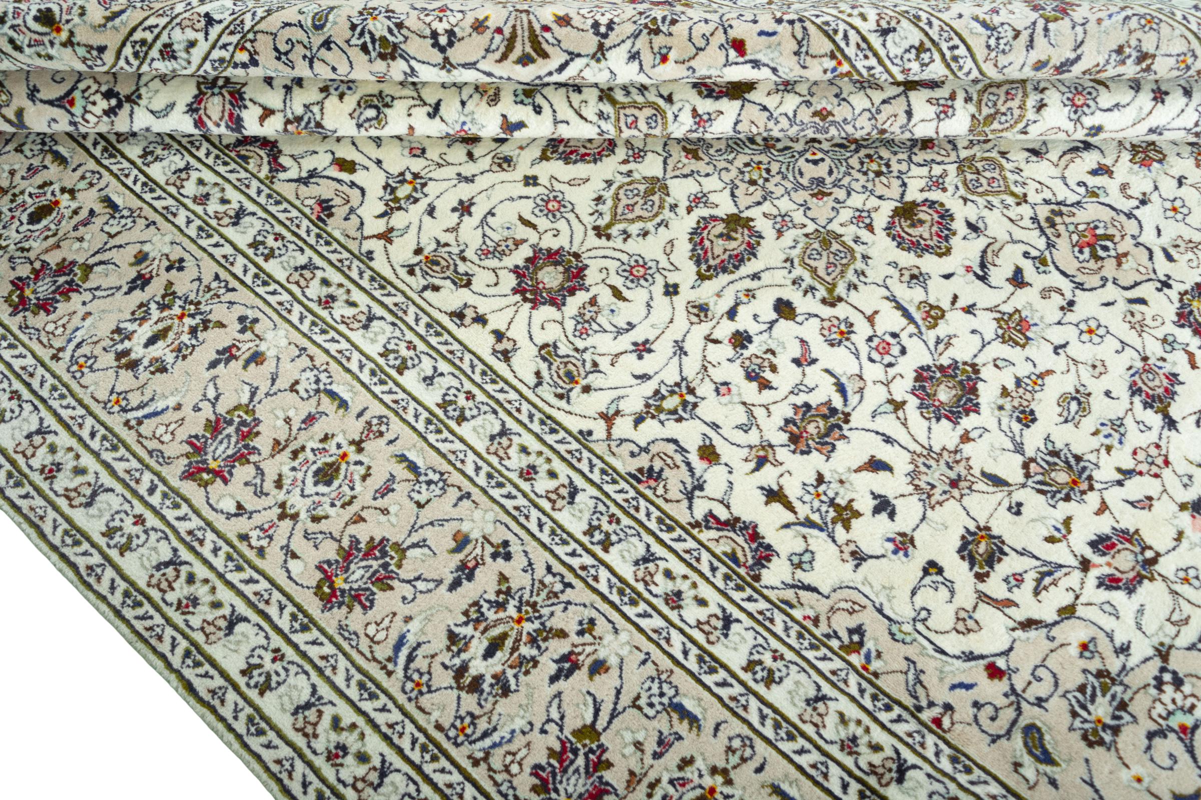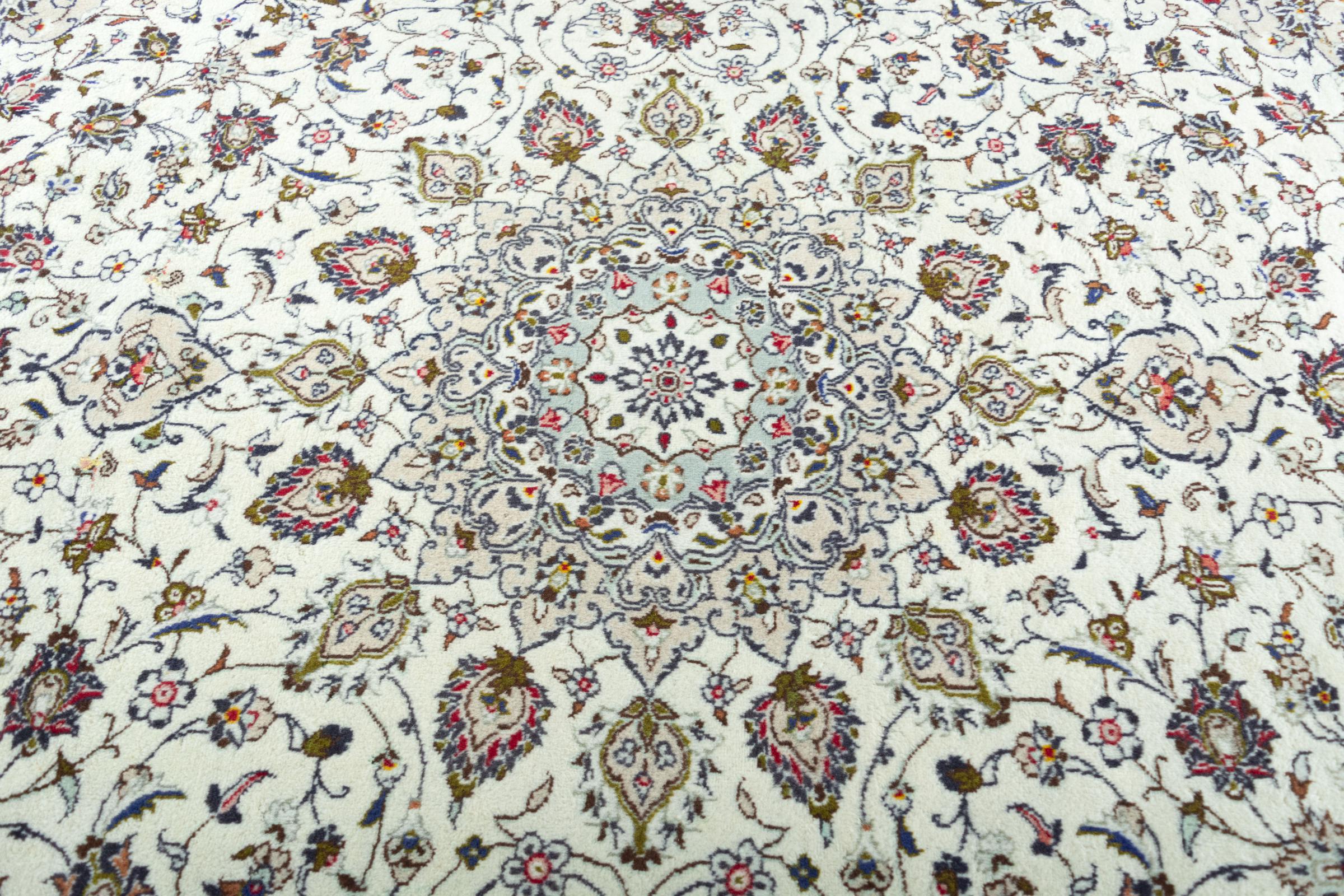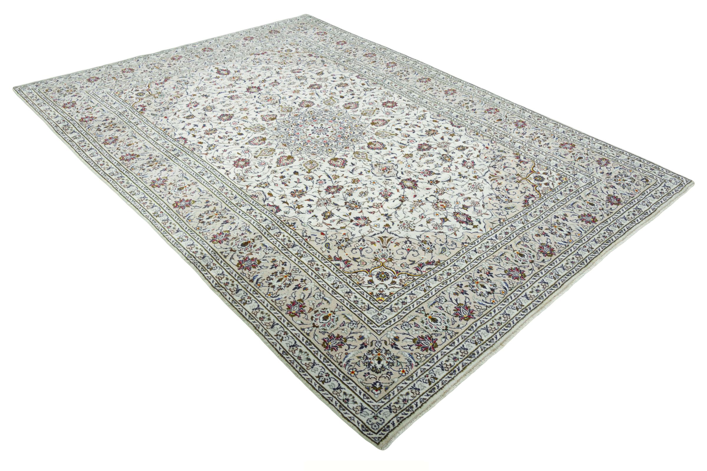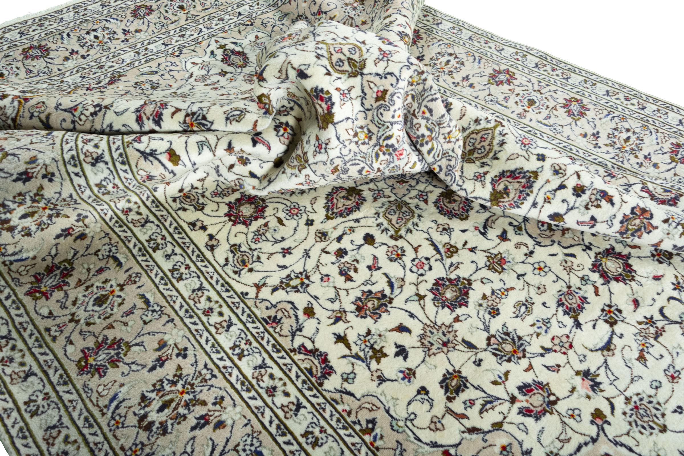 Denna matta från Kashan (Keshan) hålls i sin mycket traditionella och typiska persiska design med vackra ornament. Kashan-mattor är mycket populära på grund av sin exceptionellt eleganta design. Dessa mattor kommer från Kashan, en stad på den antika sidenvägen. Denna matta har knutens för hand av högkvalitativ fårull och kommer att bli en unik höjdpunkt i ditt hem.