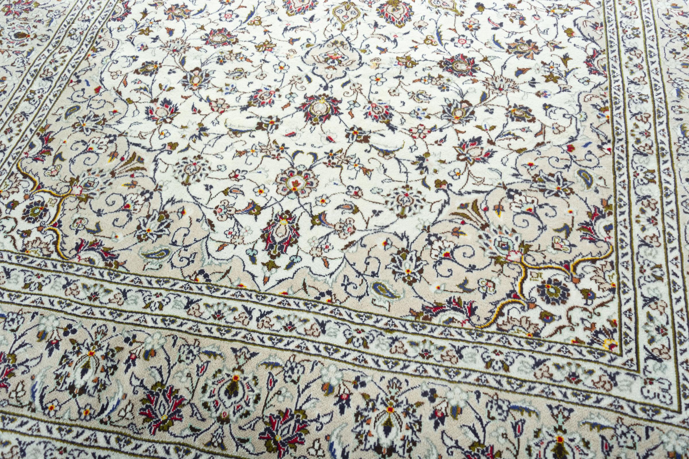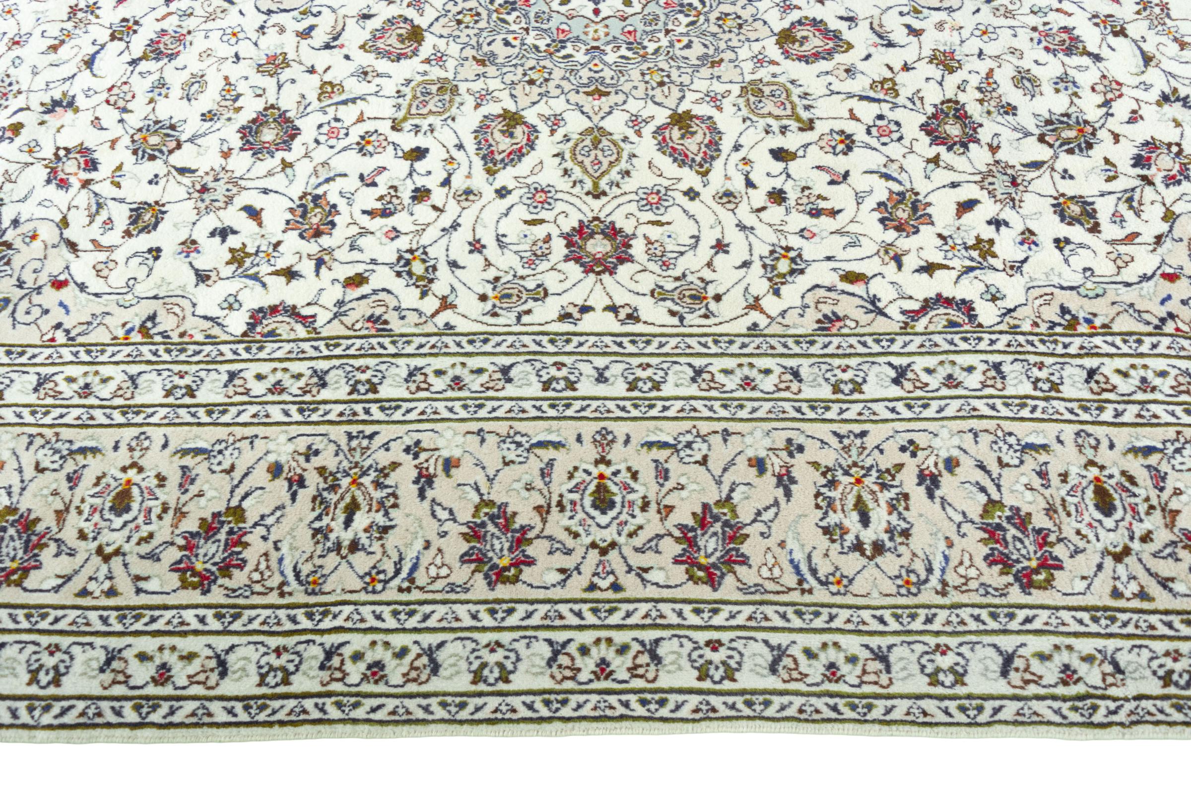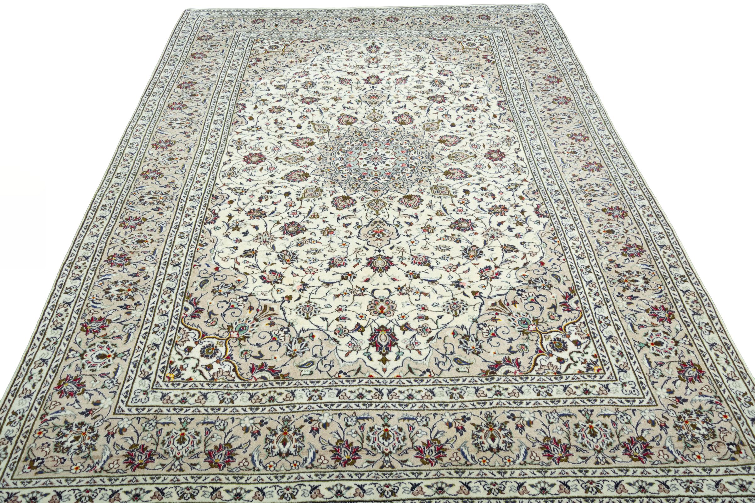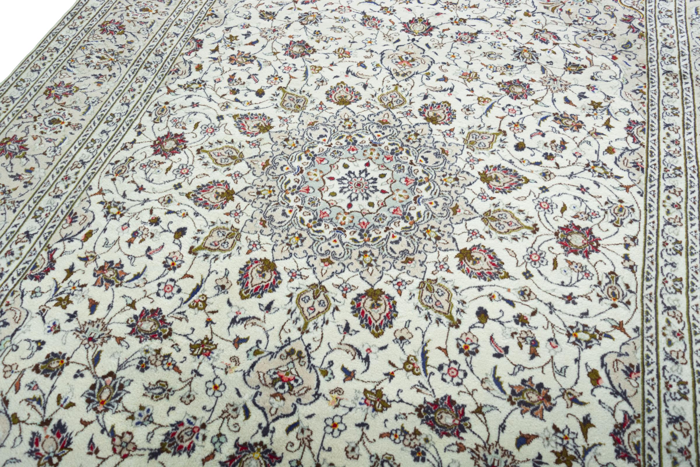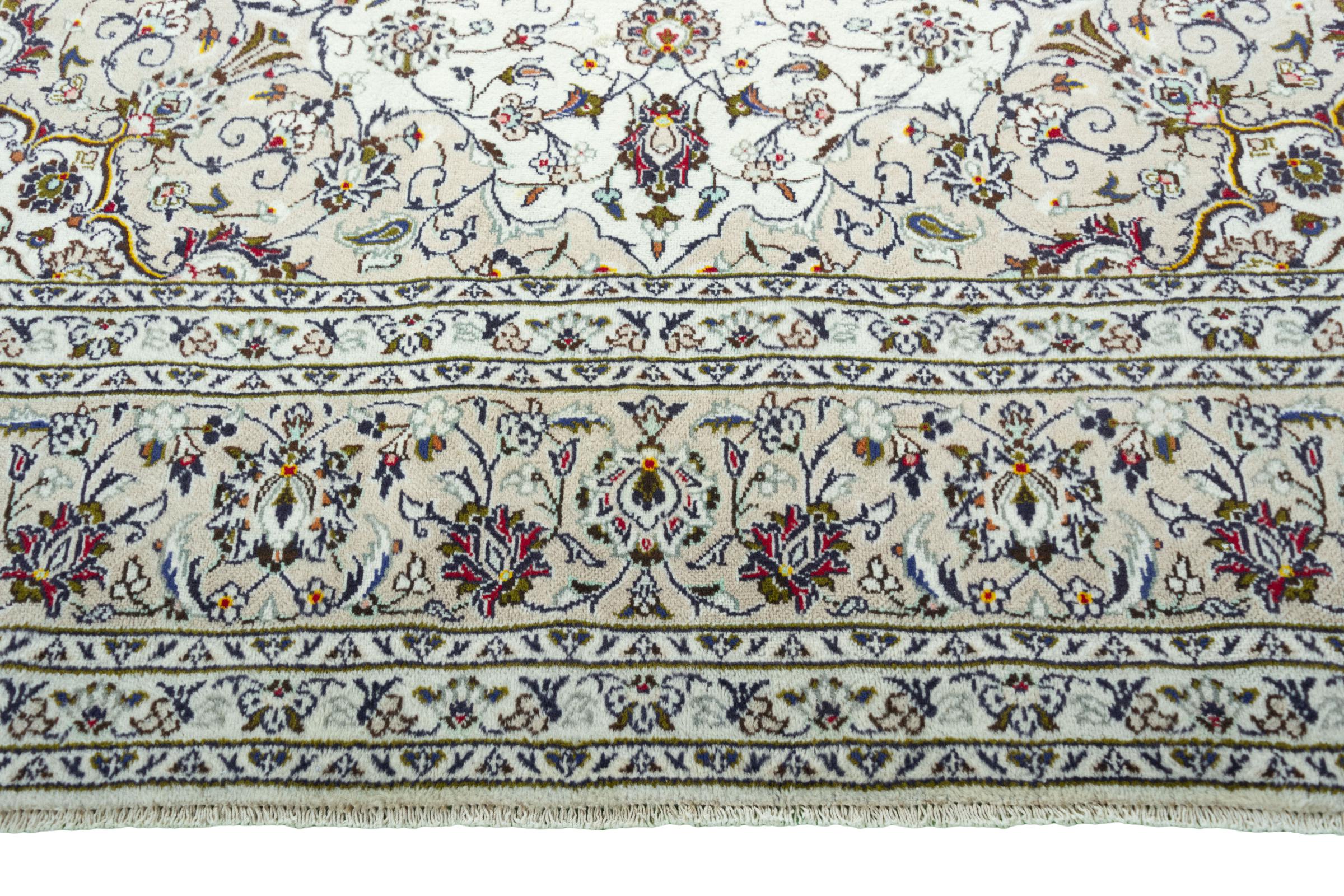 Denna matta från Kashan (Keshan) hålls i sin mycket traditionella och typiska persiska design med vackra ornament. Kashan-mattor är mycket populära på grund av sin exceptionellt eleganta design. Dessa mattor kommer från Kashan, en stad på den antika sidenvägen. Denna matta har knutens för hand av högkvalitativ fårull och kommer att bli en unik höjdpunkt i ditt hem.
