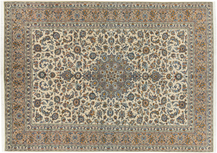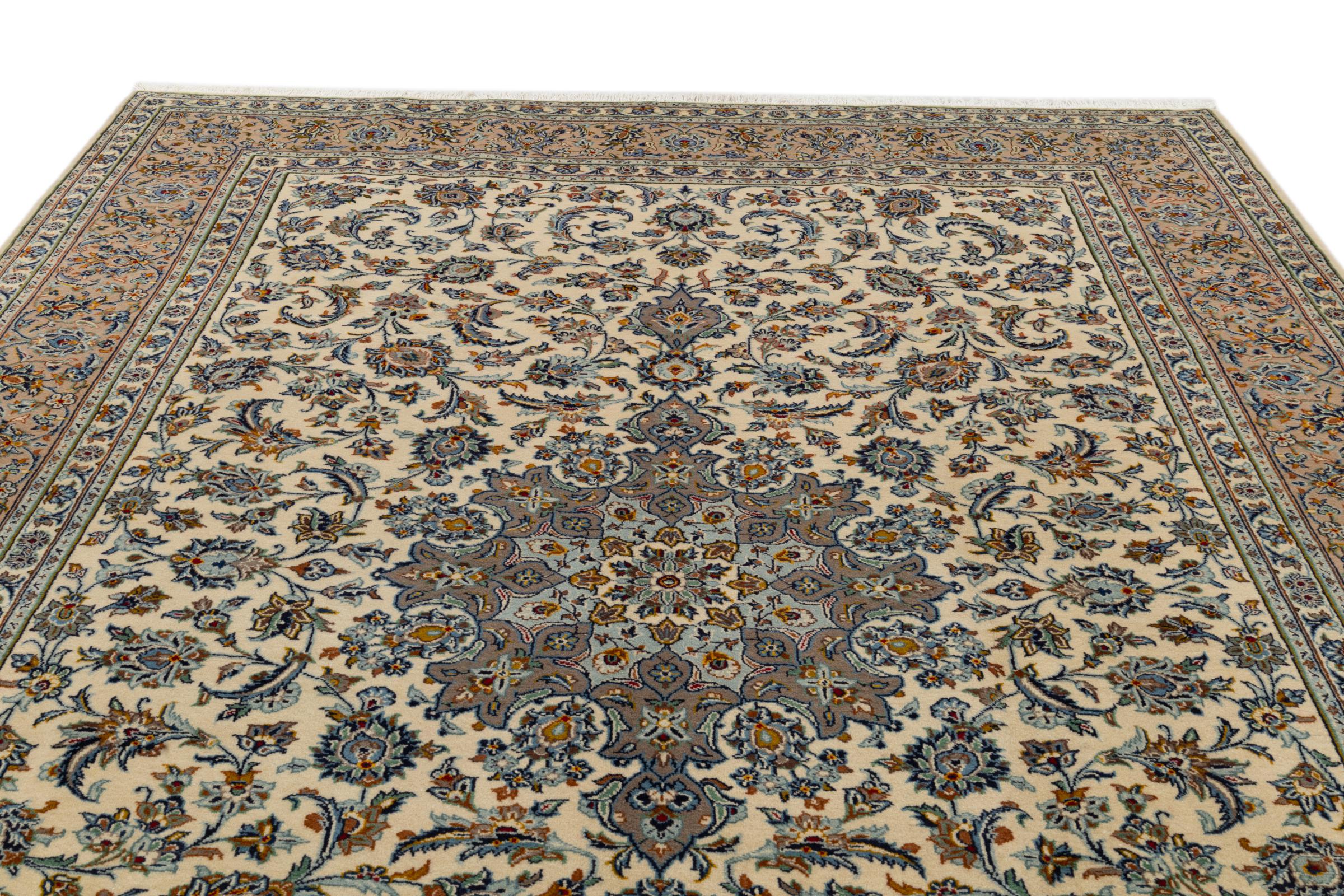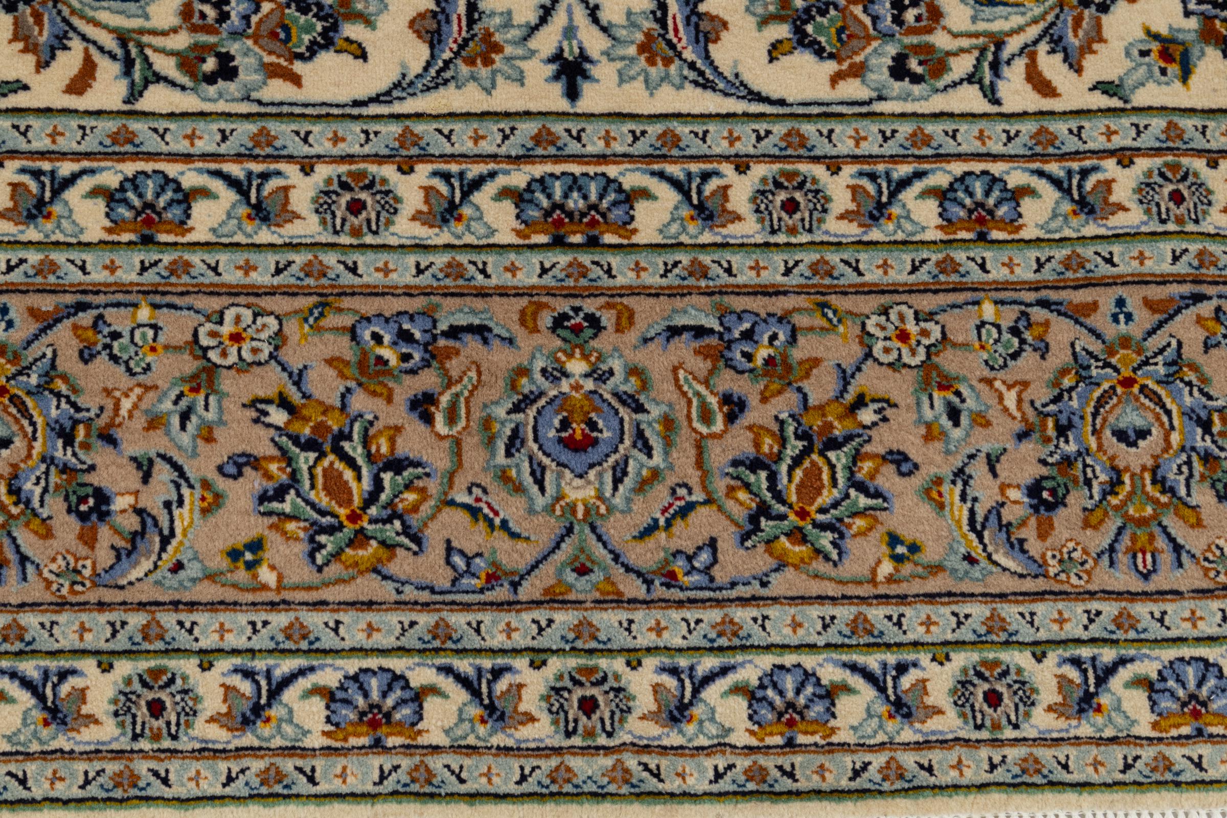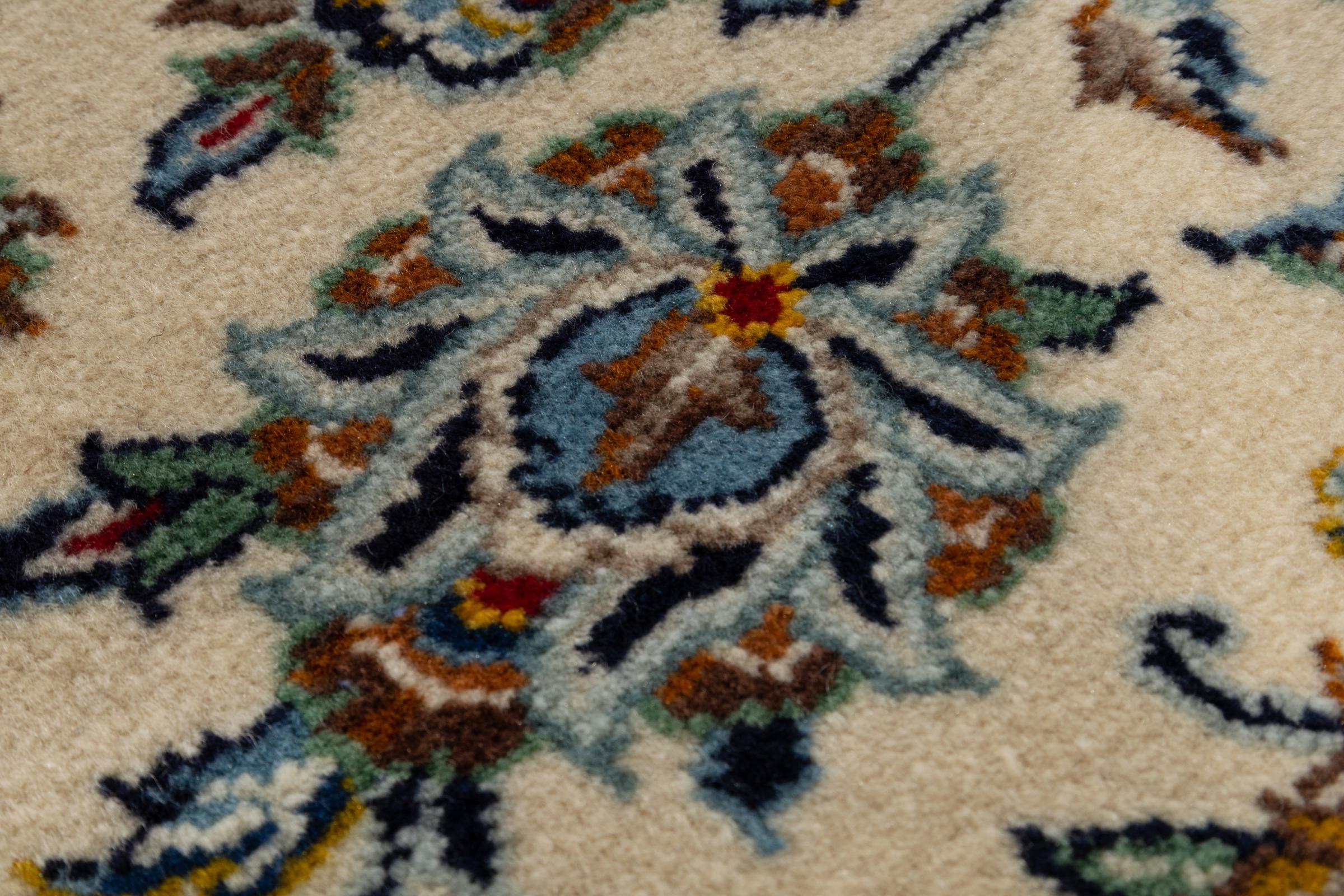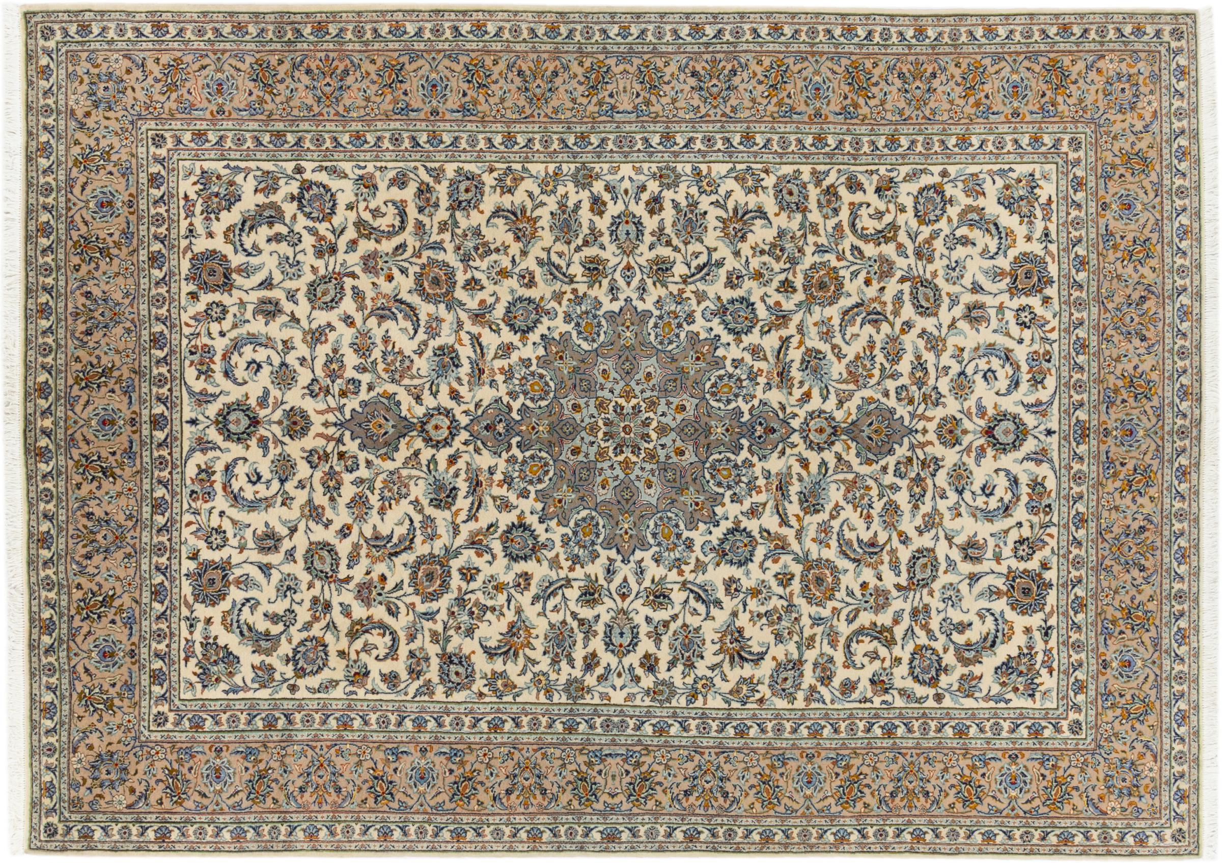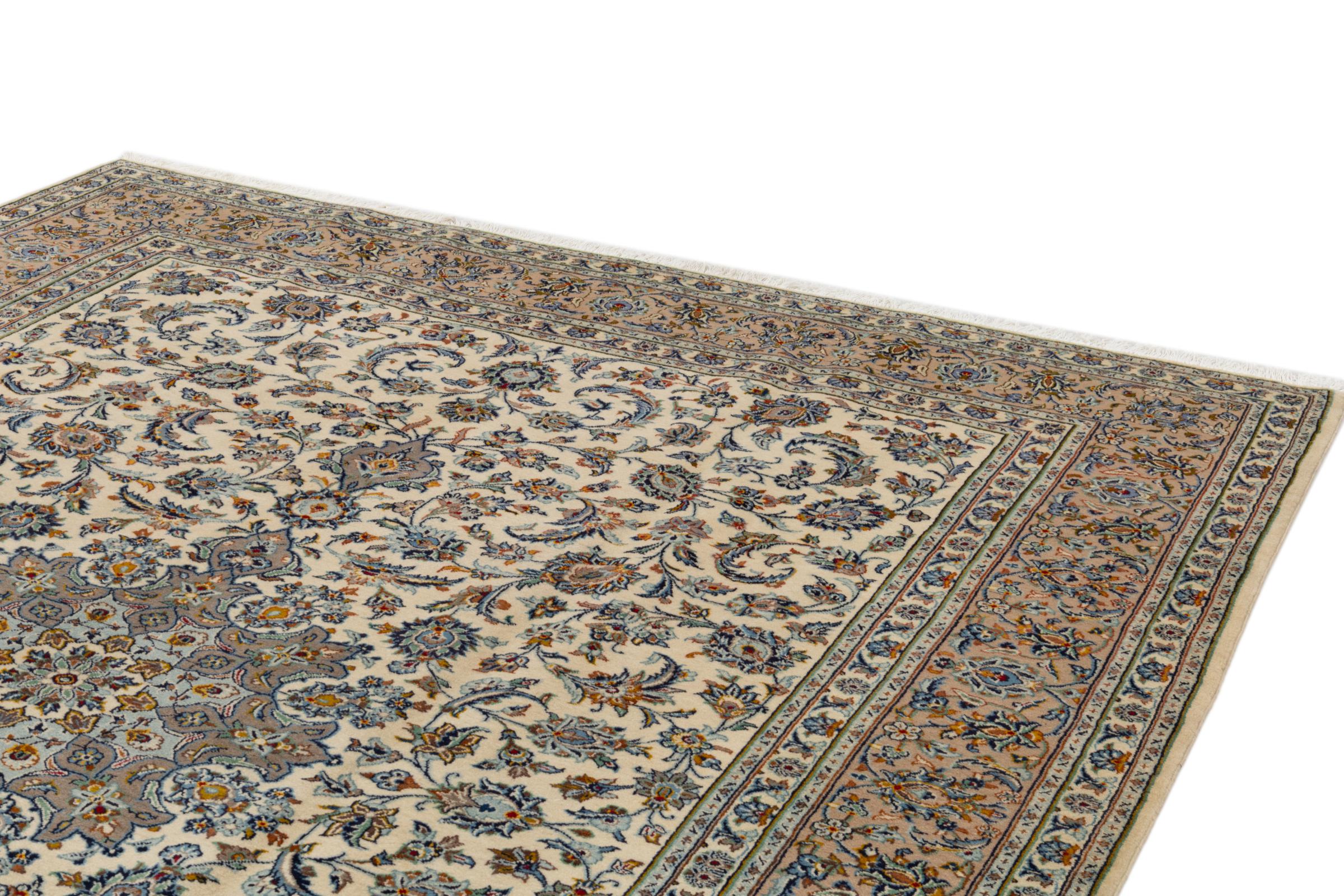 Denna matta från Kashan (Keshan) hålls i sin mycket traditionella och typiska persiska design med vackra ornament. Kashan-mattor är mycket populära på grund av sin exceptionellt eleganta design. Dessa mattor kommer från Kashan, en stad på den antika sidenvägen. Denna matta har knutens för hand av högkvalitativ fårull och kommer att bli en unik höjdpunkt i ditt hem.