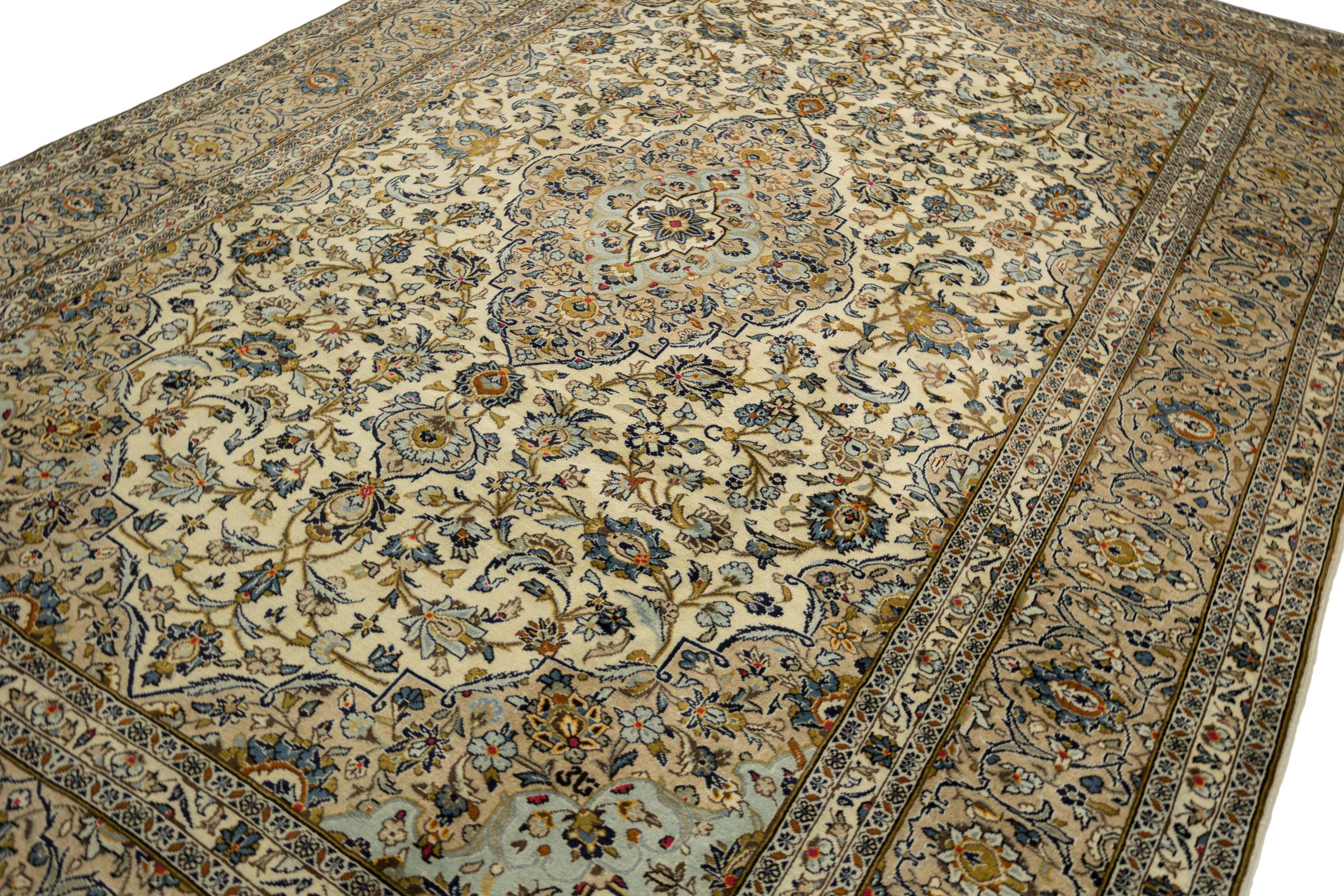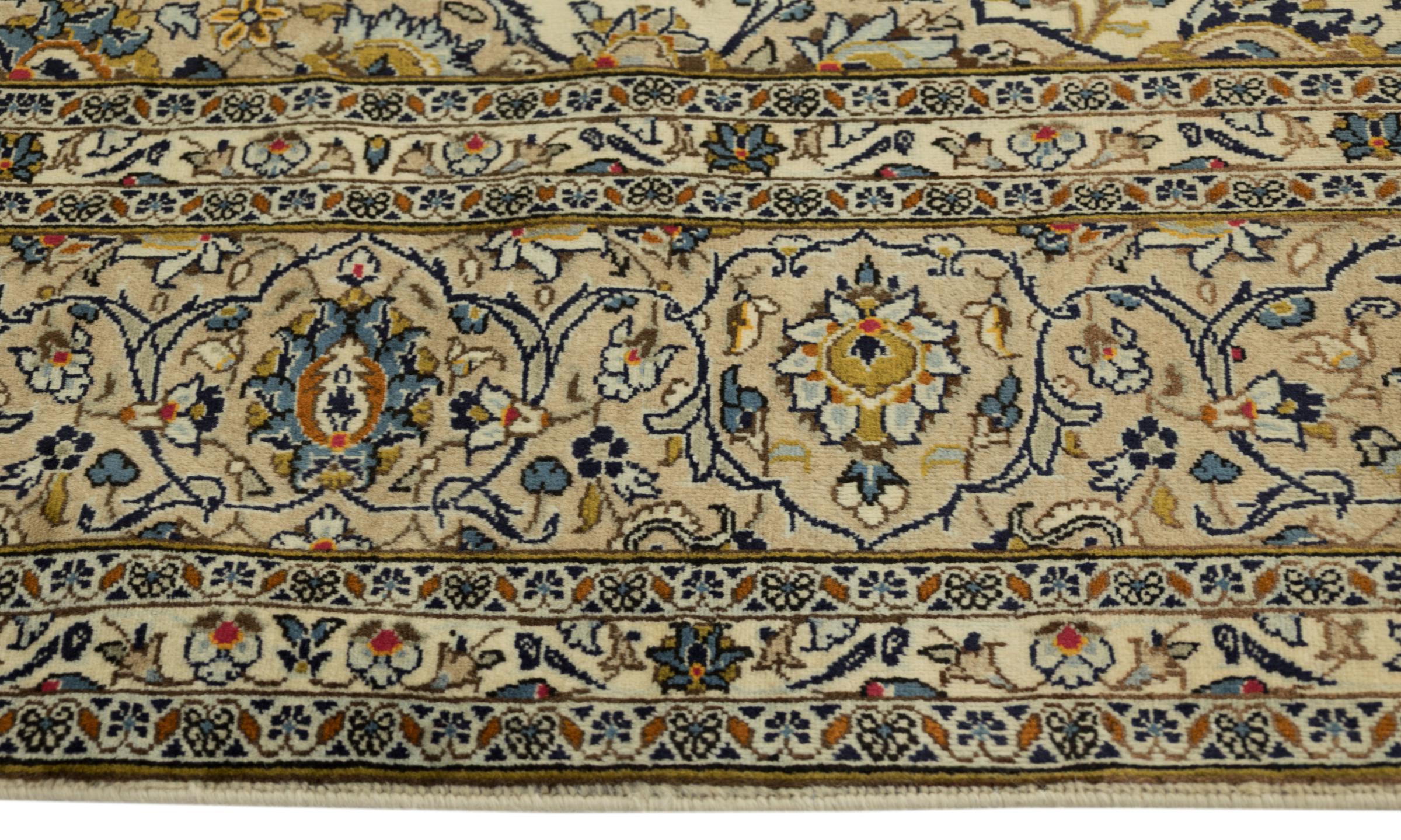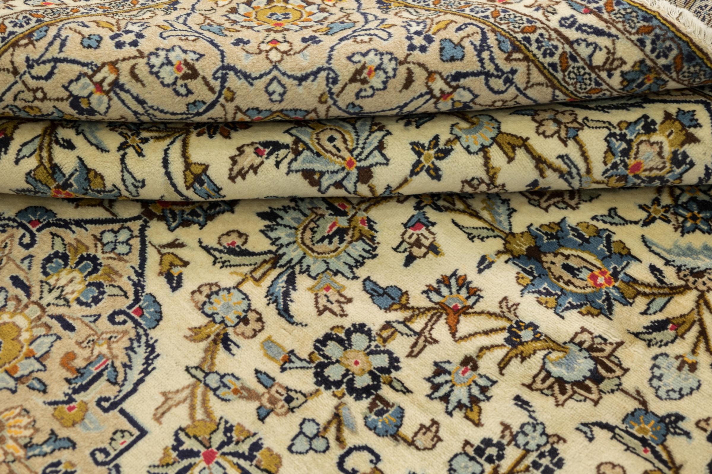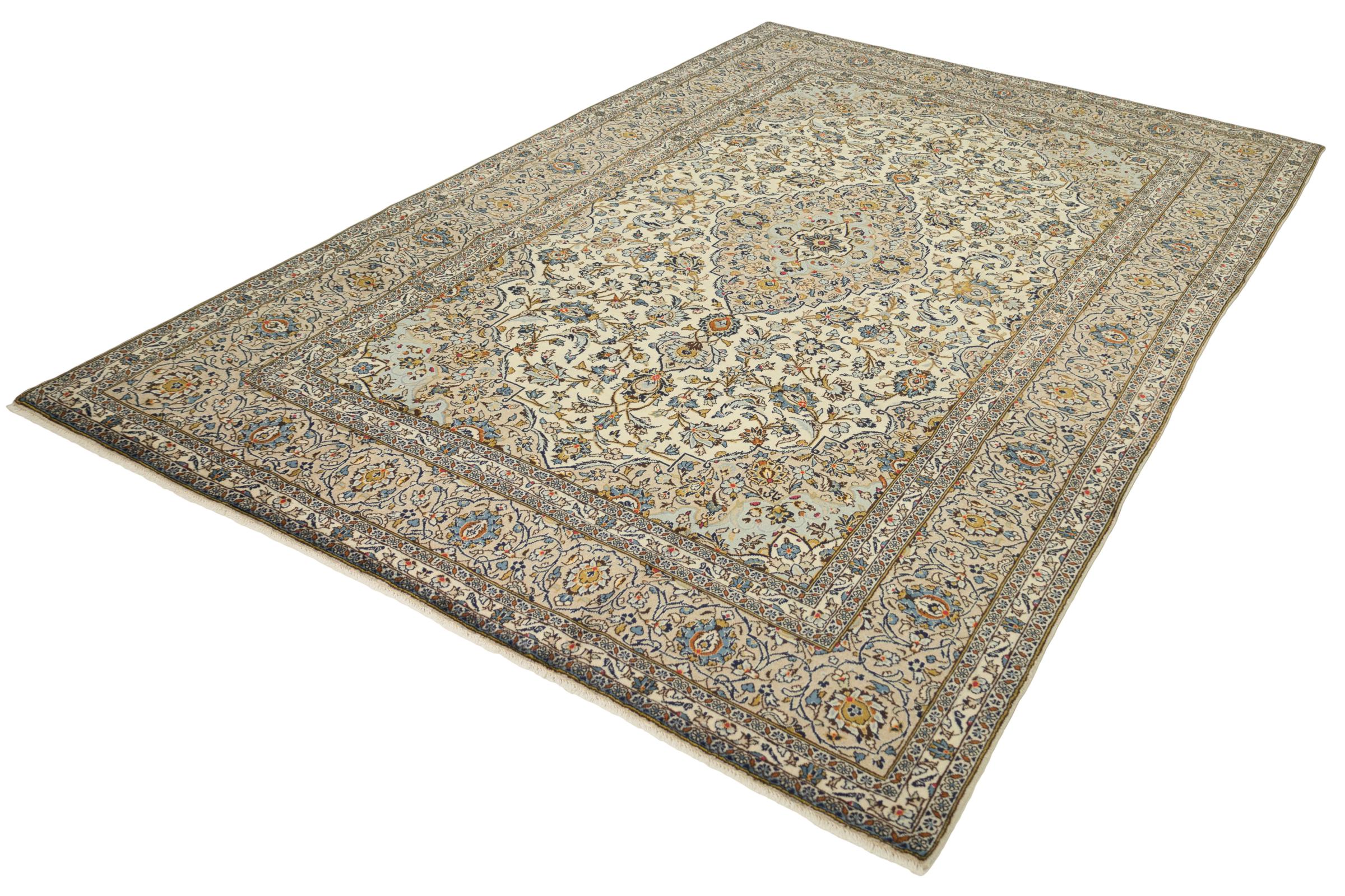 Denna matta från Kashan (Keshan) hålls i sin mycket traditionella och typiska persiska design med vackra ornament. Kashan-mattor är mycket populära på grund av sin exceptionellt eleganta design. Dessa mattor kommer från Kashan, en stad på den antika sidenvägen. Denna matta har knutens för hand av högkvalitativ fårull och kommer att bli en unik höjdpunkt i ditt hem.