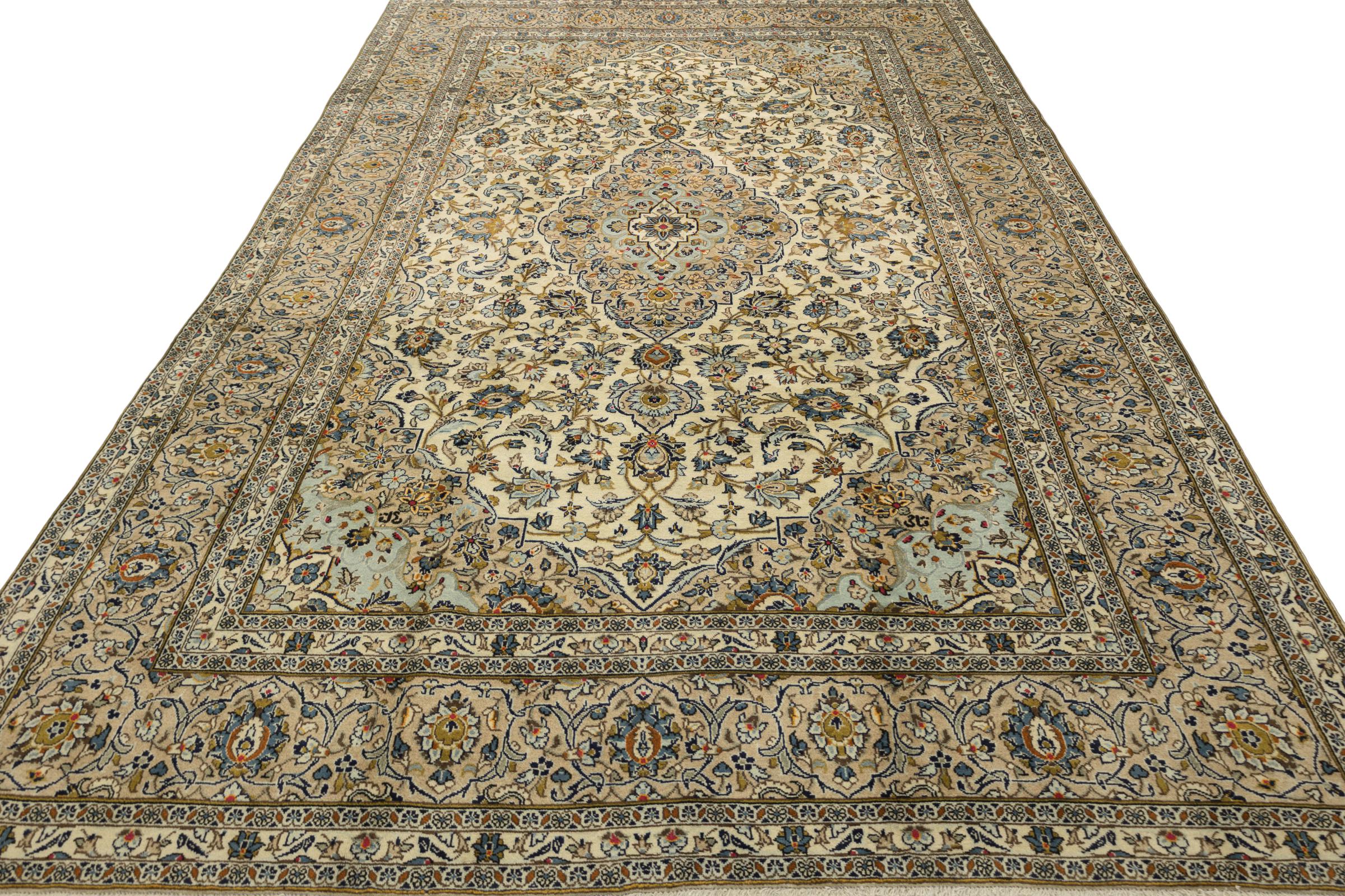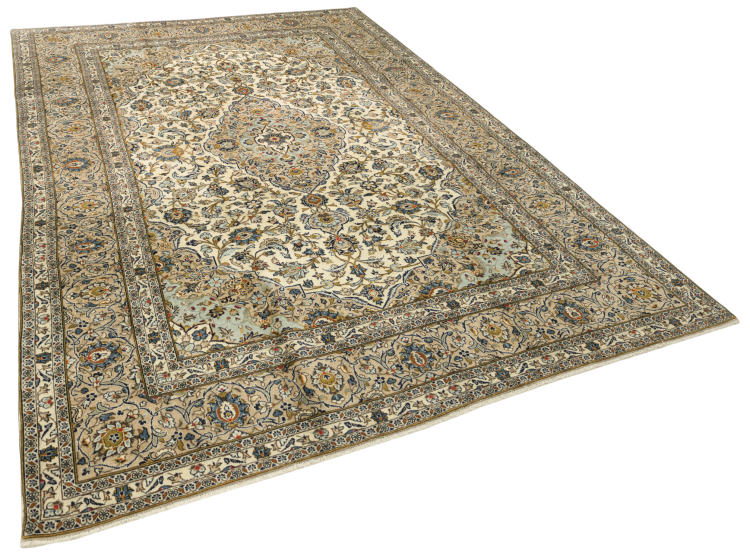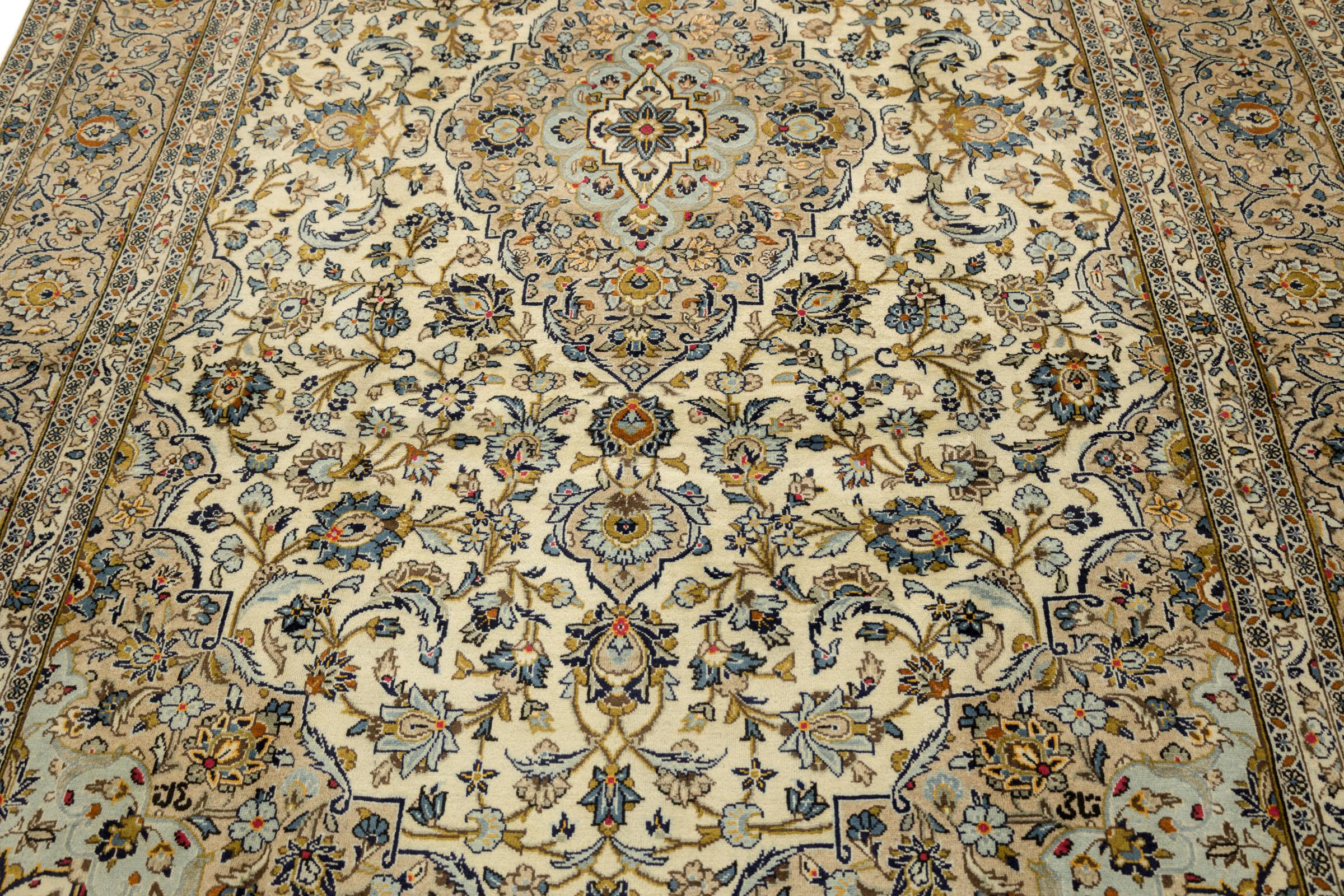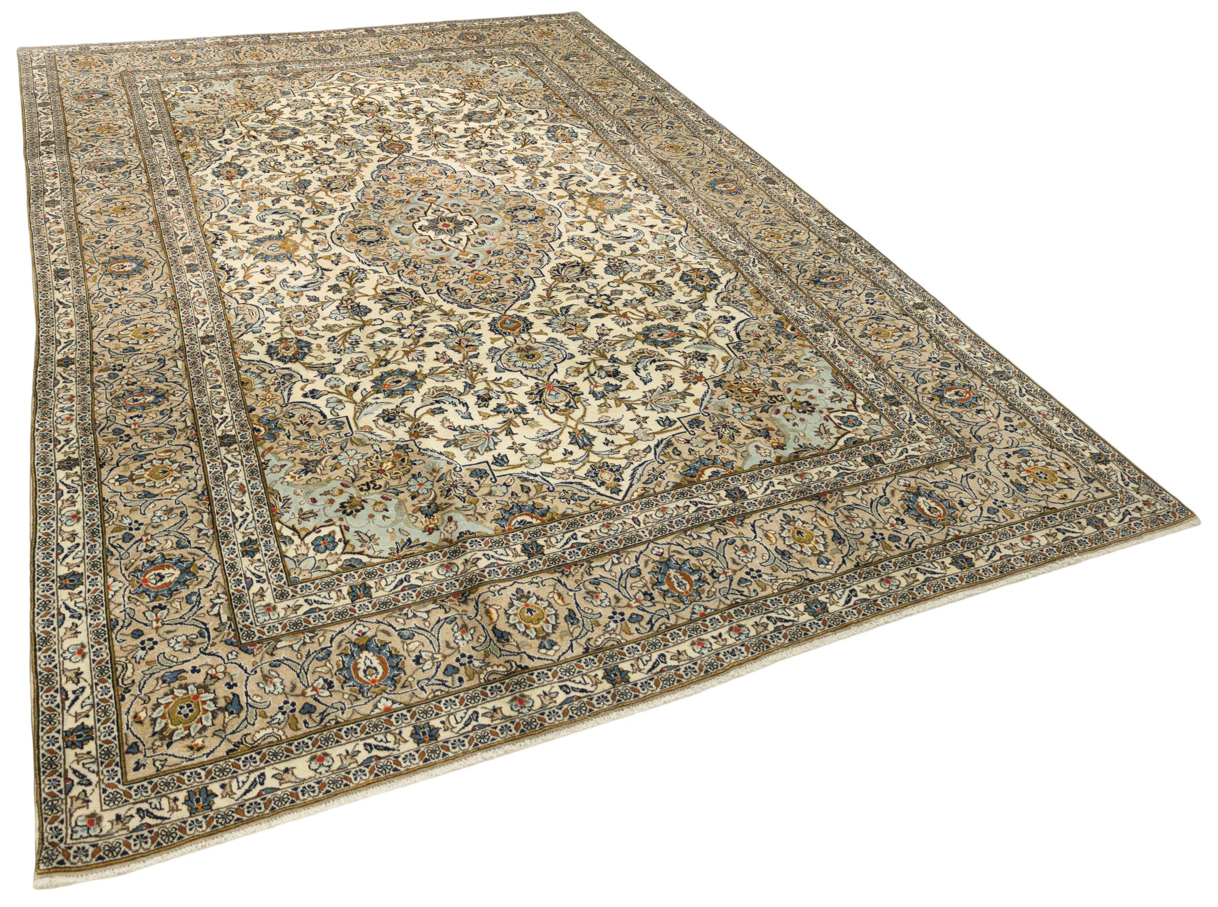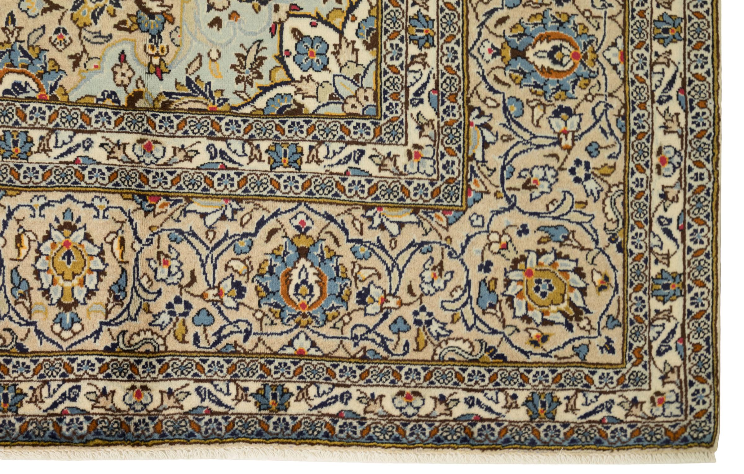 Denna matta från Kashan (Keshan) hålls i sin mycket traditionella och typiska persiska design med vackra ornament. Kashan-mattor är mycket populära på grund av sin exceptionellt eleganta design. Dessa mattor kommer från Kashan, en stad på den antika sidenvägen. Denna matta har knutens för hand av högkvalitativ fårull och kommer att bli en unik höjdpunkt i ditt hem.