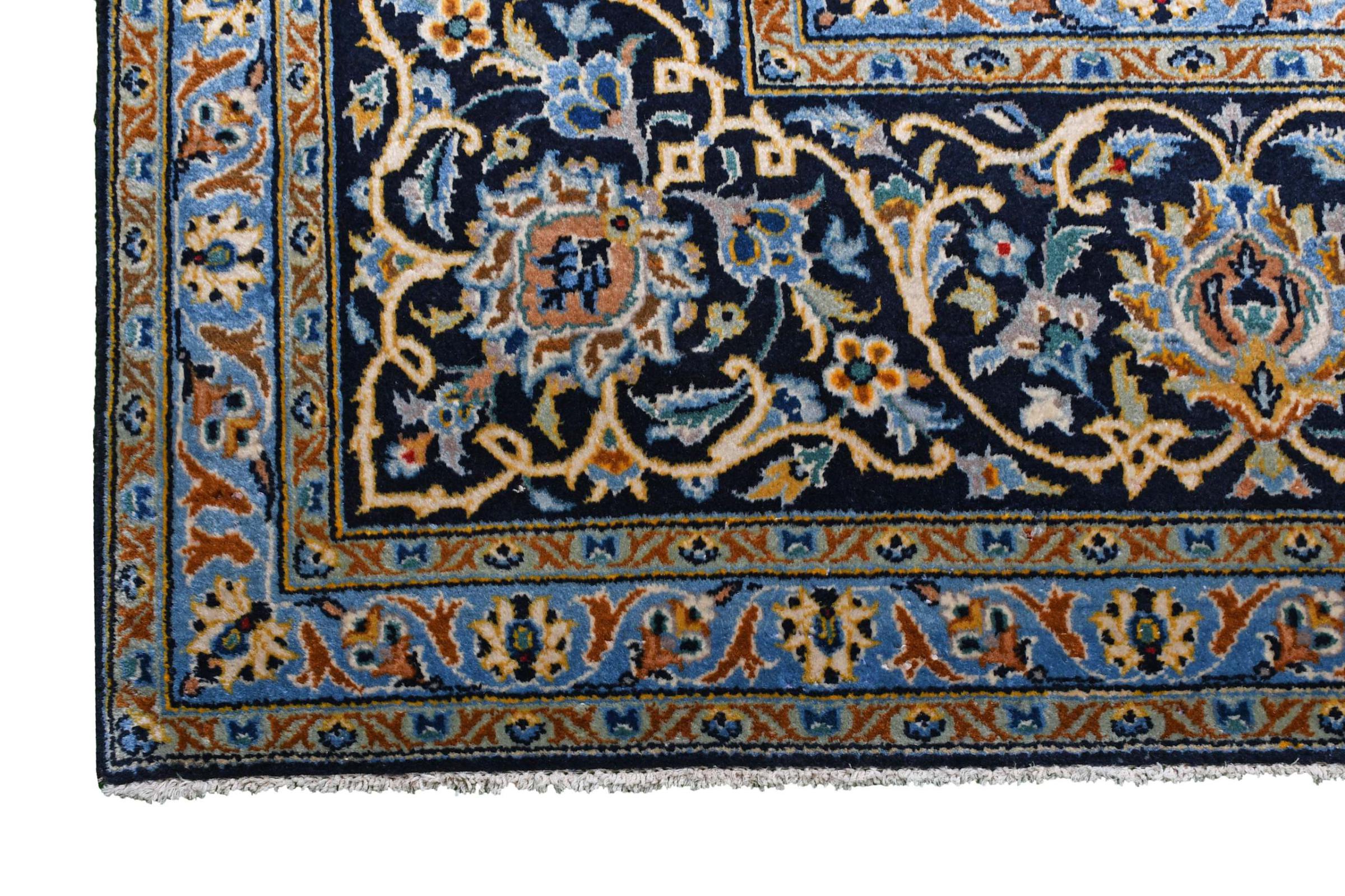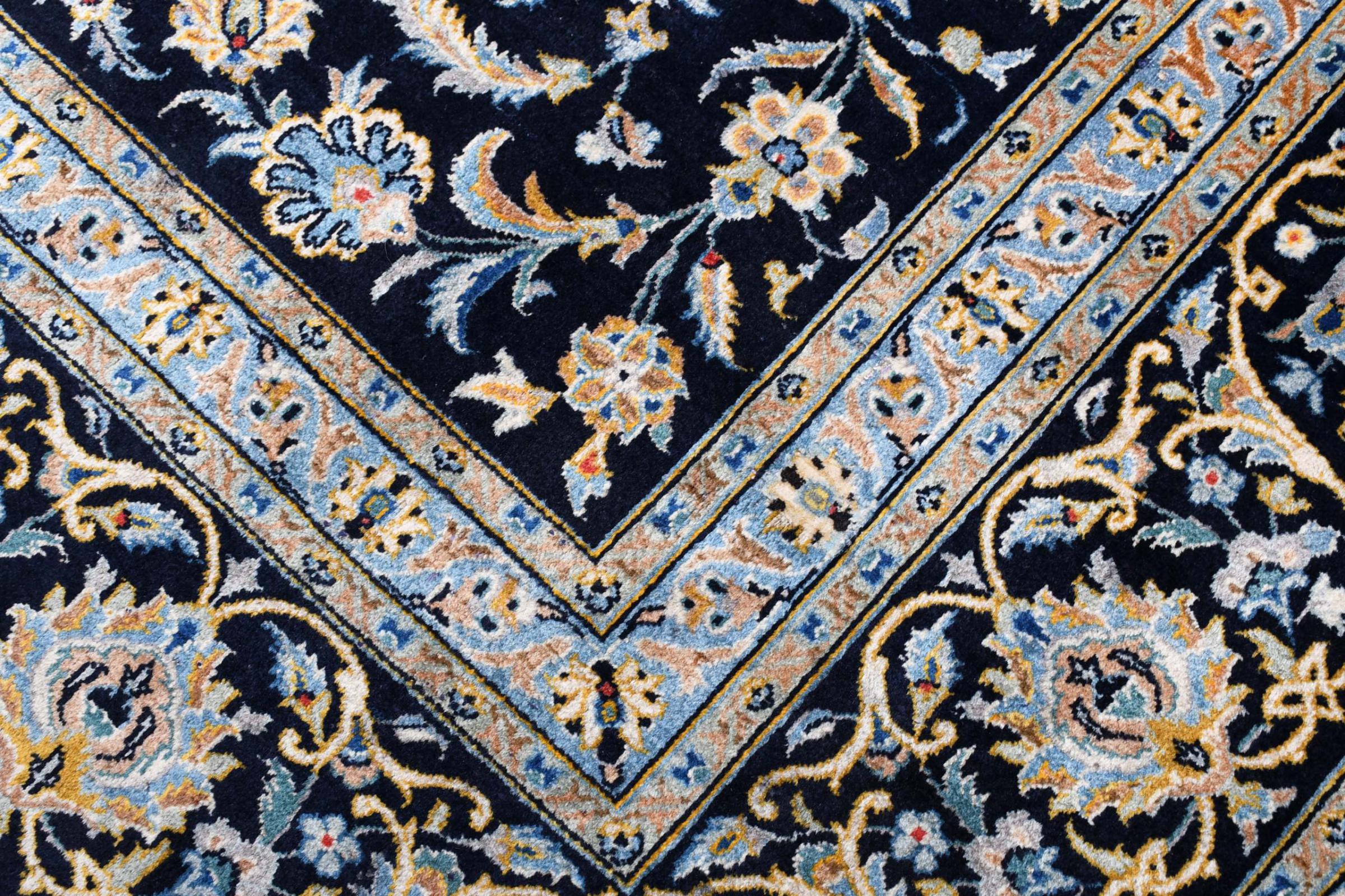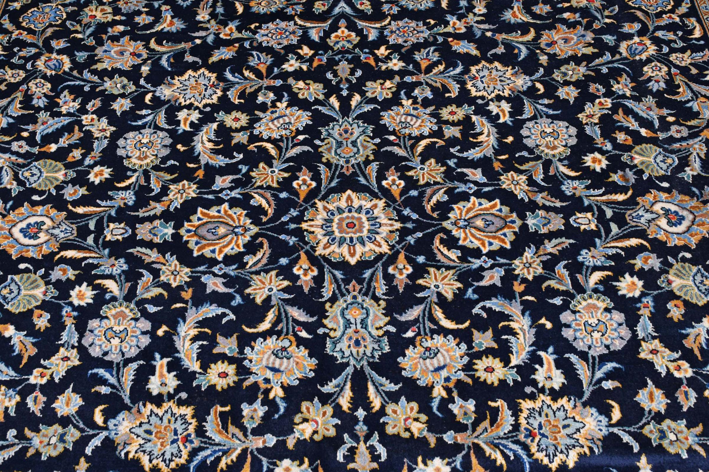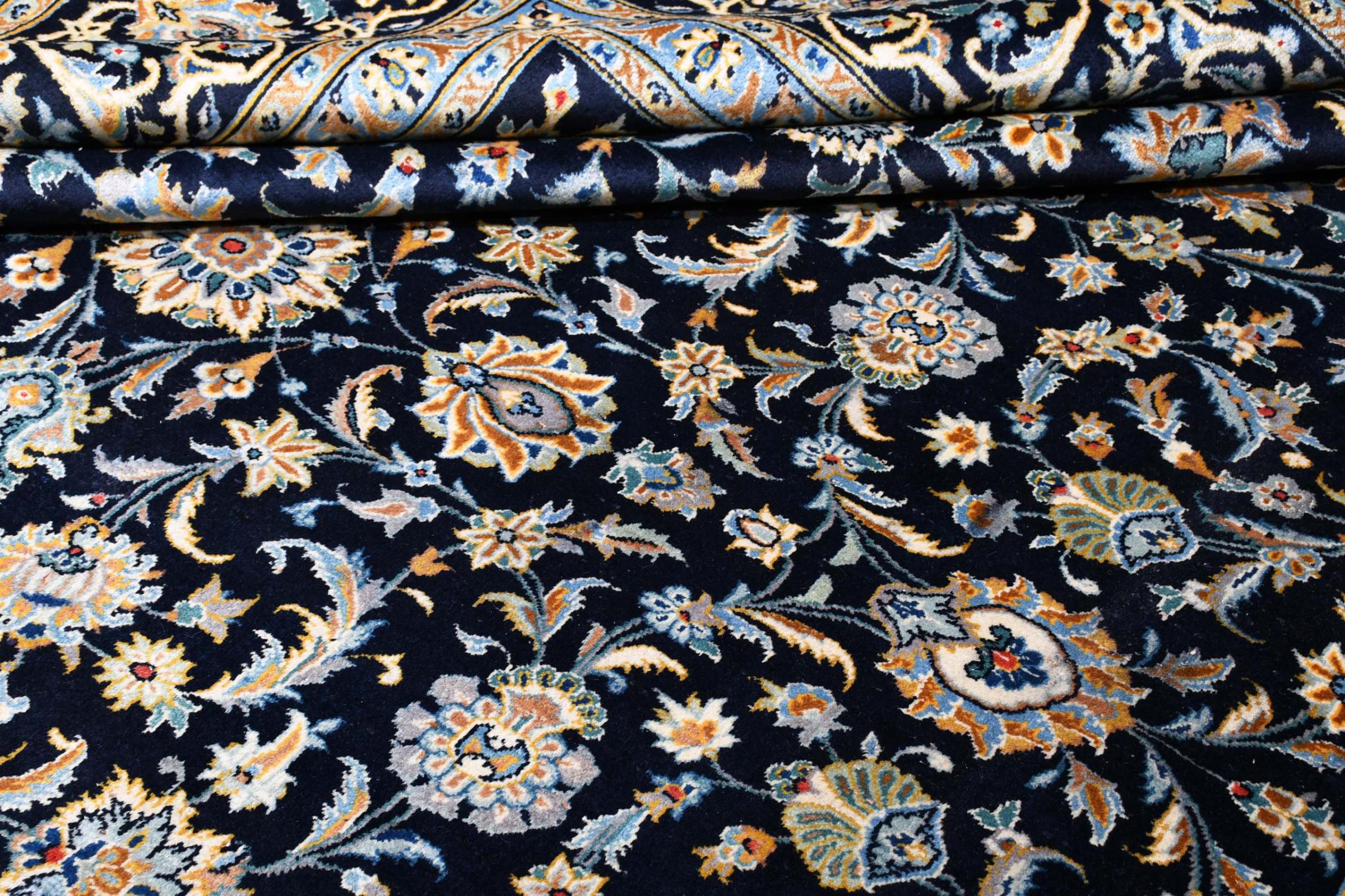 Denna matta från Kashan (Keshan) hålls i sin mycket traditionella och typiska persiska design med vackra ornament. Kashan-mattor är mycket populära på grund av sin exceptionellt eleganta design. Dessa mattor kommer från Kashan, en stad på den antika sidenvägen. Denna matta har knutens för hand av högkvalitativ fårull och kommer att bli en unik höjdpunkt i ditt hem.