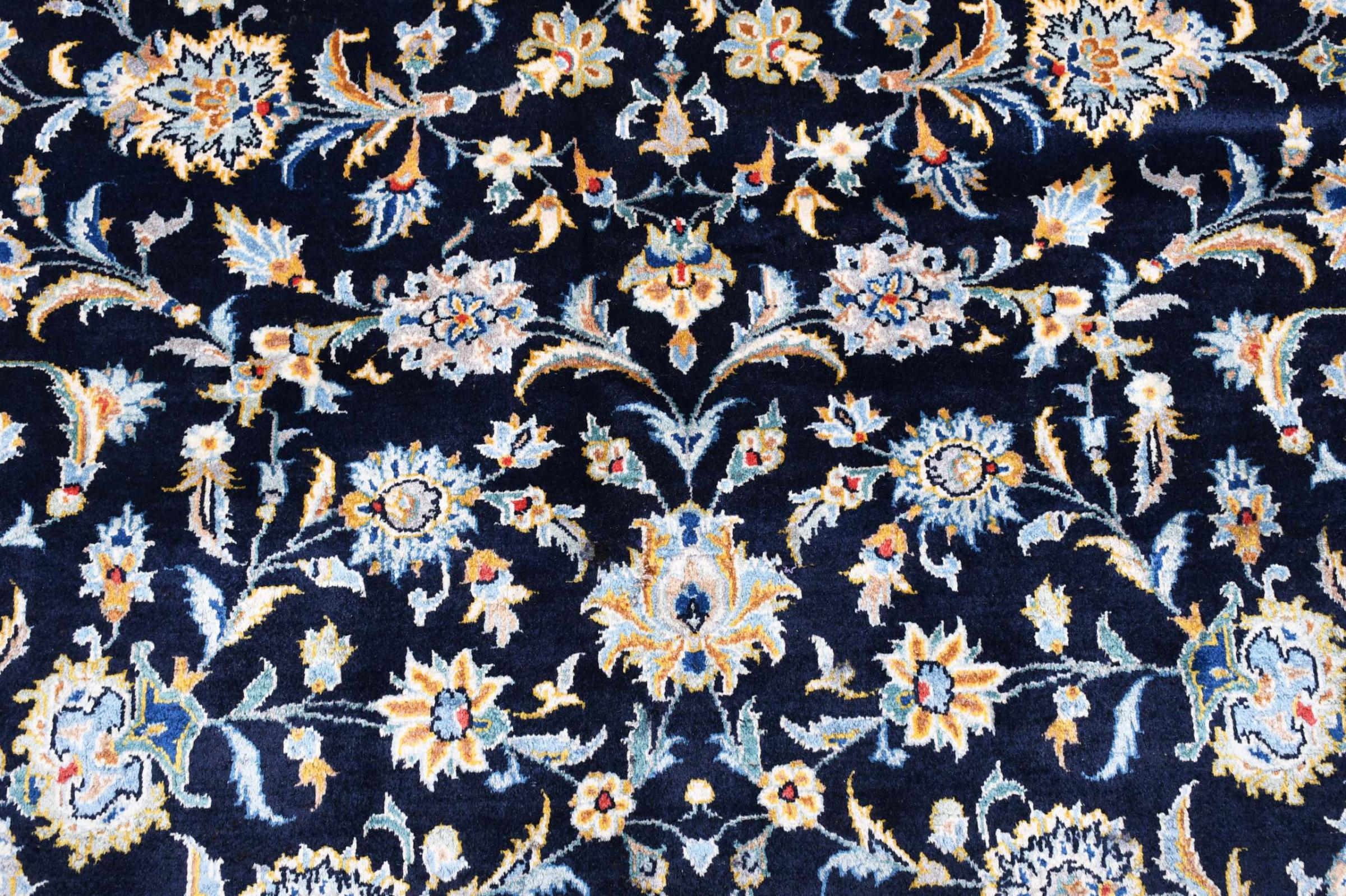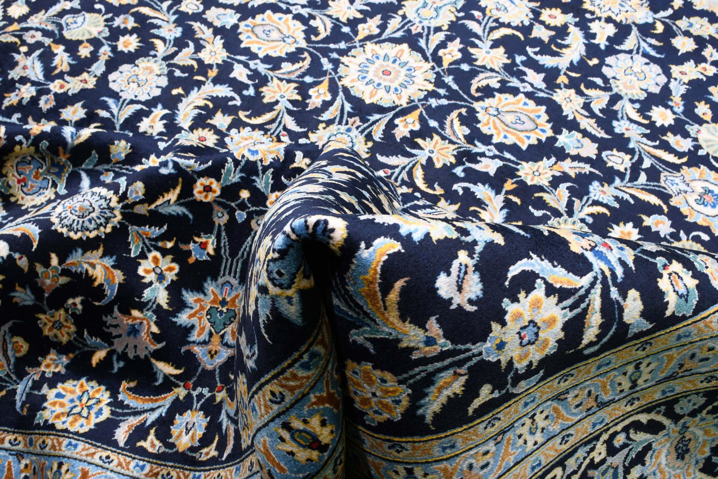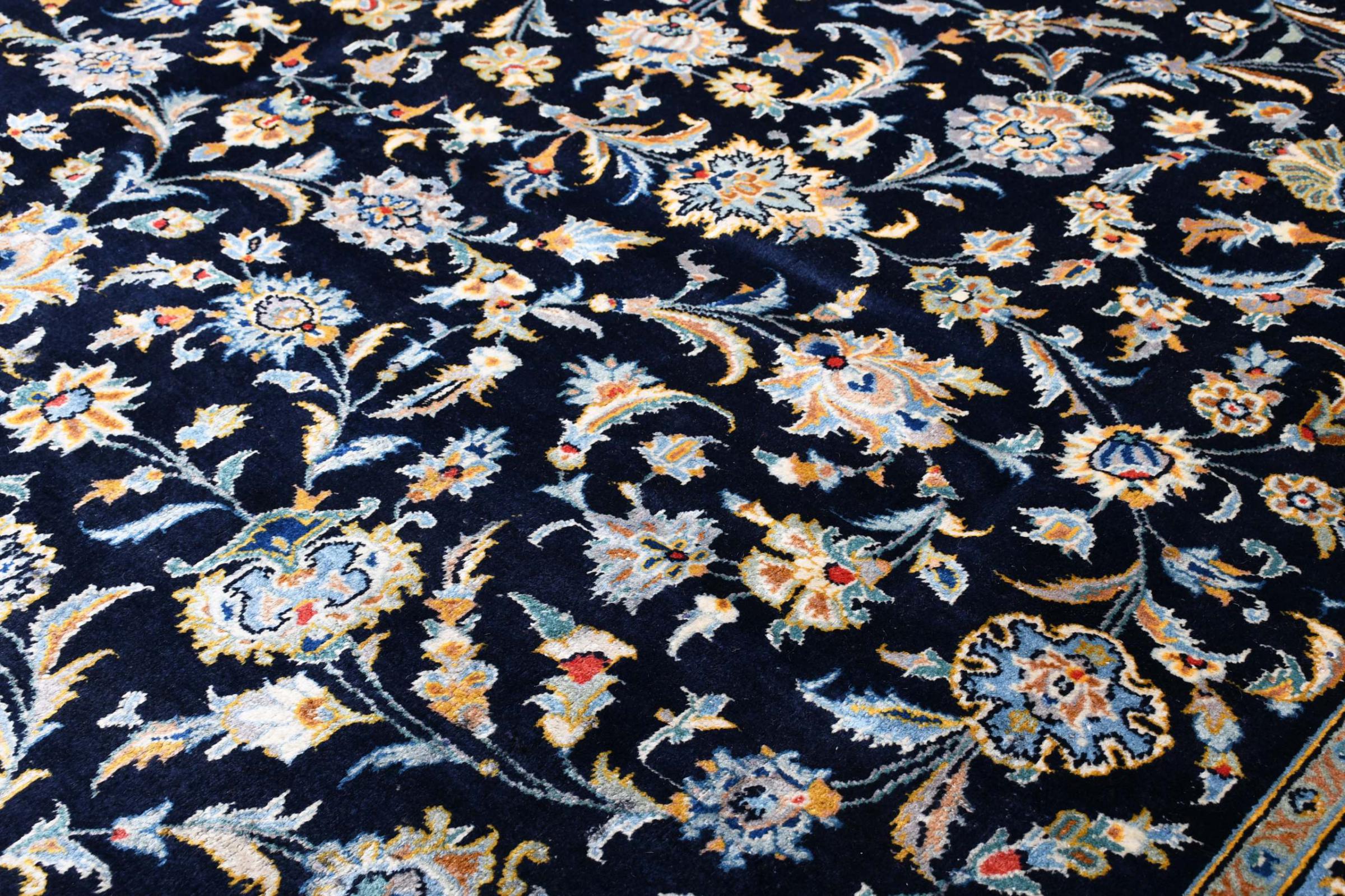 Denna matta från Kashan (Keshan) hålls i sin mycket traditionella och typiska persiska design med vackra ornament. Kashan-mattor är mycket populära på grund av sin exceptionellt eleganta design. Dessa mattor kommer från Kashan, en stad på den antika sidenvägen. Denna matta har knutens för hand av högkvalitativ fårull och kommer att bli en unik höjdpunkt i ditt hem.