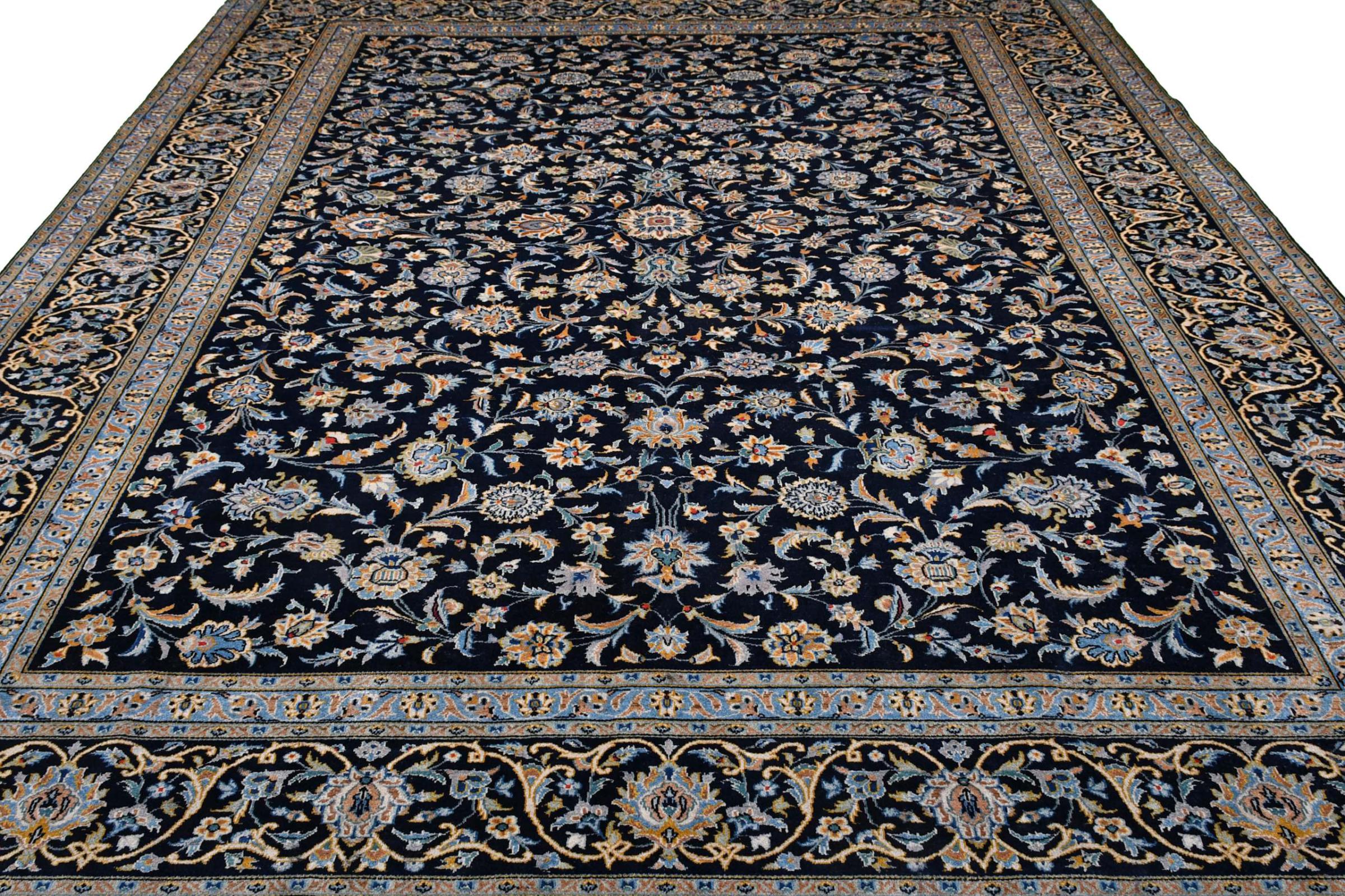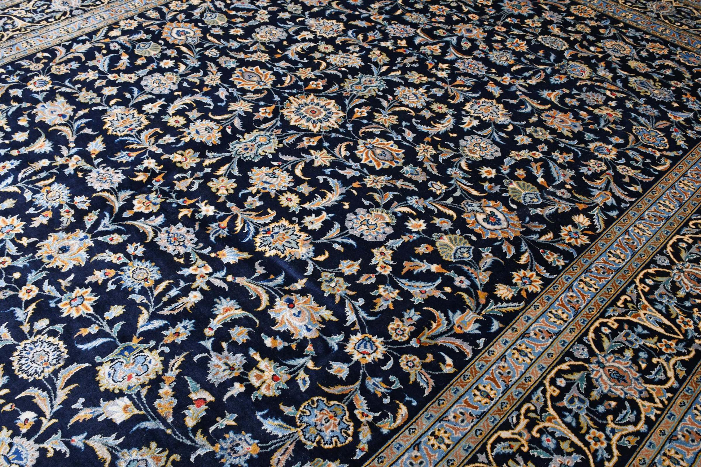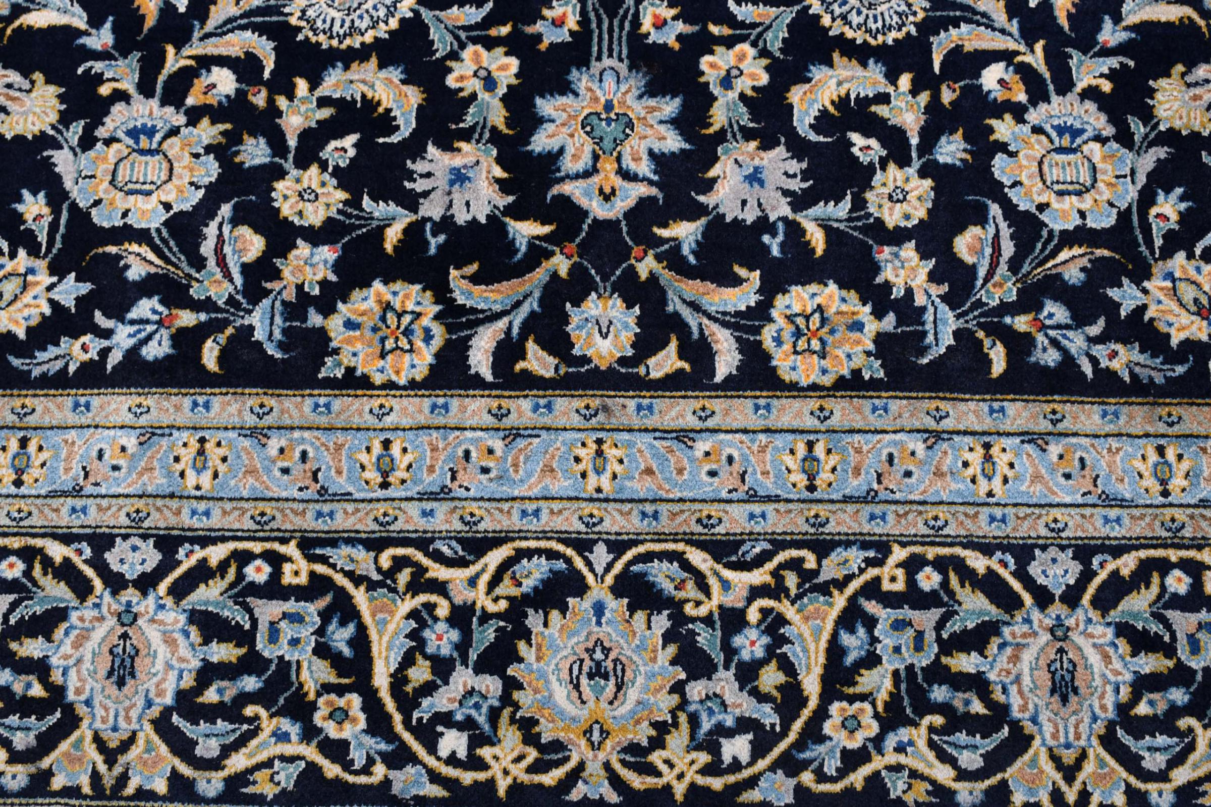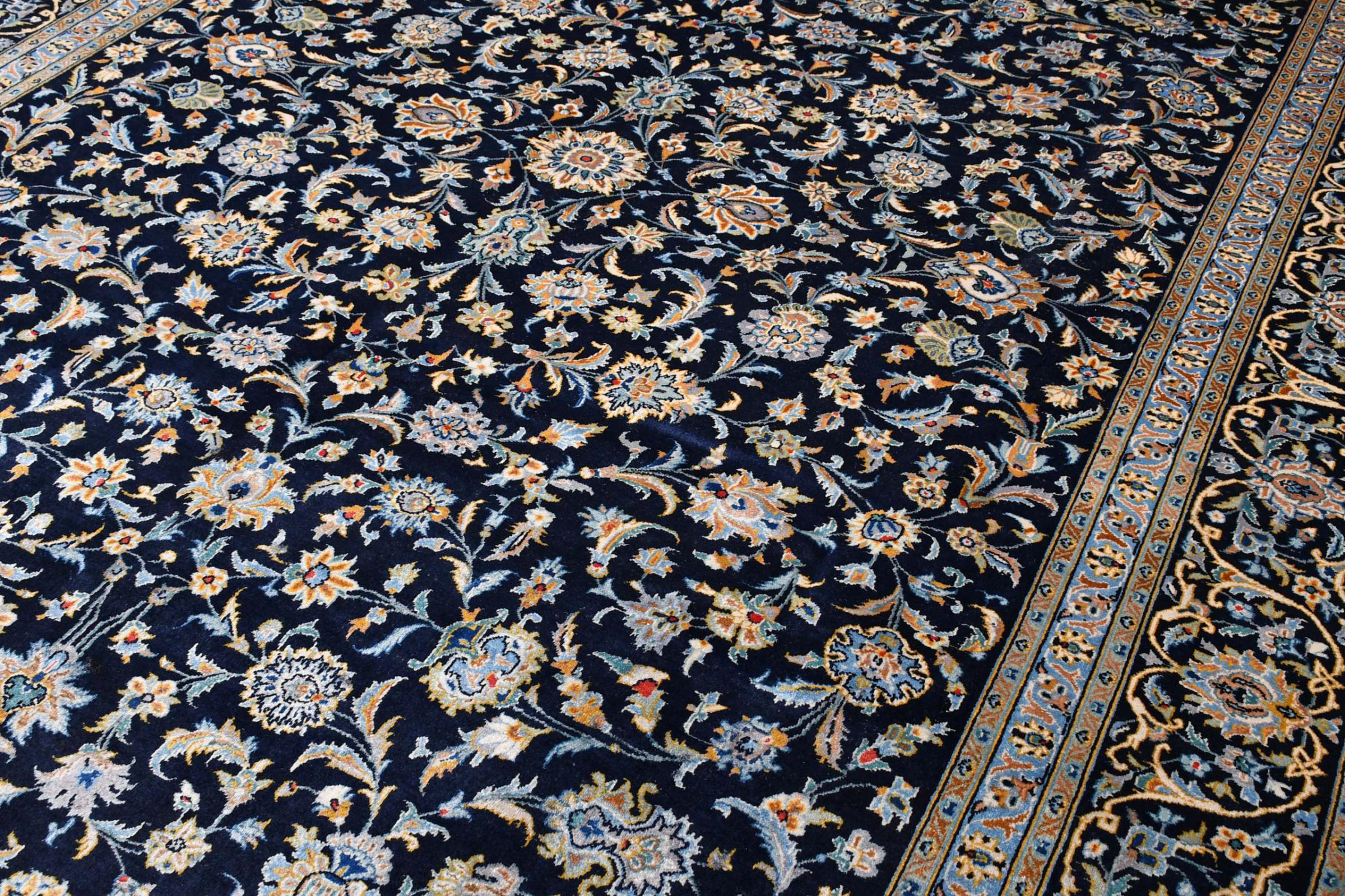 Denna matta från Kashan (Keshan) hålls i sin mycket traditionella och typiska persiska design med vackra ornament. Kashan-mattor är mycket populära på grund av sin exceptionellt eleganta design. Dessa mattor kommer från Kashan, en stad på den antika sidenvägen. Denna matta har knutens för hand av högkvalitativ fårull och kommer att bli en unik höjdpunkt i ditt hem.