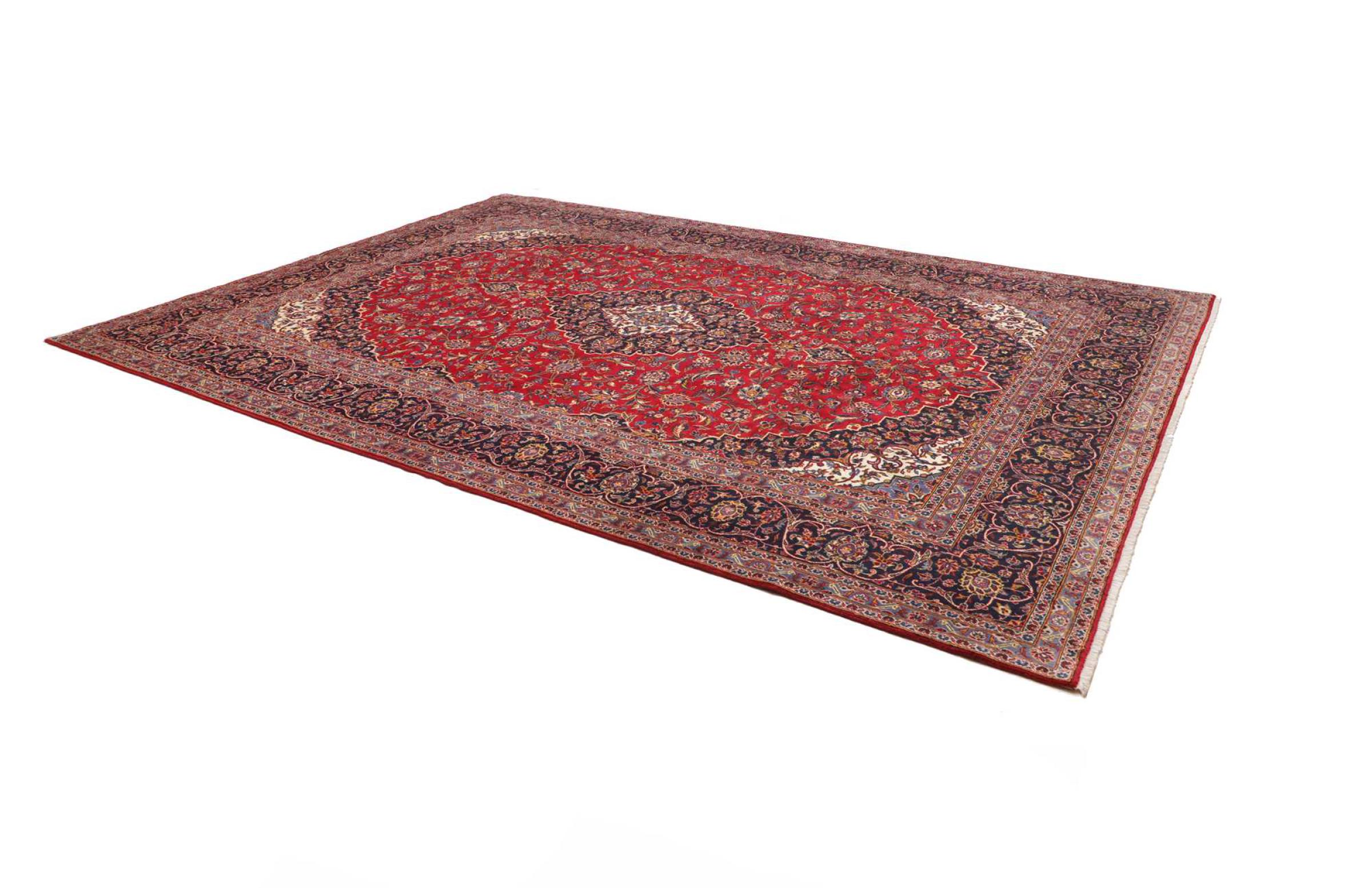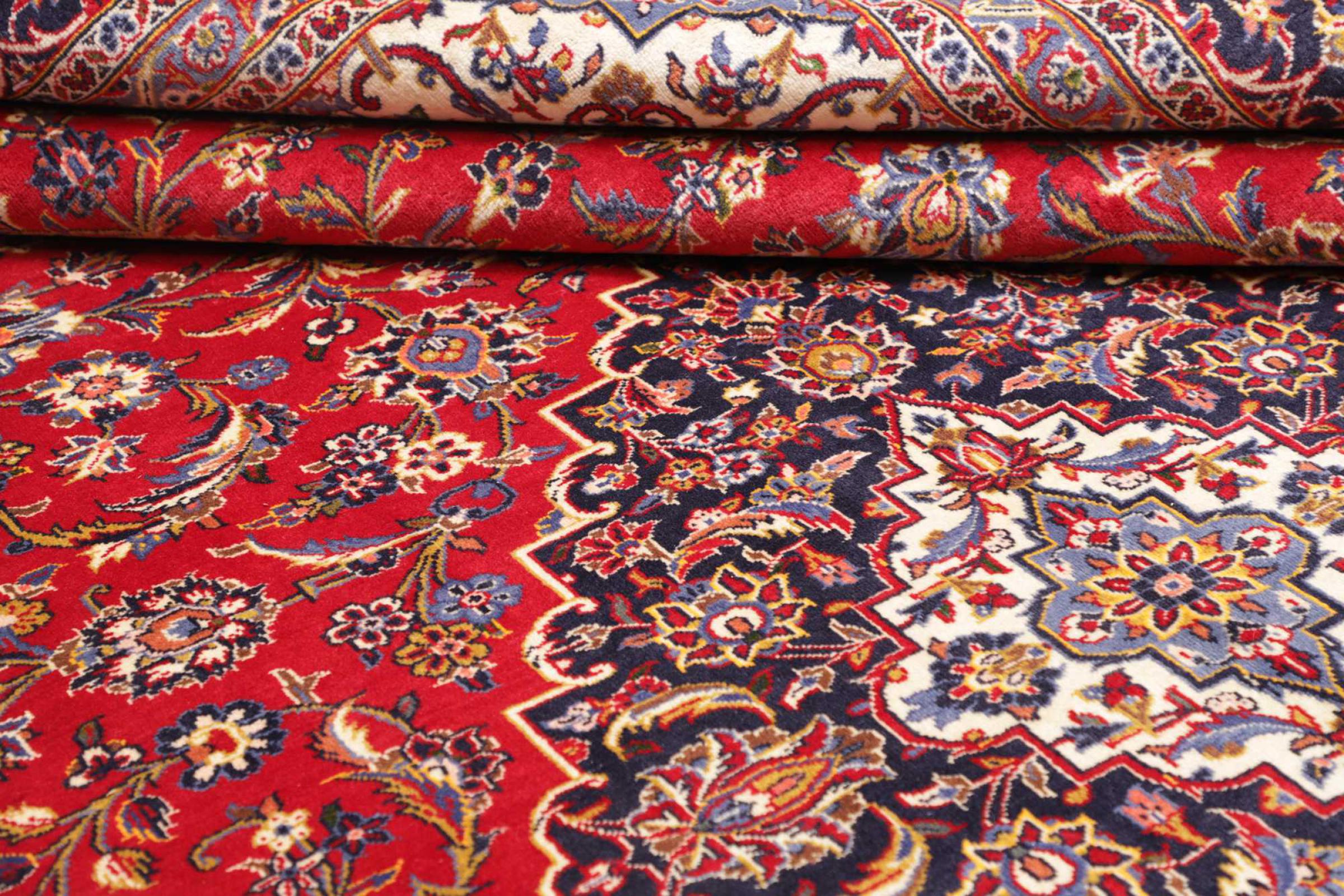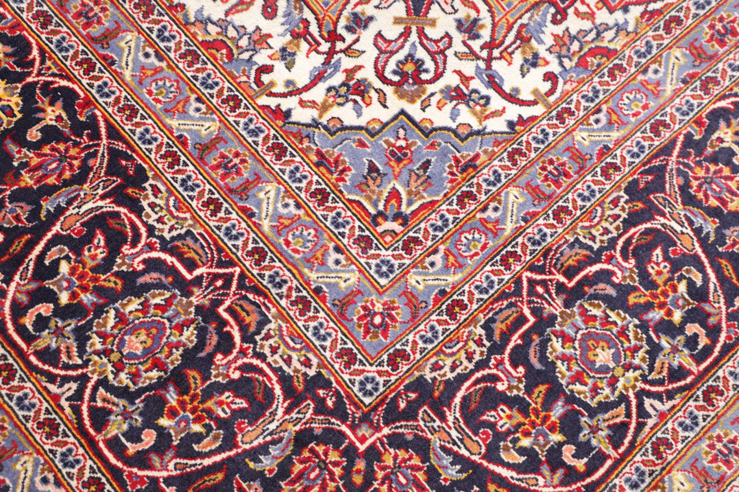 Denna matta från Kashan (Keshan) hålls i sin mycket traditionella och typiska persiska design med vackra ornament. Kashan-mattor är mycket populära på grund av sin exceptionellt eleganta design. Dessa mattor kommer från Kashan, en stad på den antika sidenvägen. Denna matta har knutens för hand av högkvalitativ fårull och kommer att bli en unik höjdpunkt i ditt hem.