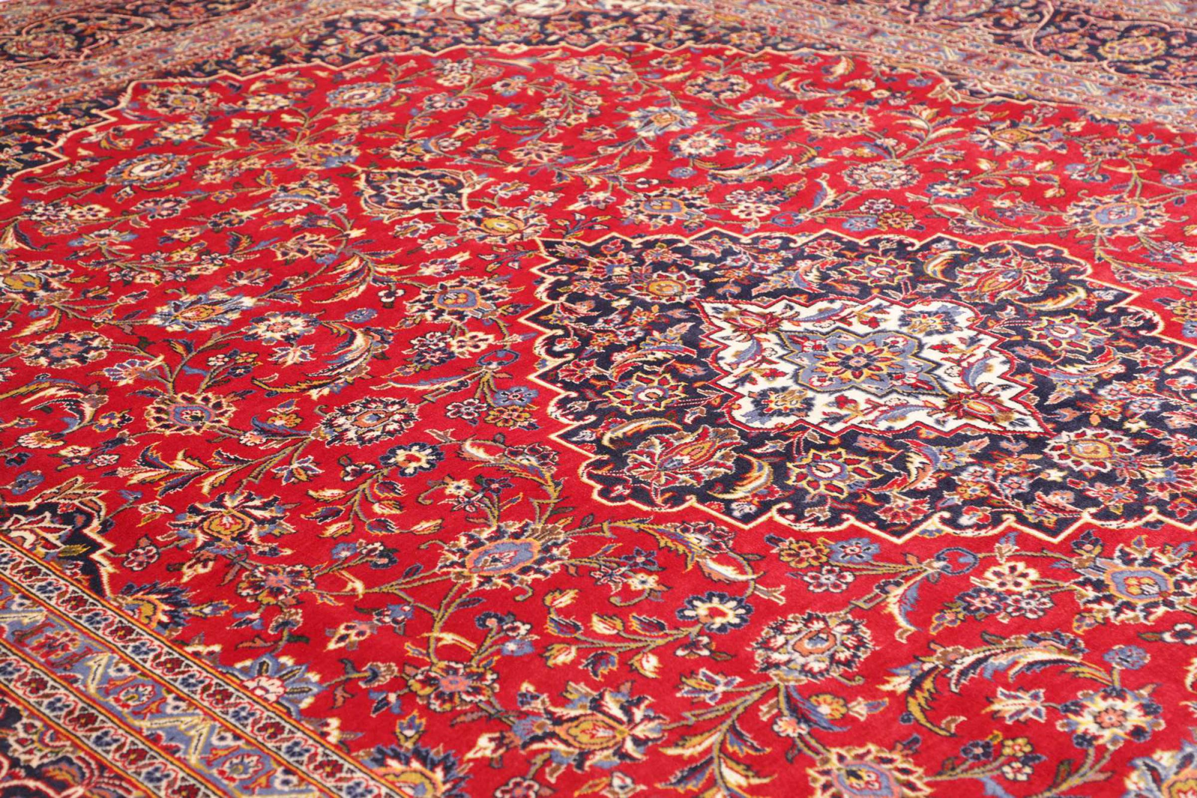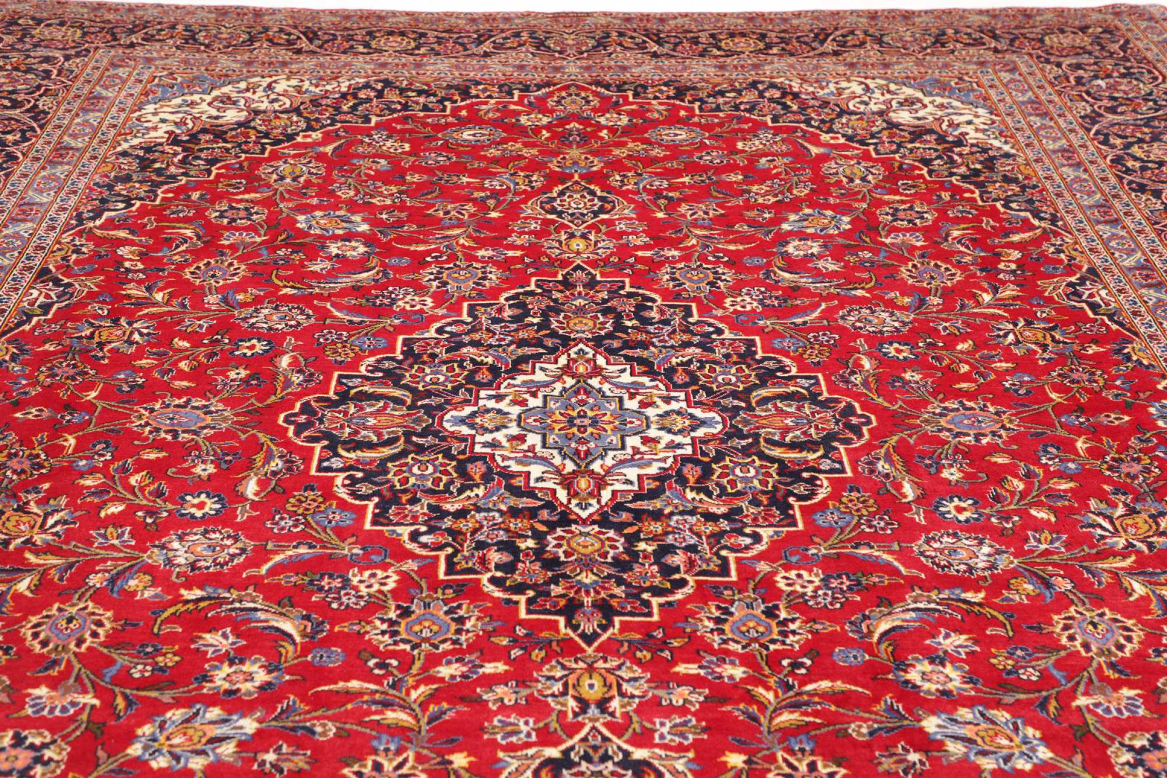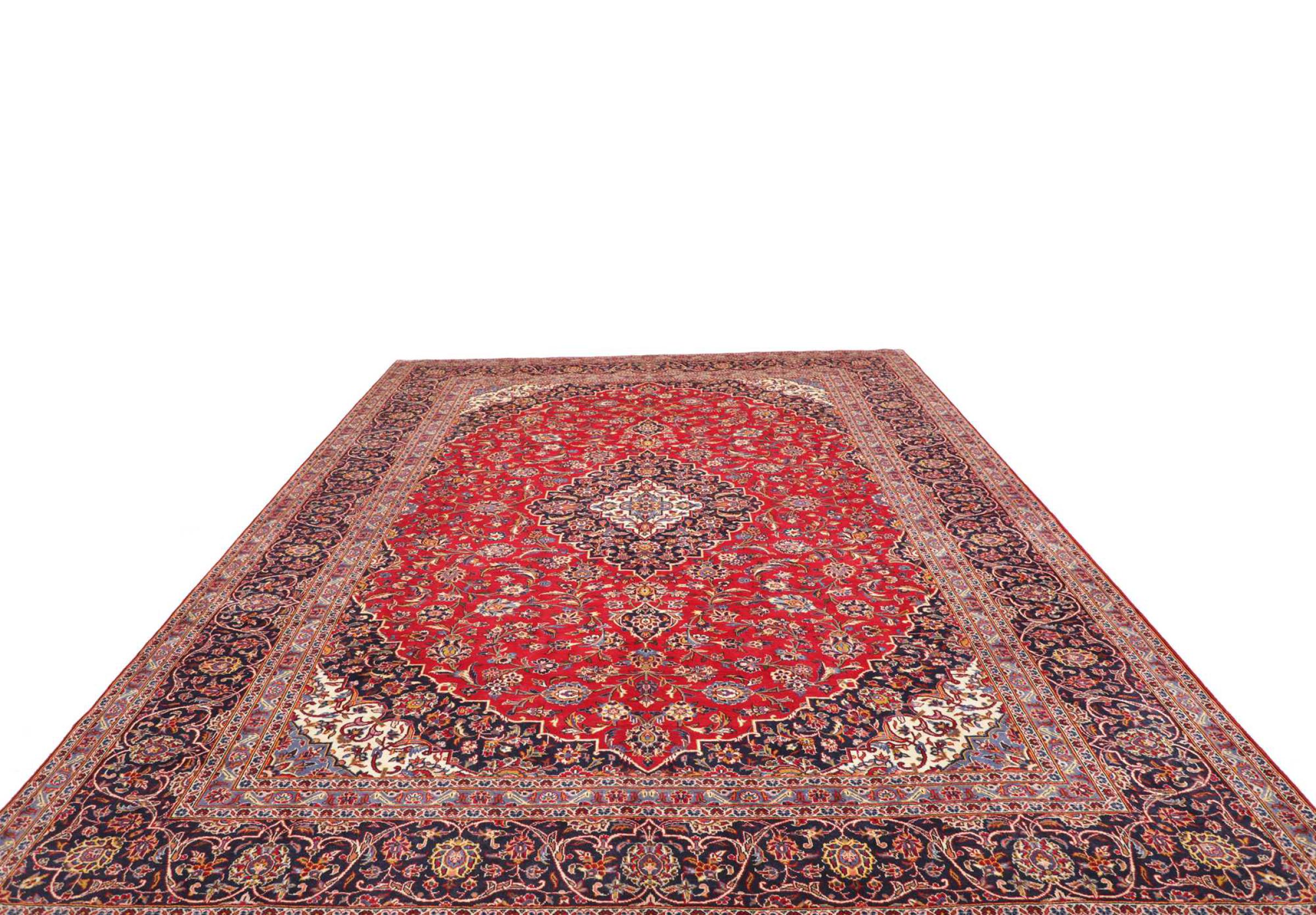 Denna matta från Kashan (Keshan) hålls i sin mycket traditionella och typiska persiska design med vackra ornament. Kashan-mattor är mycket populära på grund av sin exceptionellt eleganta design. Dessa mattor kommer från Kashan, en stad på den antika sidenvägen. Denna matta har knutens för hand av högkvalitativ fårull och kommer att bli en unik höjdpunkt i ditt hem.