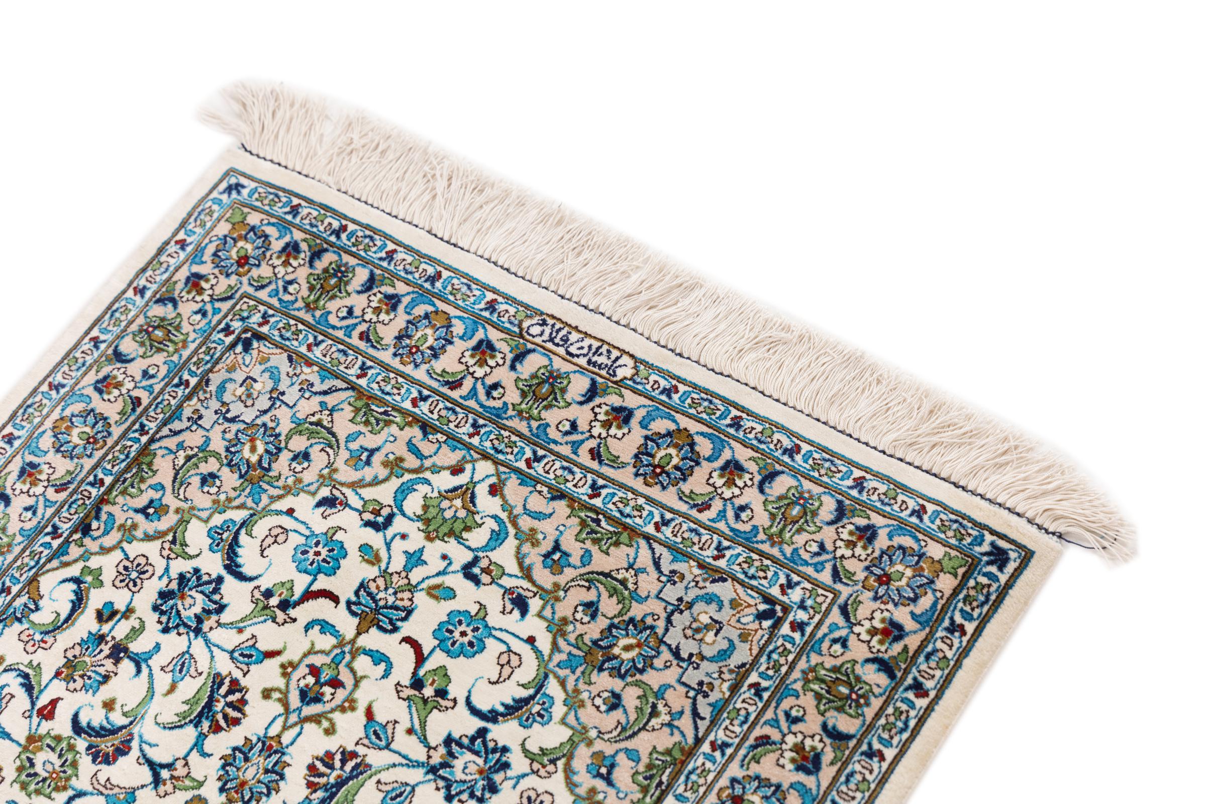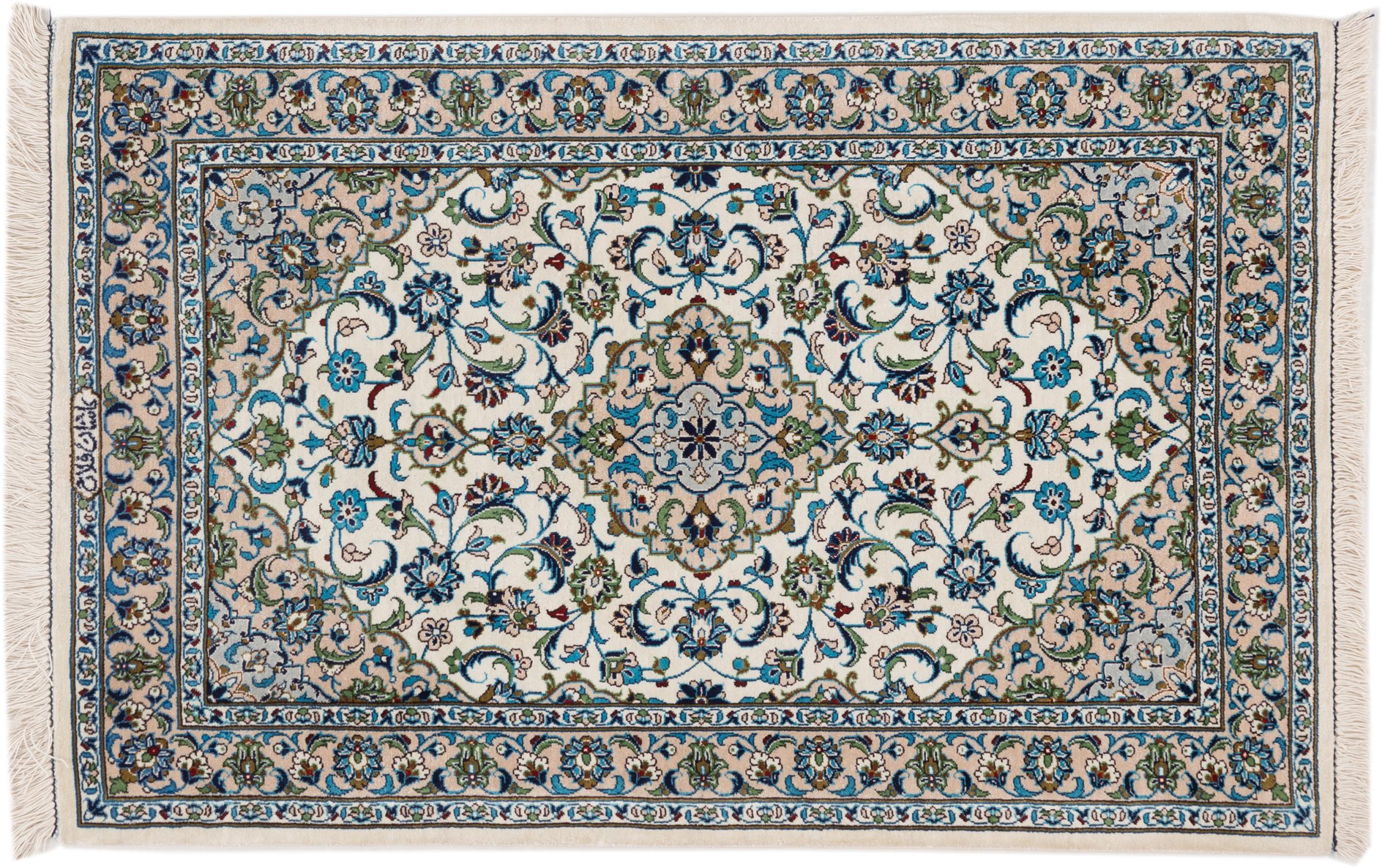 Mattans ID: 275849006677772 Storlek: 91x58 cm Tjocklek: ap. 5 mm Knuttäthet: 810 000 / m² Tillverkning: Knuten för hand Lugg: Silke Varp: Silke Ursprung: Persien / Iran Ålder: Ny Vikt: ap. 2 kg I lager: Unik - Endast 1 i lager