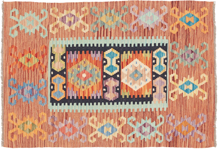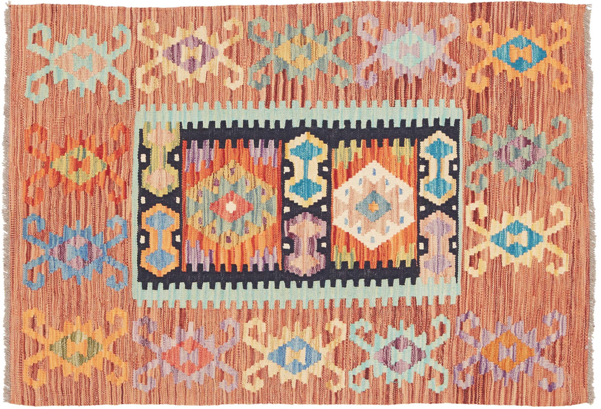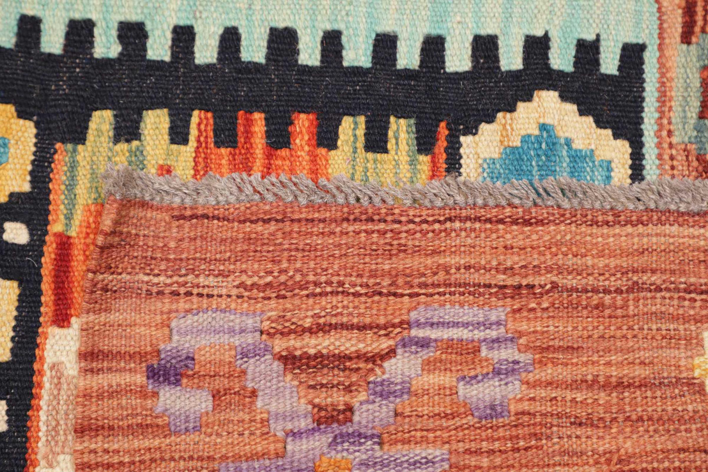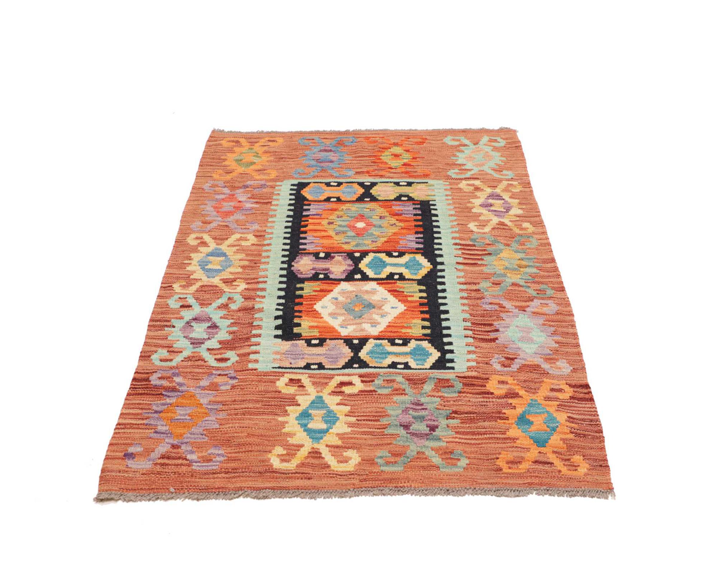 Denna handvävda kelim afghan är vacker tack vare de mångfacetterade färgerna och det typiska mönstret. Den var handvävd i Afghanistan av 100 % fårull. Den är utan tvekan mer robust och hållbar än maskintillverkade mattor. Dessutom har denna kelim en alldeles egen karaktär. En unik pjäs för dig och ditt hem som du aldrig kommer att hitta igen.