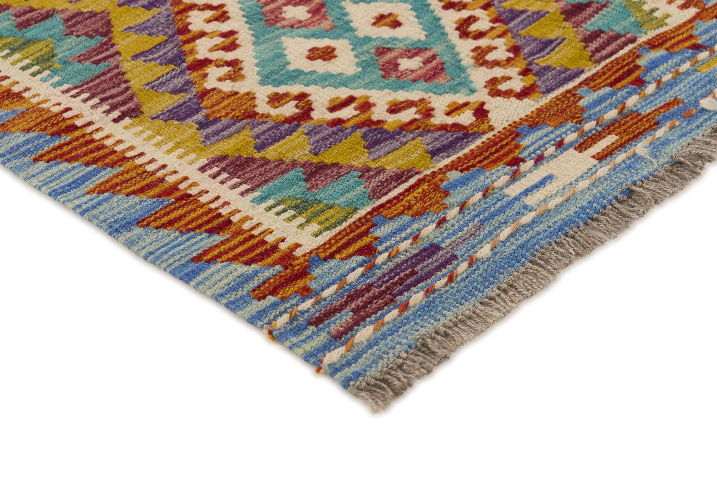 Denna handvävda kelim afghan är vacker tack vare de mångfacetterade färgerna och det typiska mönstret. Den var handvävd i Afghanistan av 100 % fårull. Den är utan tvekan mer robust och hållbar än maskintillverkade mattor. Dessutom har denna kelim en alldeles egen karaktär. En unik pjäs för dig och ditt hem som du aldrig kommer att hitta igen.
