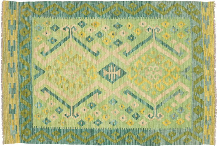 Denna matta tillverkas för hand på vävstolen som en platt väv. Flatweaves är mattor som inte har någon hög. Som namnet antyder är dessa mattor vävda och inte knutna. Detta resulterar i en platt matta med en strukturerad yta. Platta väver är inte så mjuka och mest tunnare än knutna mattor. Samtidigt är de betydligt mindre komplexa att tillverka och kan vanligtvis utformas från båda sidor (fram och bak). Deras mönster är vanligtvis geometriska, vilket beror på tyget.