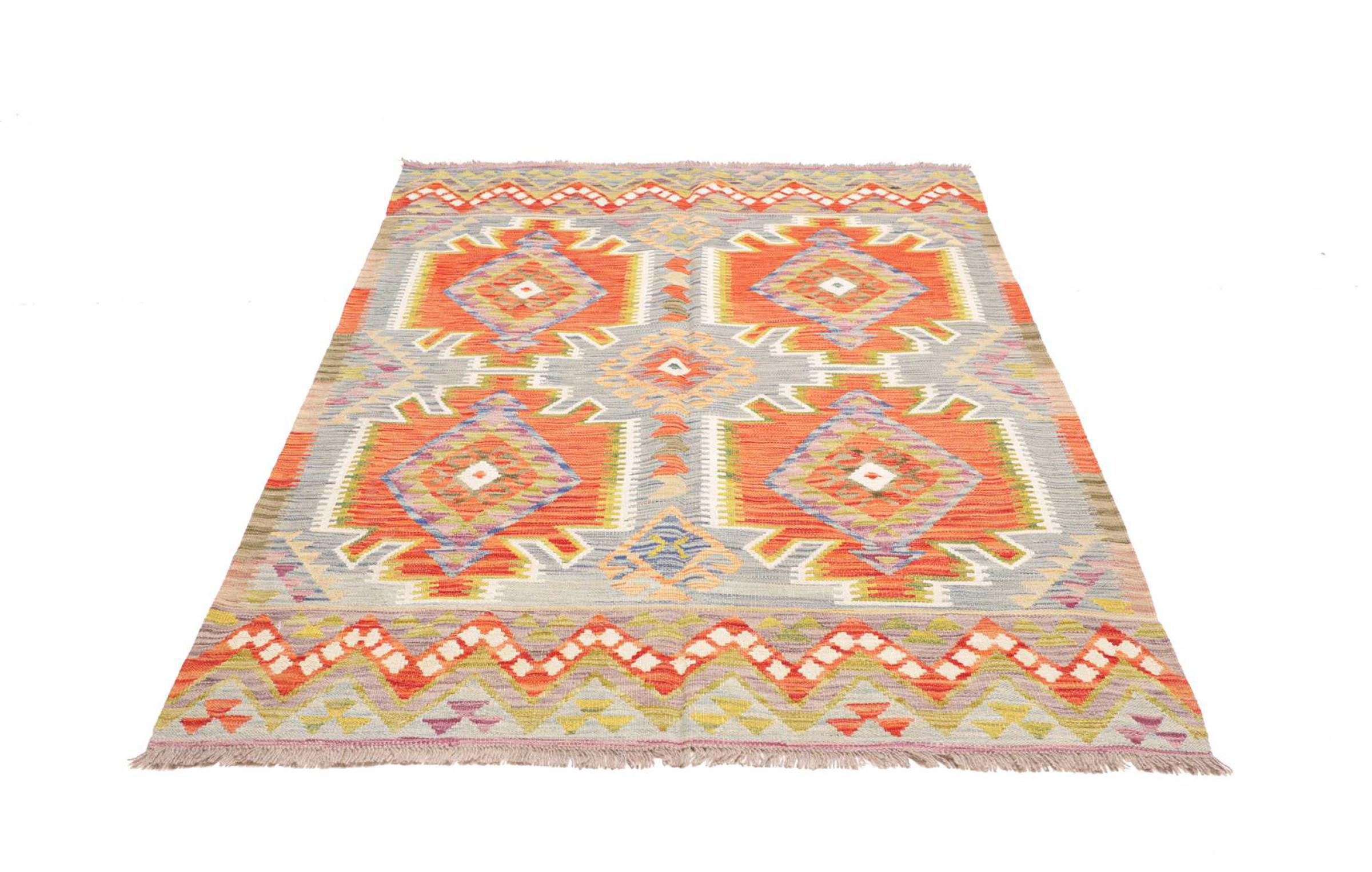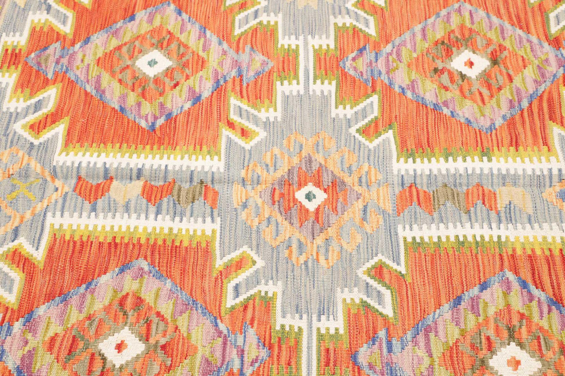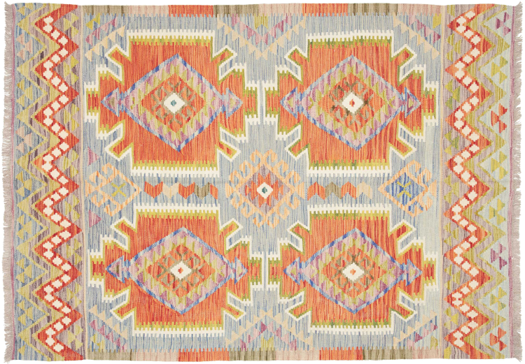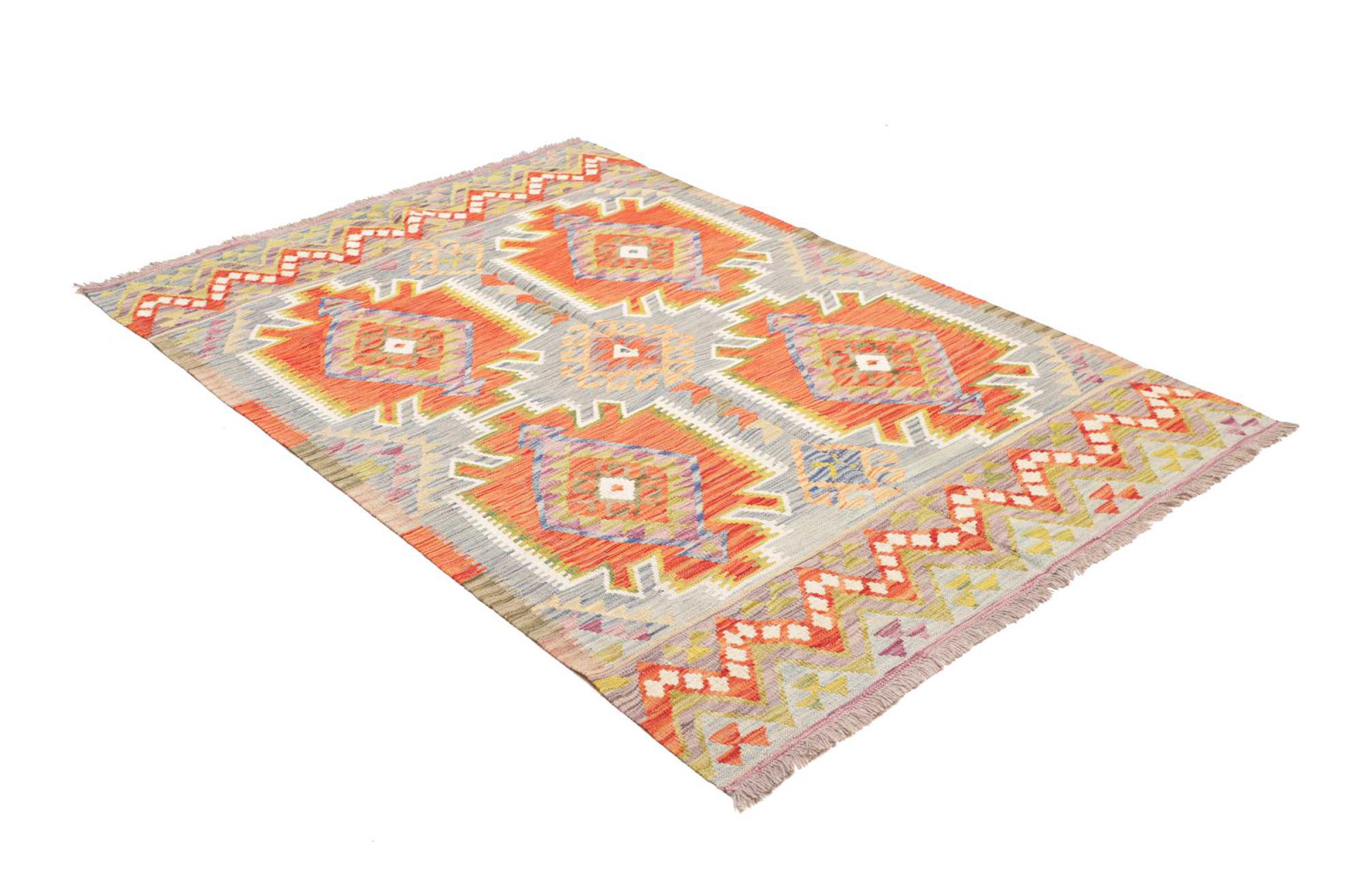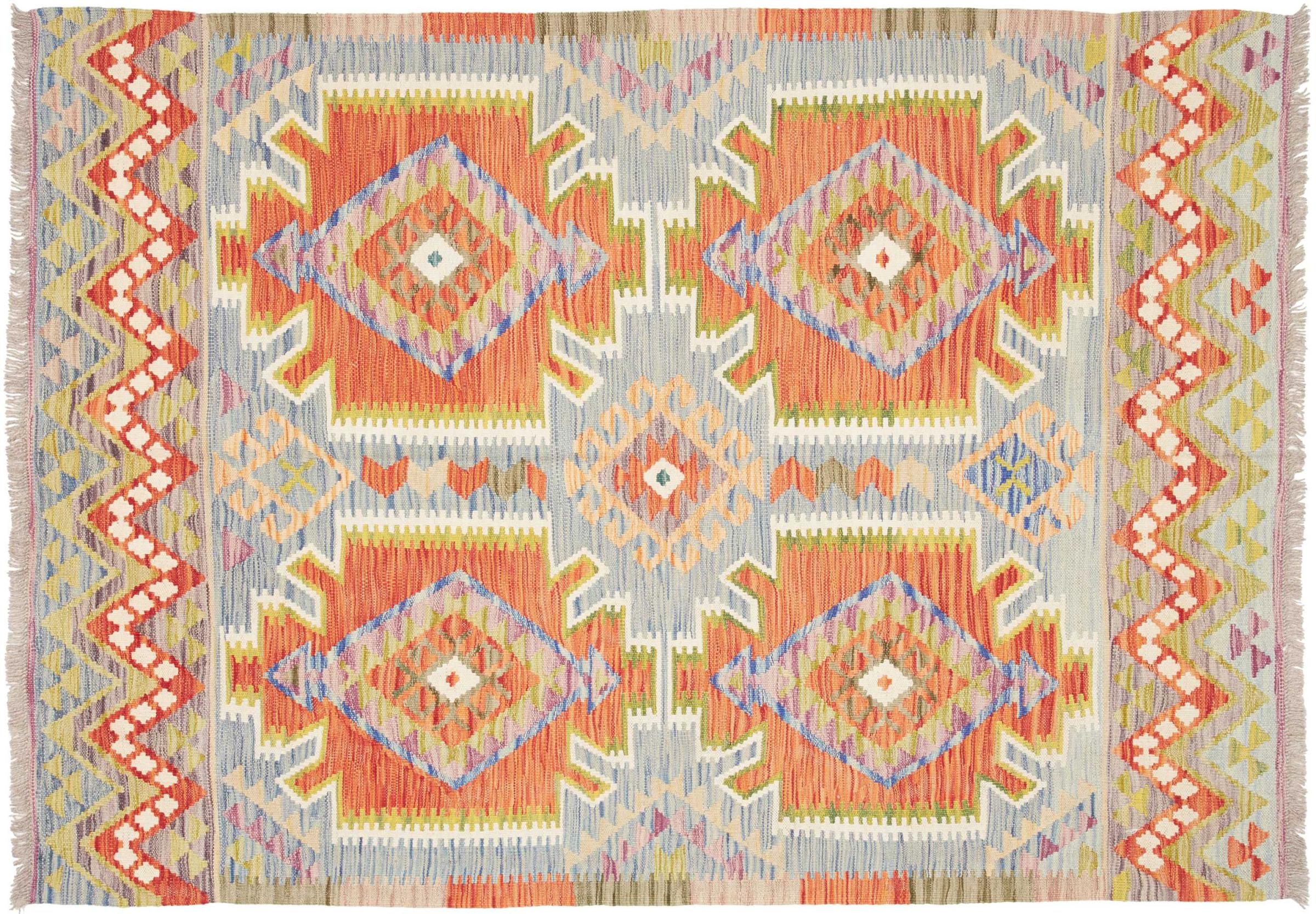Denna handvävda kelim afghan är vacker tack vare de mångfacetterade färgerna och det typiska mönstret. Den var handvävd i Afghanistan av 100 % fårull. Den är utan tvekan mer robust och hållbar än maskintillverkade mattor. Dessutom har denna kelim en alldeles egen karaktär. En unik pjäs för dig och ditt hem som du aldrig kommer att hitta igen.