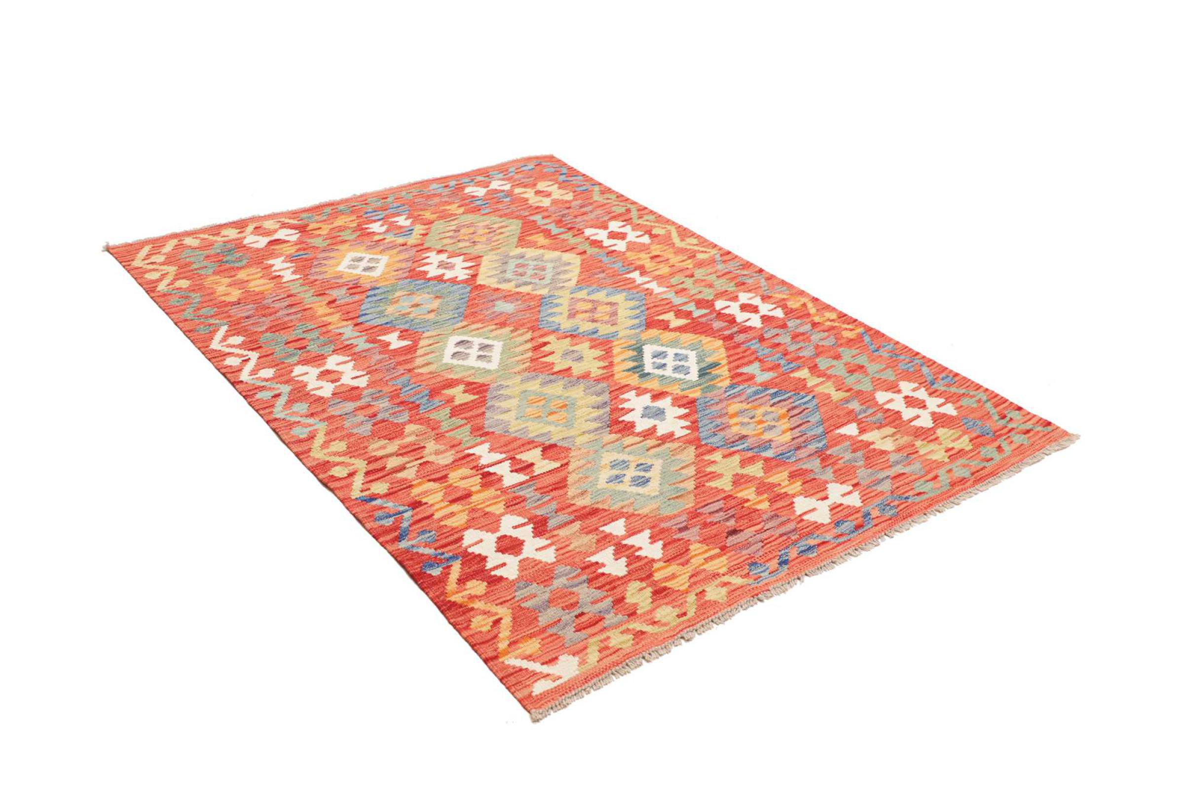 Denna handvävda kelim afghan är vacker tack vare de mångfacetterade färgerna och det typiska mönstret. Den var handvävd i Afghanistan av 100 % fårull. Den är utan tvekan mer robust och hållbar än maskintillverkade mattor. Dessutom har denna kelim en alldeles egen karaktär. En unik pjäs för dig och ditt hem som du aldrig kommer att hitta igen.