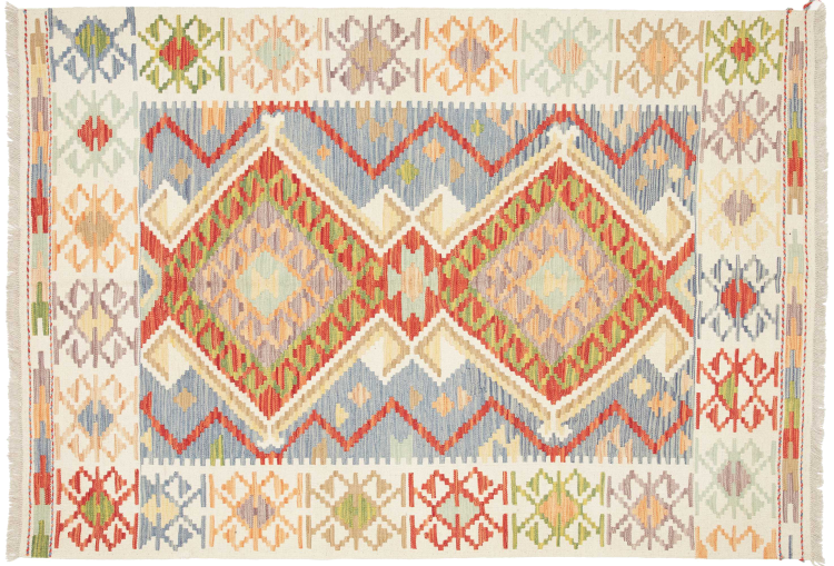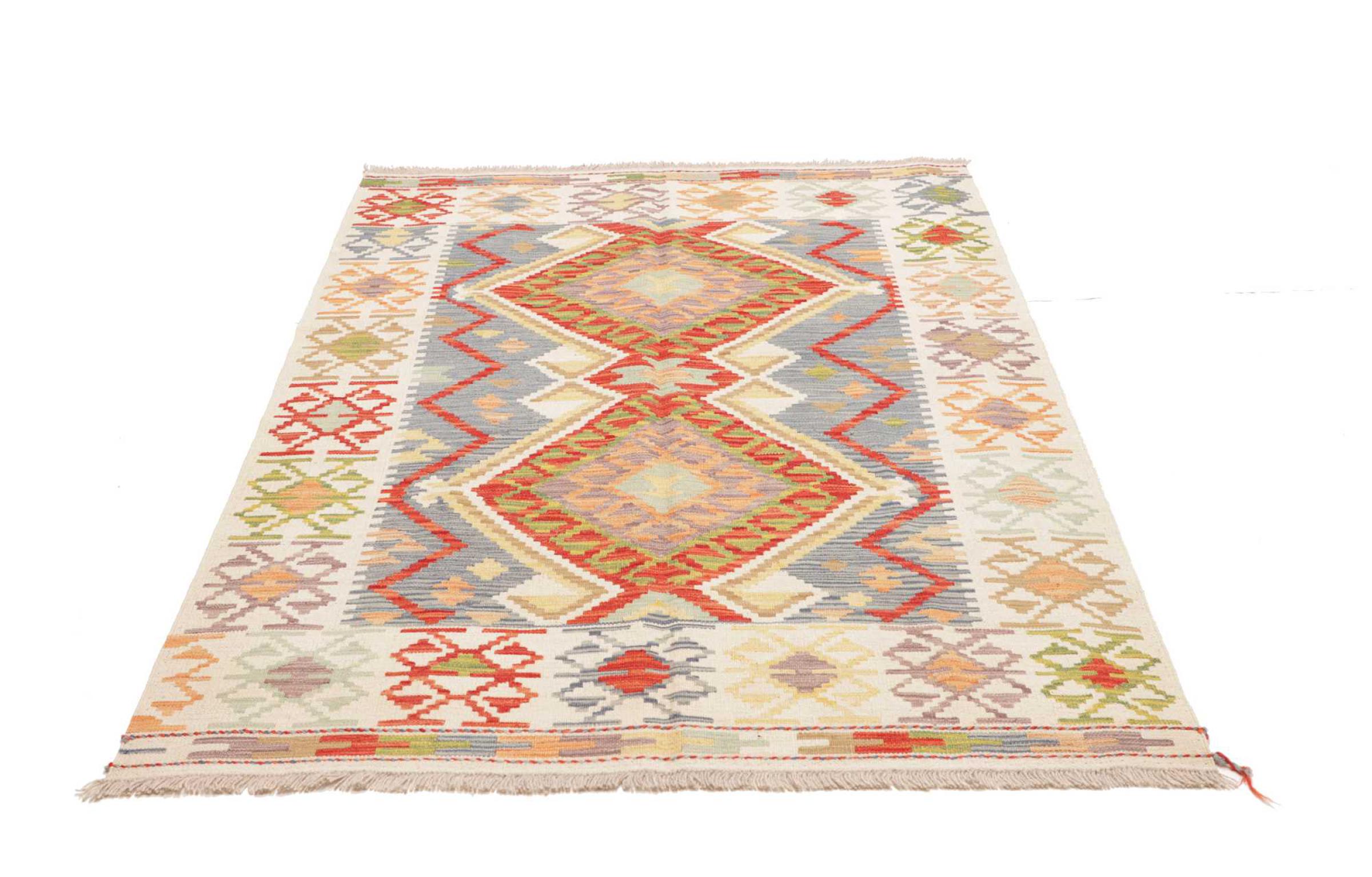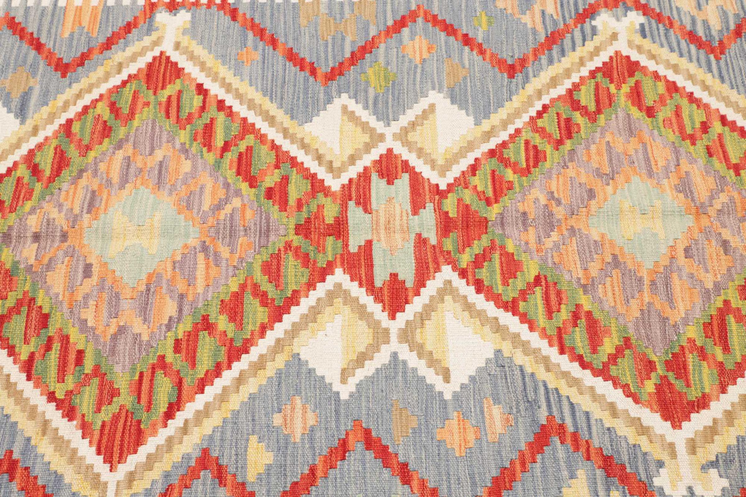Denna handvävda kelim afghan är vacker tack vare de mångfacetterade färgerna och det typiska mönstret. Den var handvävd i Afghanistan av 100 % fårull. Den är utan tvekan mer robust och hållbar än maskintillverkade mattor. Dessutom har denna kelim en alldeles egen karaktär. En unik pjäs för dig och ditt hem som du aldrig kommer att hitta igen.