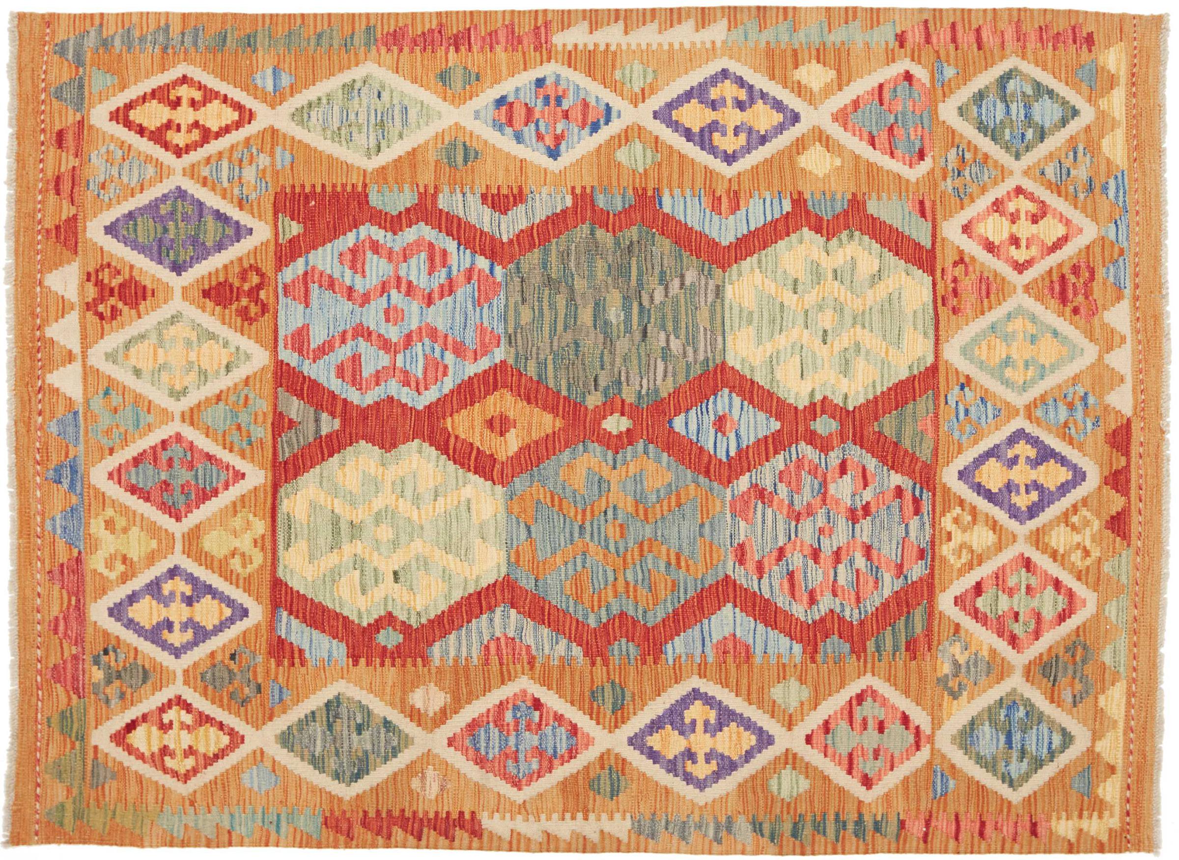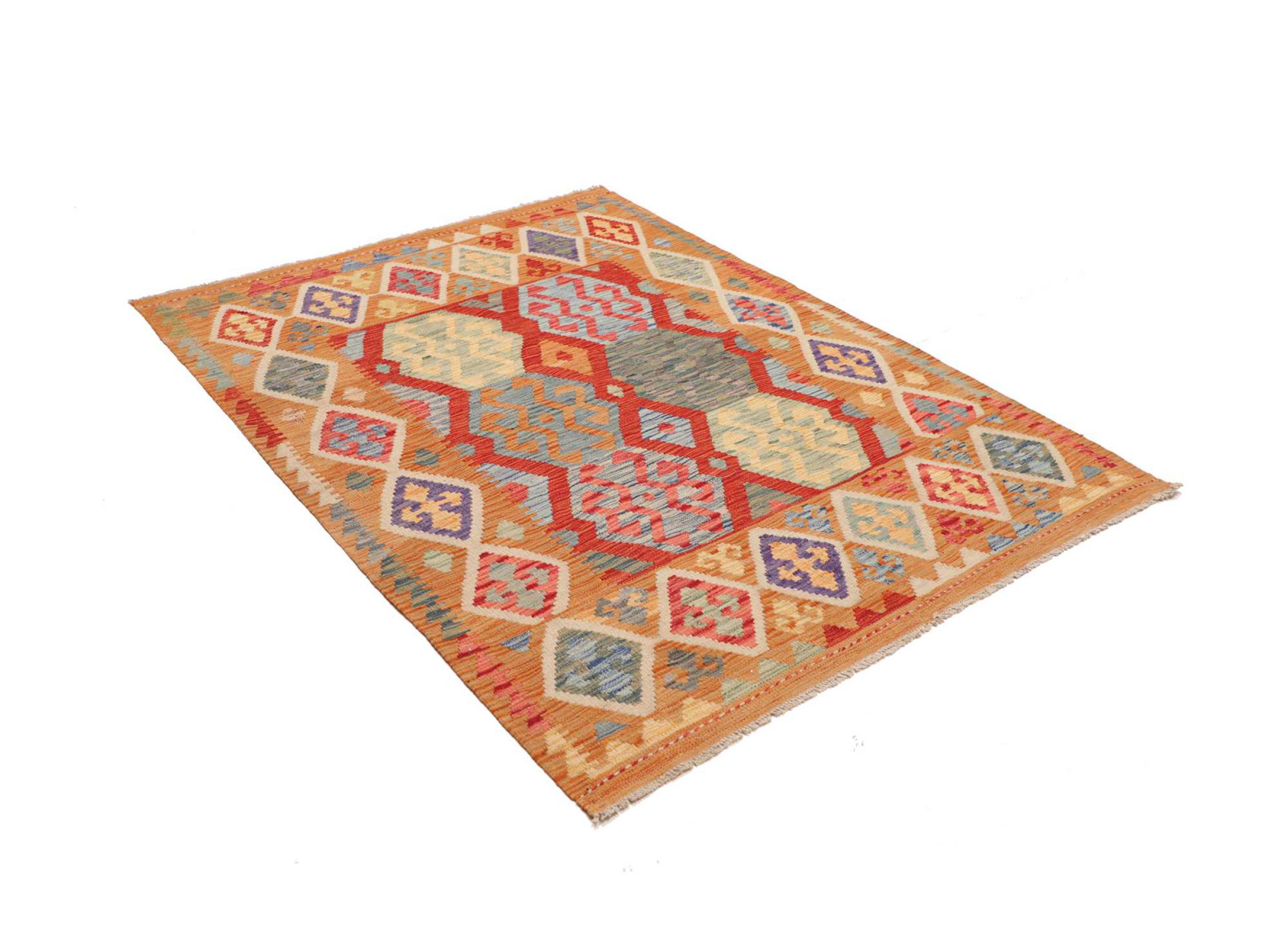 Denna handvävda kelim afghan är vacker tack vare de mångfacetterade färgerna och det typiska mönstret. Den var handvävd i Afghanistan av 100 % fårull. Den är utan tvekan mer robust och hållbar än maskintillverkade mattor. Dessutom har denna kelim en alldeles egen karaktär. En unik pjäs för dig och ditt hem som du aldrig kommer att hitta igen.