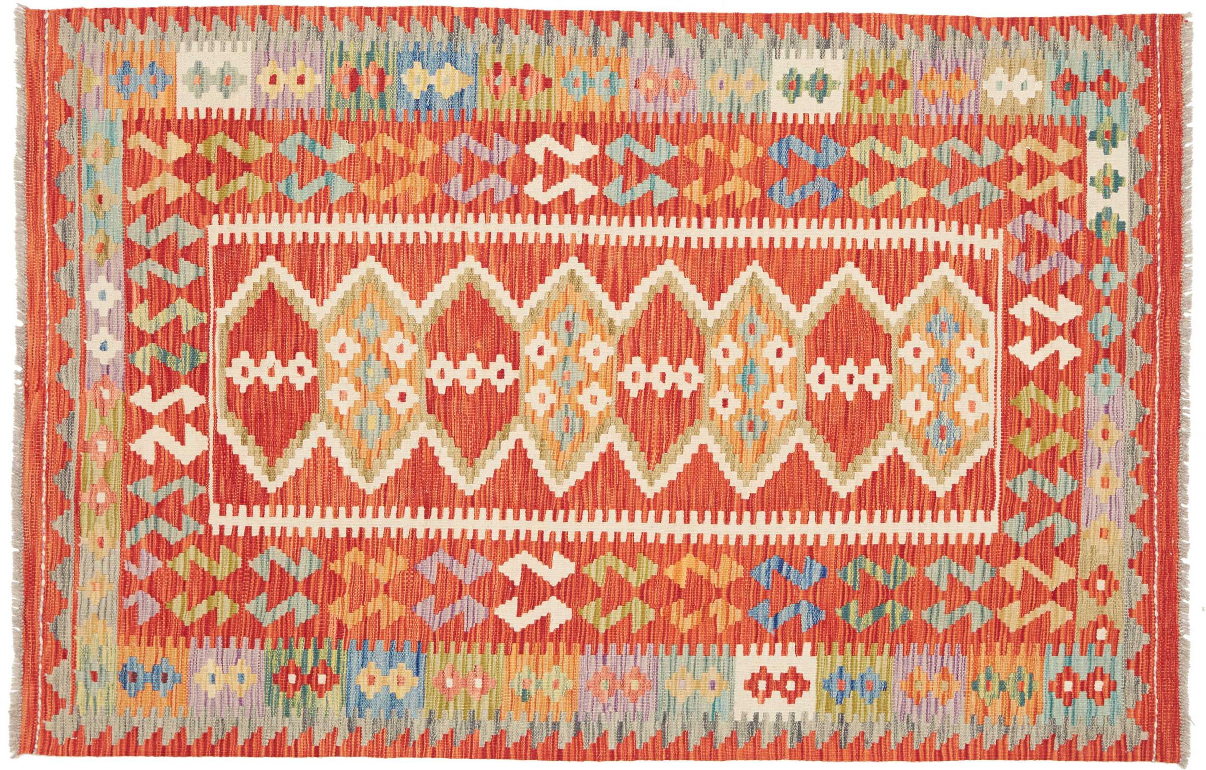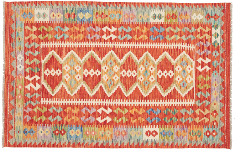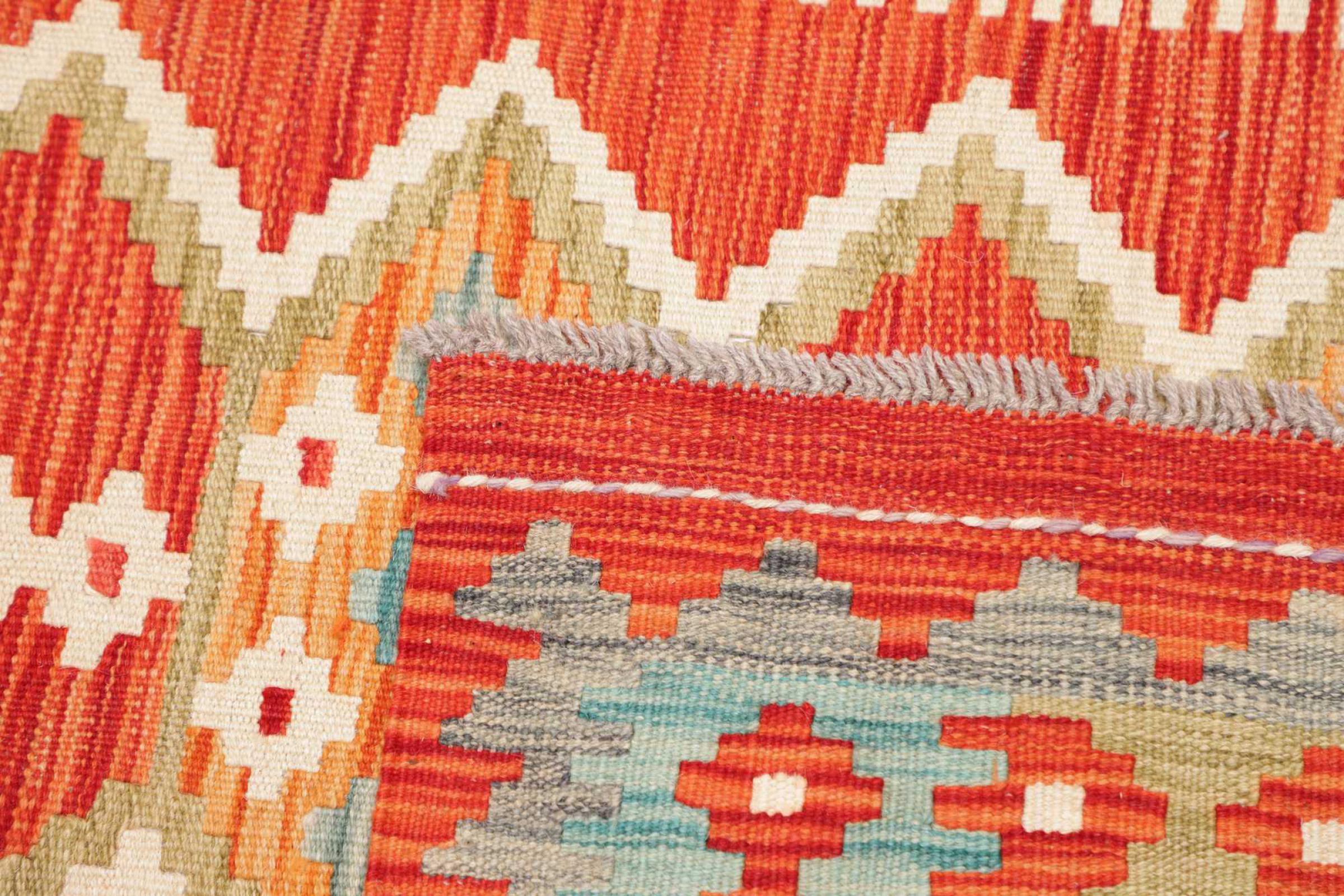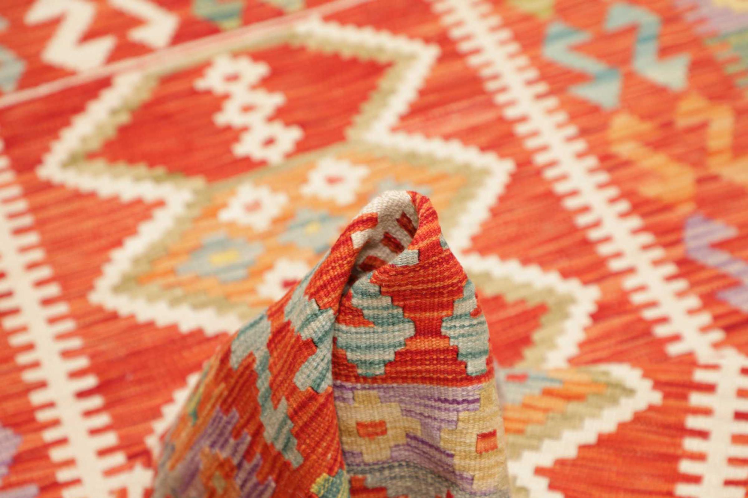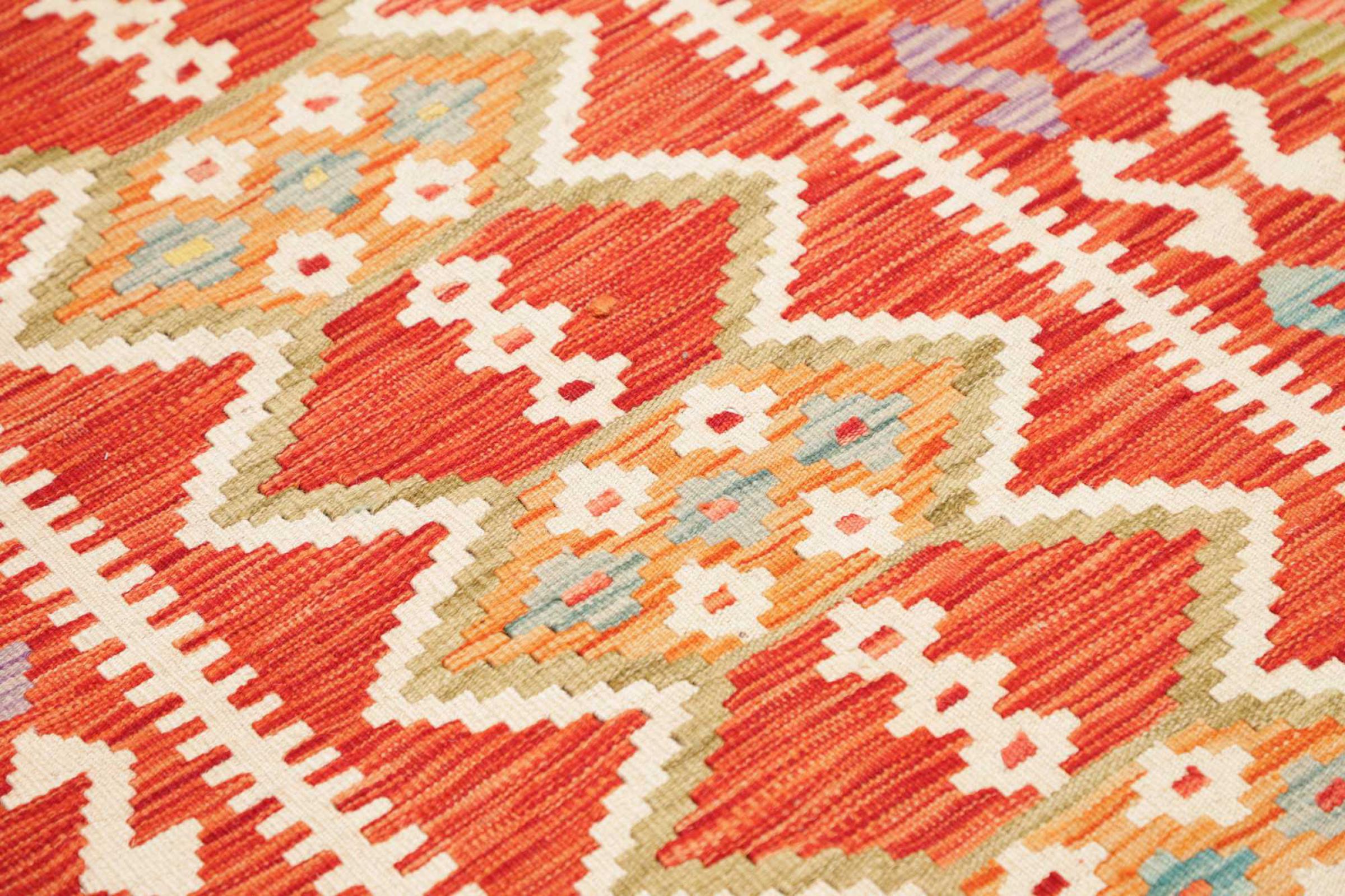 Denna handvävda kelim afghan är vacker tack vare de mångfacetterade färgerna och det typiska mönstret. Den var handvävd i Afghanistan av 100 % fårull. Den är utan tvekan mer robust och hållbar än maskintillverkade mattor. Dessutom har denna kelim en alldeles egen karaktär. En unik pjäs för dig och ditt hem som du aldrig kommer att hitta igen.
