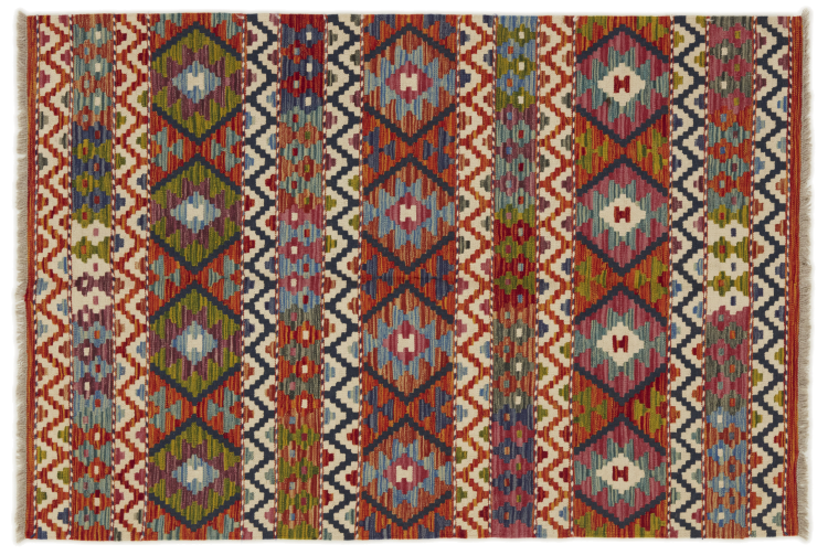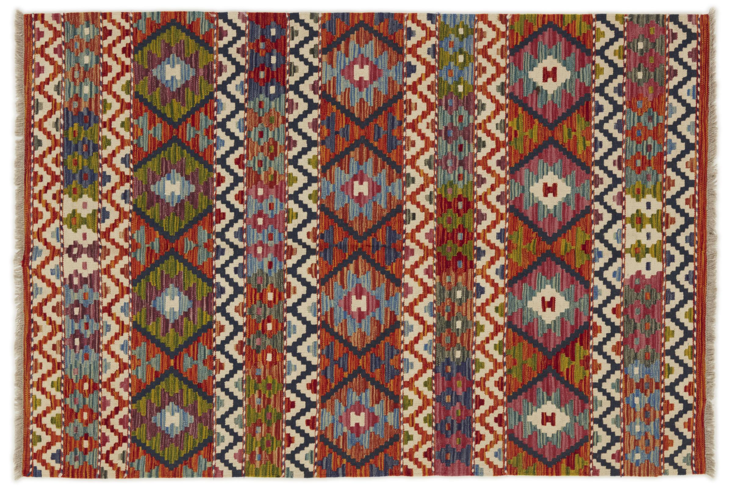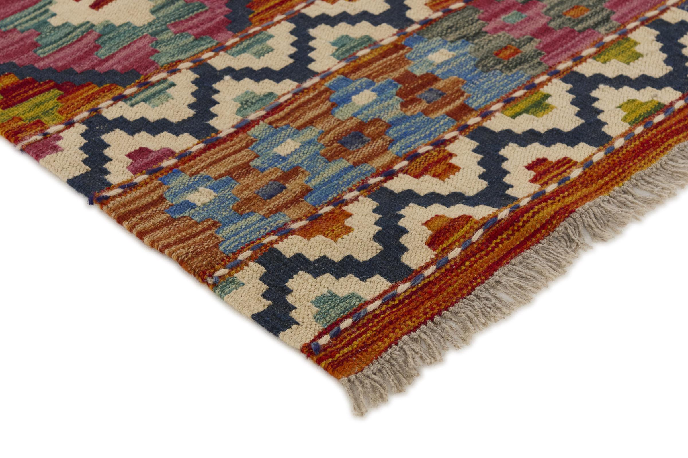 Denna handvävda kelim afghan är vacker tack vare de mångfacetterade färgerna och det typiska mönstret. Den var handvävd i Afghanistan av 100 % fårull. Den är utan tvekan mer robust och hållbar än maskintillverkade mattor. Dessutom har denna kelim en alldeles egen karaktär. En unik pjäs för dig och ditt hem som du aldrig kommer att hitta igen.