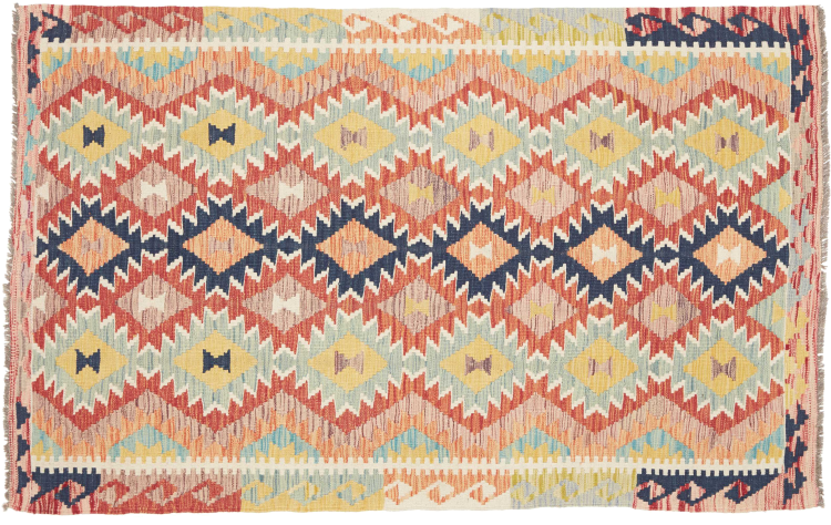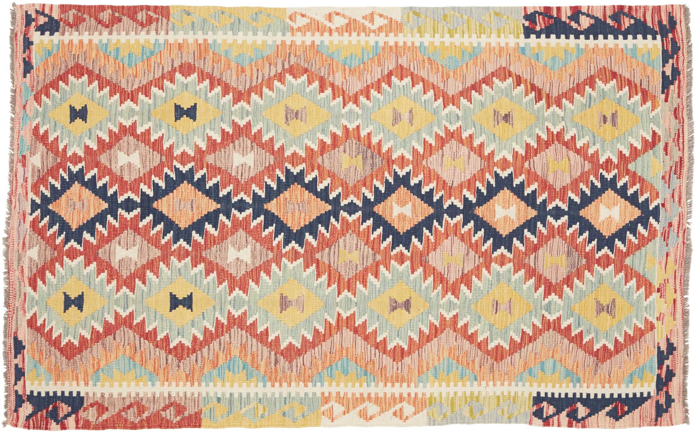 Denna handvävda kelim afghan är vacker tack vare de mångfacetterade färgerna och det typiska mönstret. Den var handvävd i Afghanistan av 100 % fårull. Den är utan tvekan mer robust och hållbar än maskintillverkade mattor. Dessutom har denna kelim en alldeles egen karaktär. En unik pjäs för dig och ditt hem som du aldrig kommer att hitta igen.