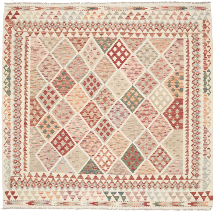 Mattans ID: 310951008004571 Storlek: 196x204 cm Tjocklek: ap. 3 mm Tillverkning: handvävd Lugg: Handspunnen ull Varp: Ull Ursprung: Afghanistan Ålder: Ny Vikt: ap. 6 kg I lager: Unik - Endast 1 i lager