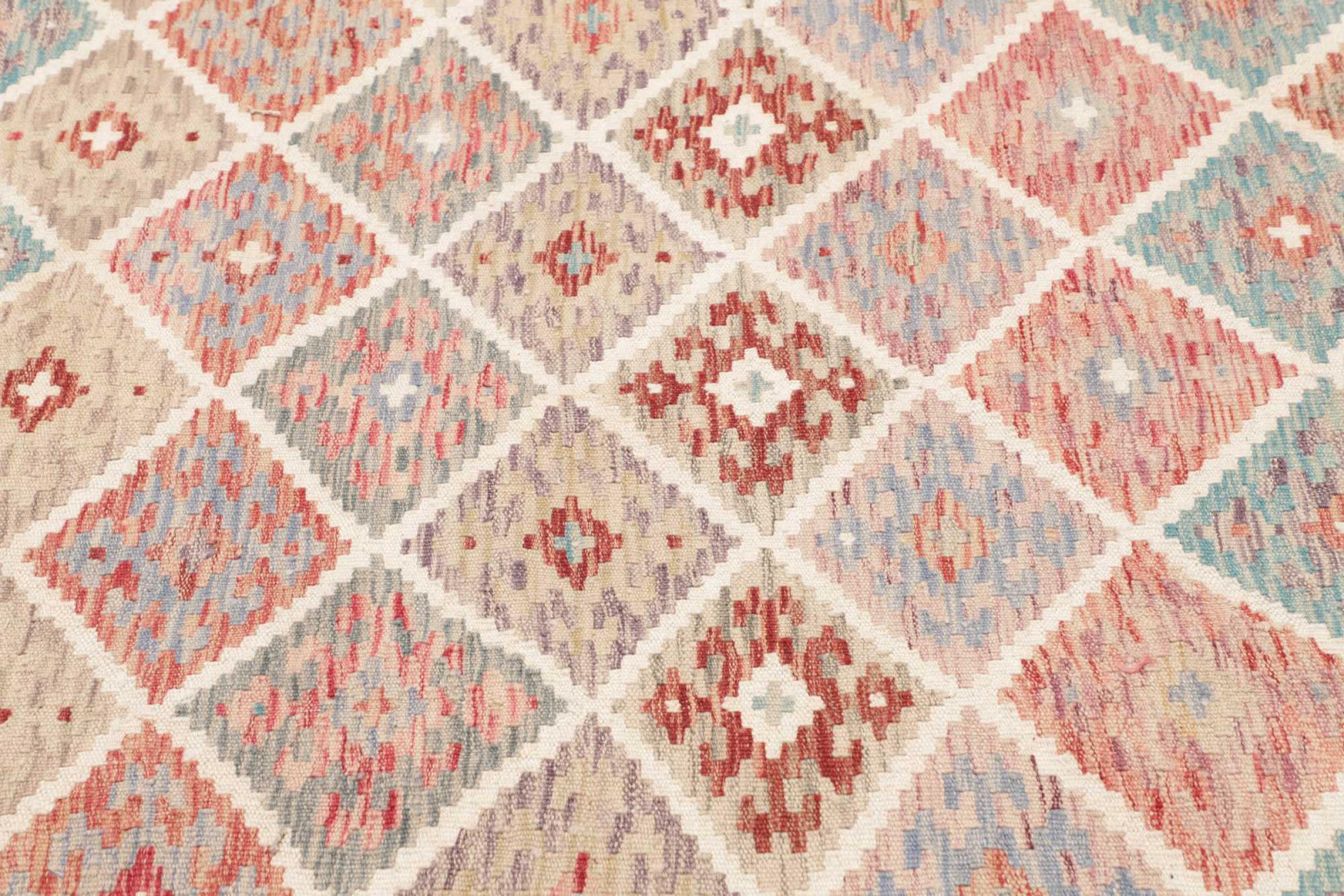 Denna handvävda kelim afghan är vacker tack vare de mångfacetterade färgerna och det typiska mönstret. Den var handvävd i Afghanistan av 100 % fårull. Den är utan tvekan mer robust och hållbar än maskintillverkade mattor. Dessutom har denna kelim en alldeles egen karaktär. En unik pjäs för dig och ditt hem som du aldrig kommer att hitta igen.