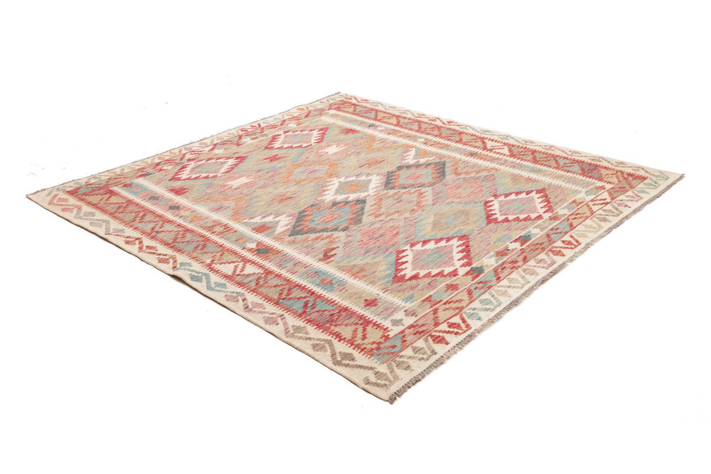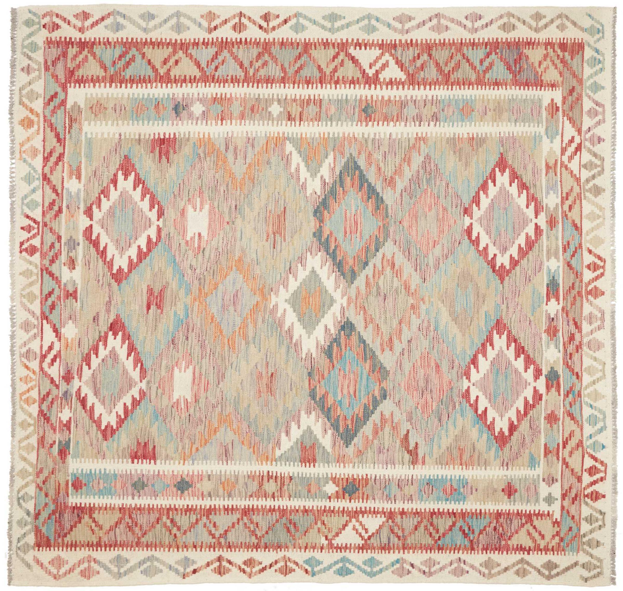 Mattans ID: 311136008518562 Storlek: 201x196 cm Tjocklek: ap. 3 mm Tillverkning: handvävd Lugg: Handspunnen ull Varp: Ull Ursprung: Afghanistan Ålder: Ny Vikt: ap. 6 kg I lager: Unik - Endast 1 i lager