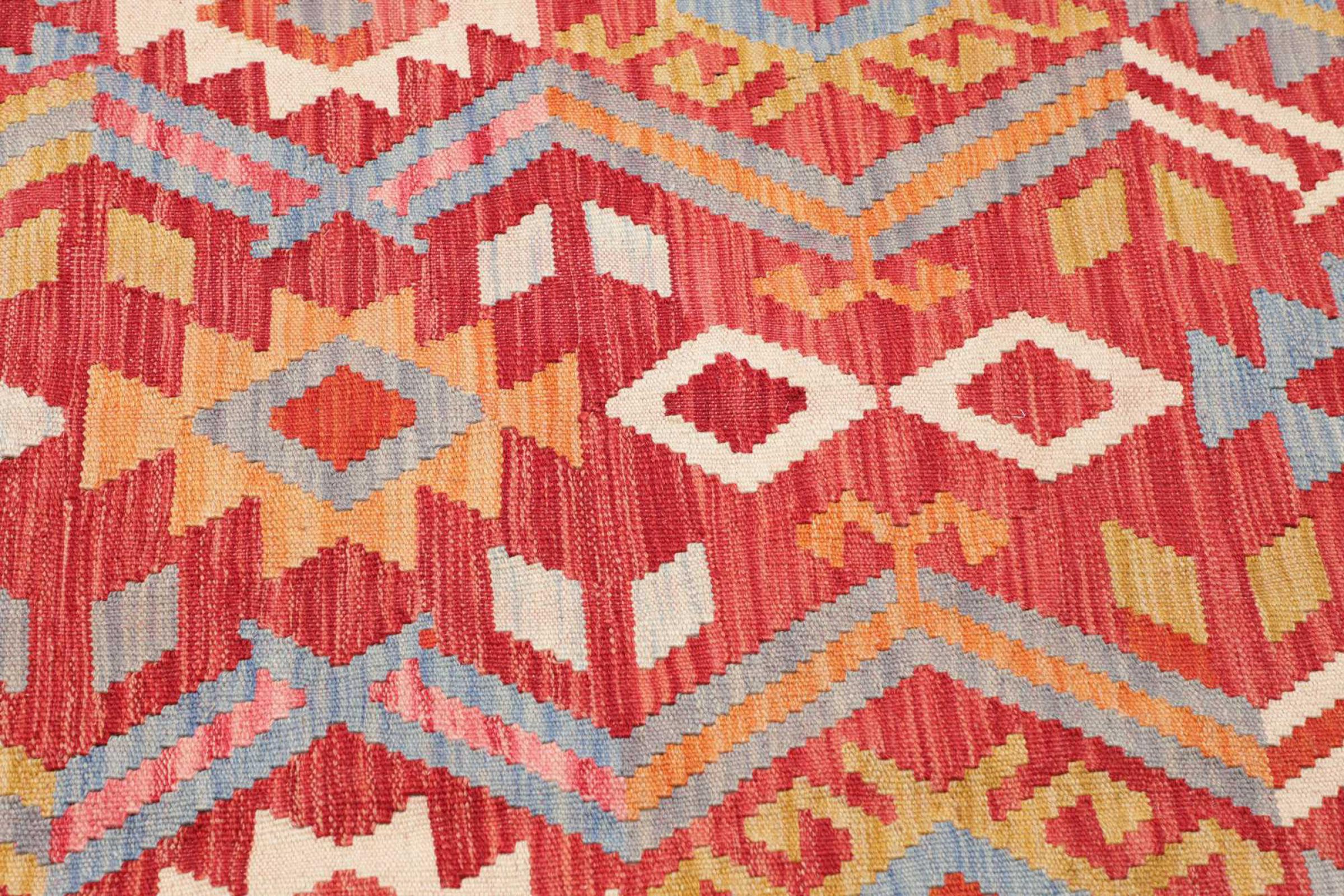 Denna handvävda kelim afghan är vacker tack vare de mångfacetterade färgerna och det typiska mönstret. Den var handvävd i Afghanistan av 100 % fårull. Den är utan tvekan mer robust och hållbar än maskintillverkade mattor. Dessutom har denna kelim en alldeles egen karaktär. En unik pjäs för dig och ditt hem som du aldrig kommer att hitta igen.