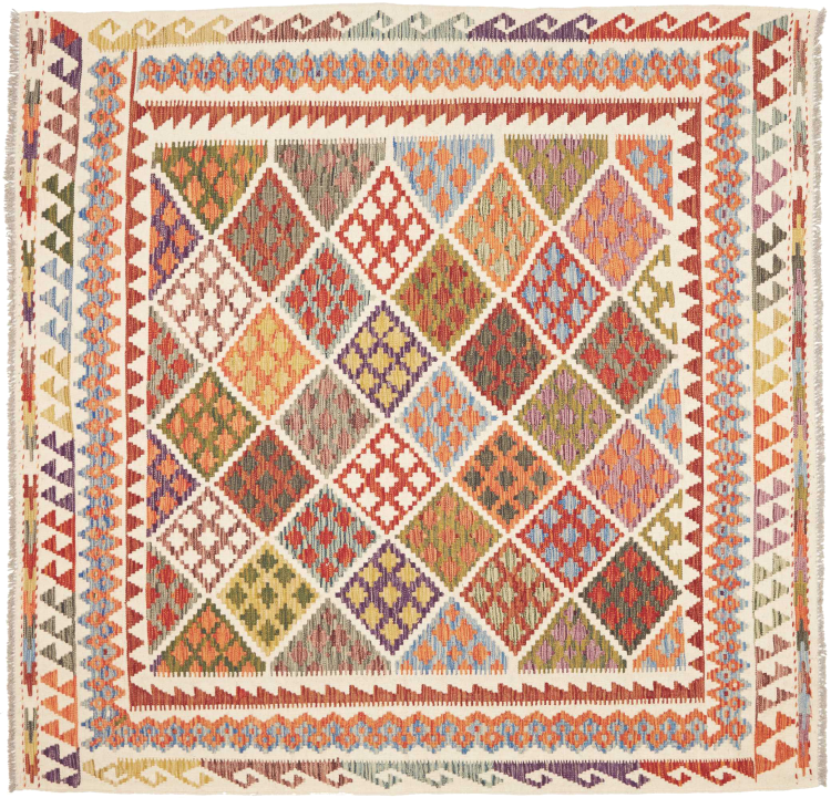 Mattans ID: 310955008375046 Storlek: 210x207 cm Tjocklek: ap. 3 mm Tillverkning: handvävd Lugg: Handspunnen ull Varp: Ull Ursprung: Afghanistan Ålder: Ny Vikt: ap. 7 kg I lager: Unik - Endast 1 i lager