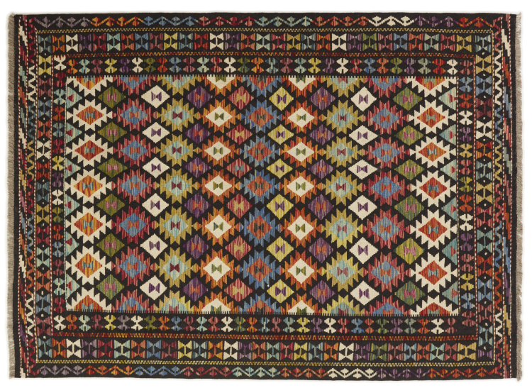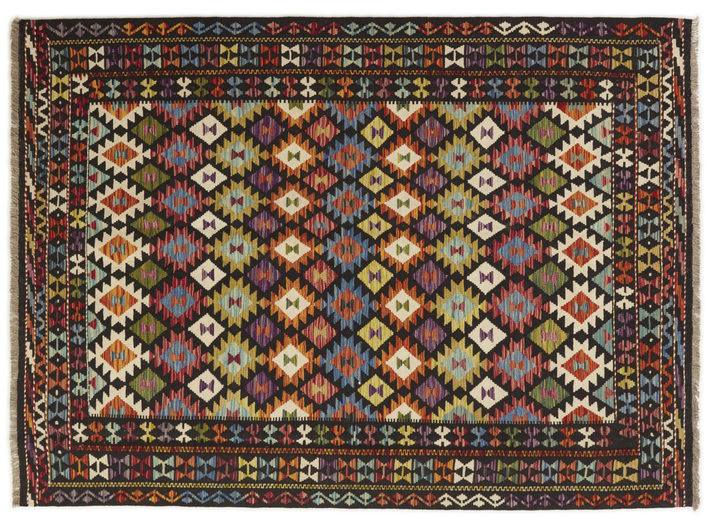 Denna handvävda kelim afghan är vacker tack vare de mångfacetterade färgerna och det typiska mönstret. Den var handvävd i Afghanistan av 100 % fårull. Den är utan tvekan mer robust och hållbar än maskintillverkade mattor. Dessutom har denna kelim en alldeles egen karaktär. En unik pjäs för dig och ditt hem som du aldrig kommer att hitta igen.