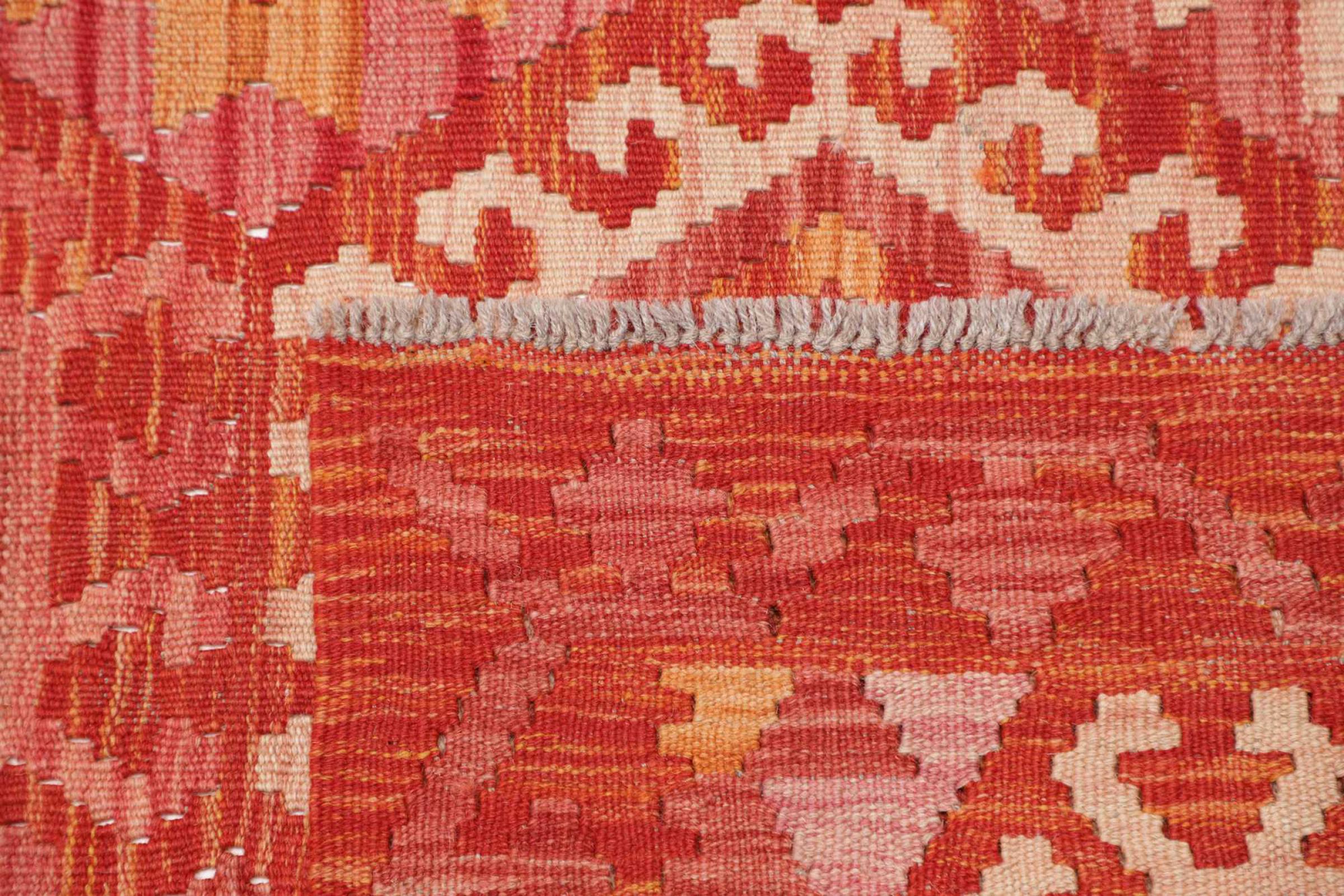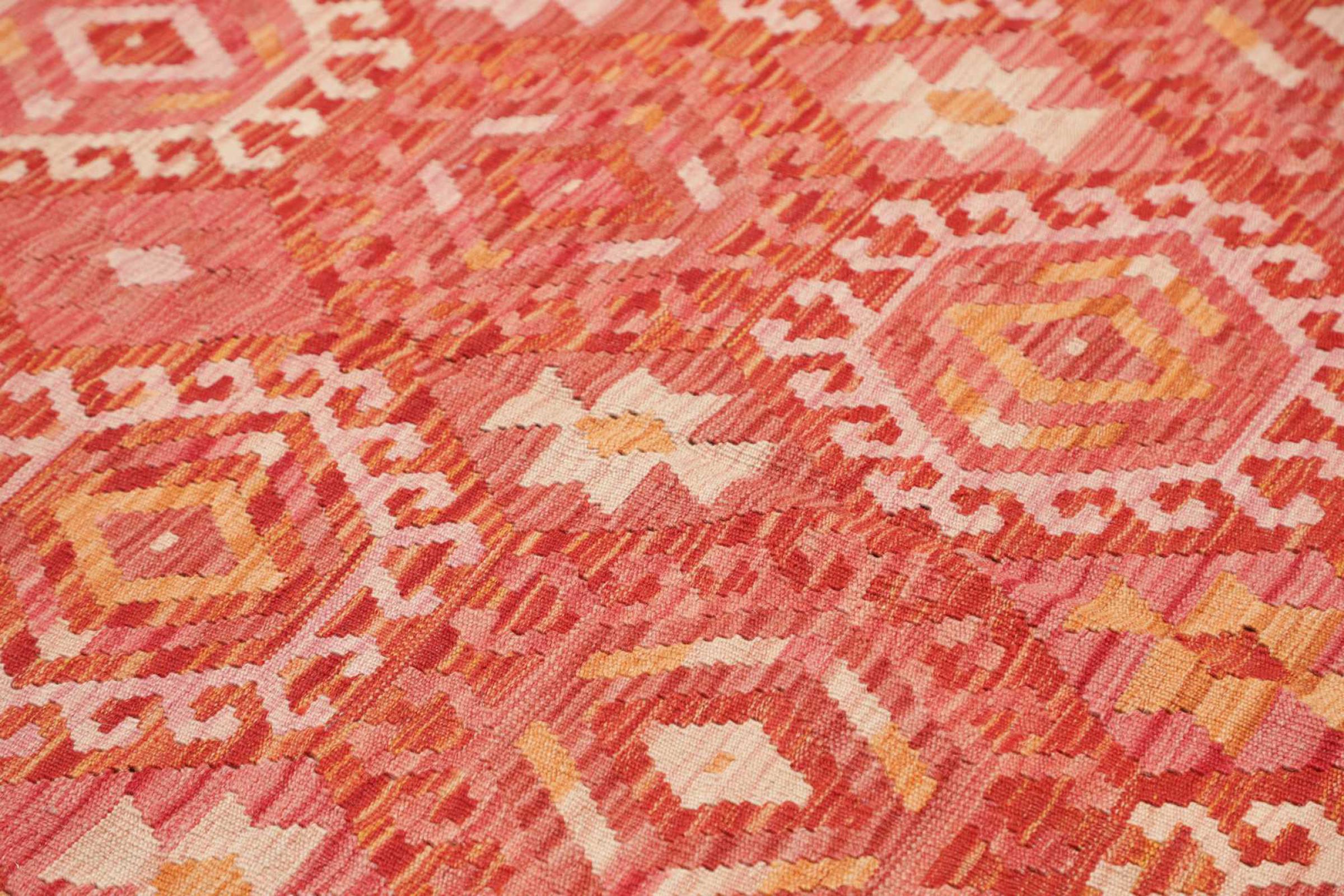 Denna handvävda kelim afghan är vacker tack vare de mångfacetterade färgerna och det typiska mönstret. Den var handvävd i Afghanistan av 100 % fårull. Den är utan tvekan mer robust och hållbar än maskintillverkade mattor. Dessutom har denna kelim en alldeles egen karaktär. En unik pjäs för dig och ditt hem som du aldrig kommer att hitta igen.