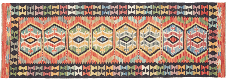 Mattans ID: 29124300355410 Storlek: 249x84 cm Tjocklek: ap. 3 mm Tillverkning: handvävd Lugg: Handspunnen ull Varp: Bomull Ursprung: Afghanistan Ålder: Ny Vikt: ap. 3 kg I lager: Unik - Endast 1 i lager