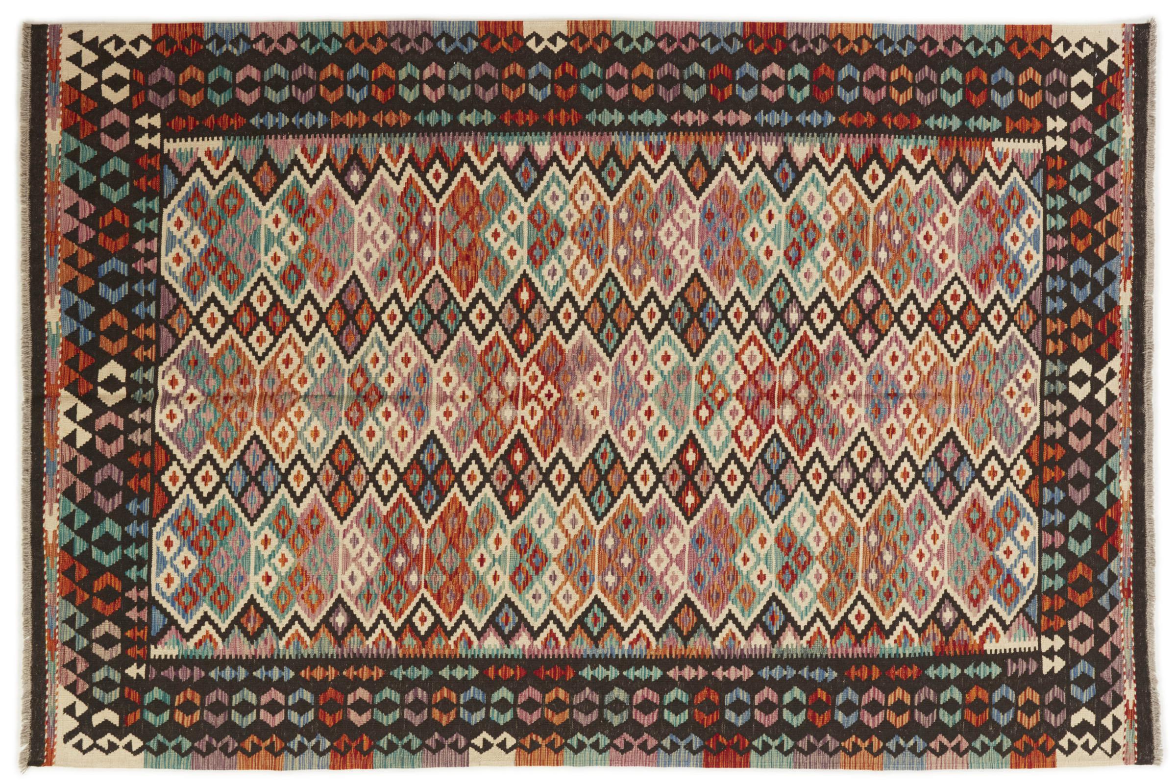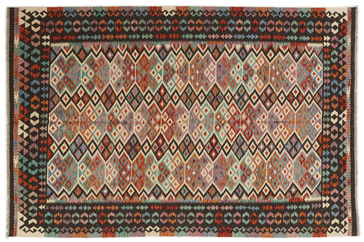Denna handvävda kelim afghan är vacker tack vare de mångfacetterade färgerna och det typiska mönstret. Den var handvävd i Afghanistan av 100 % fårull. Den är utan tvekan mer robust och hållbar än maskintillverkade mattor. Dessutom har denna kelim en alldeles egen karaktär. En unik pjäs för dig och ditt hem som du aldrig kommer att hitta igen.