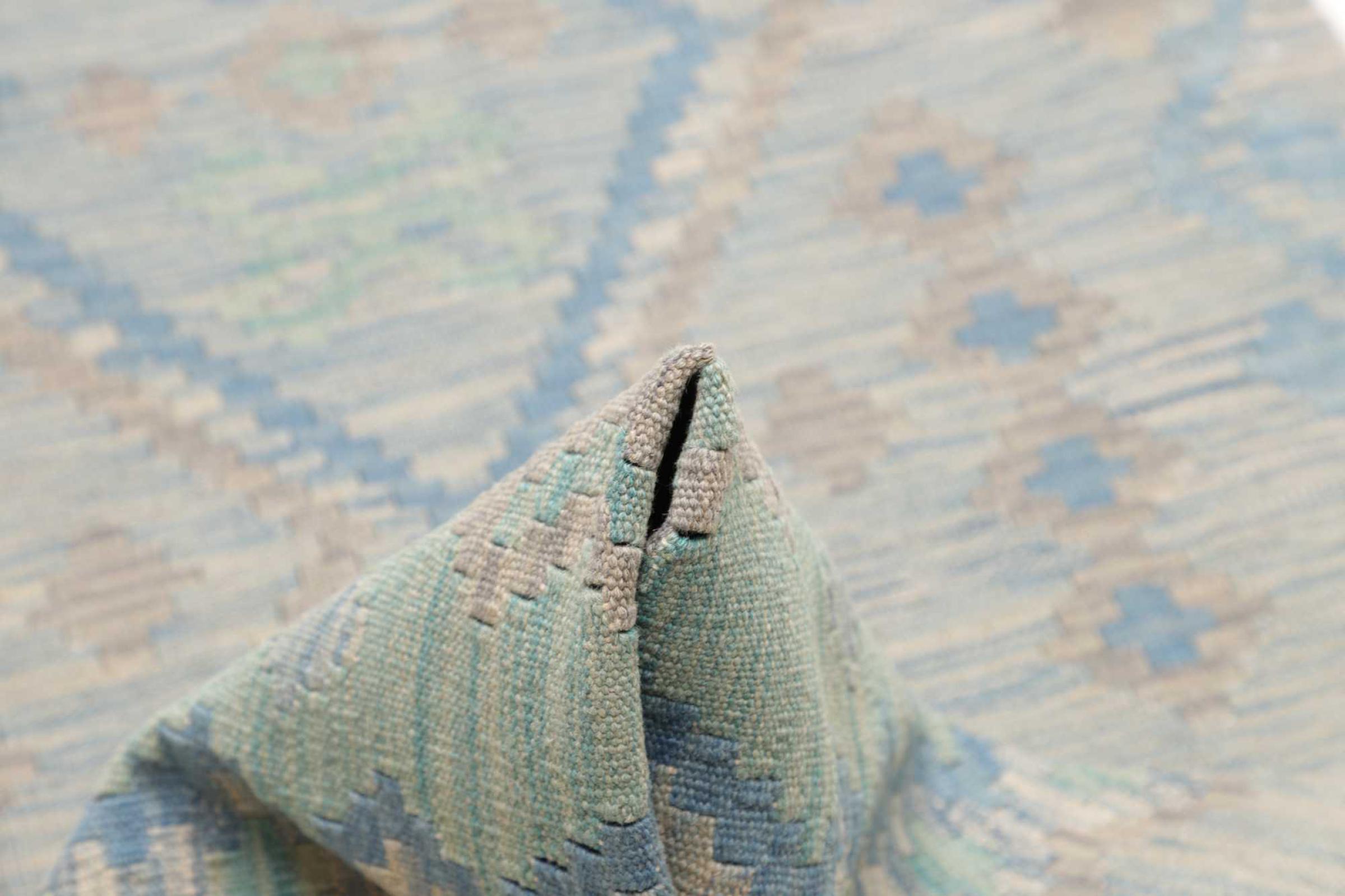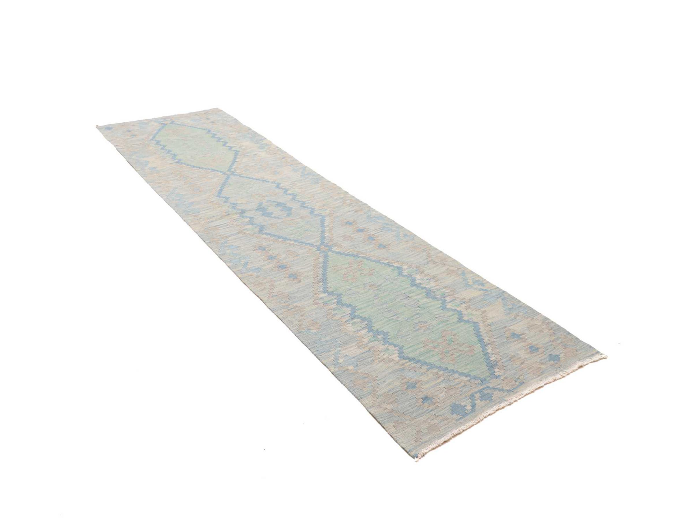 Denna handvävda kelim afghan är vacker tack vare de mångfacetterade färgerna och det typiska mönstret. Den var handvävd i Afghanistan av 100 % fårull. Den är utan tvekan mer robust och hållbar än maskintillverkade mattor. Dessutom har denna kelim en alldeles egen karaktär. En unik pjäs för dig och ditt hem som du aldrig kommer att hitta igen.