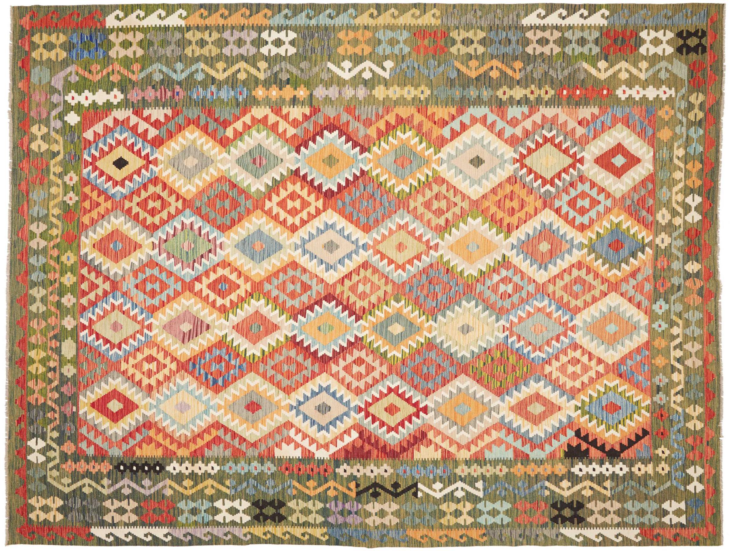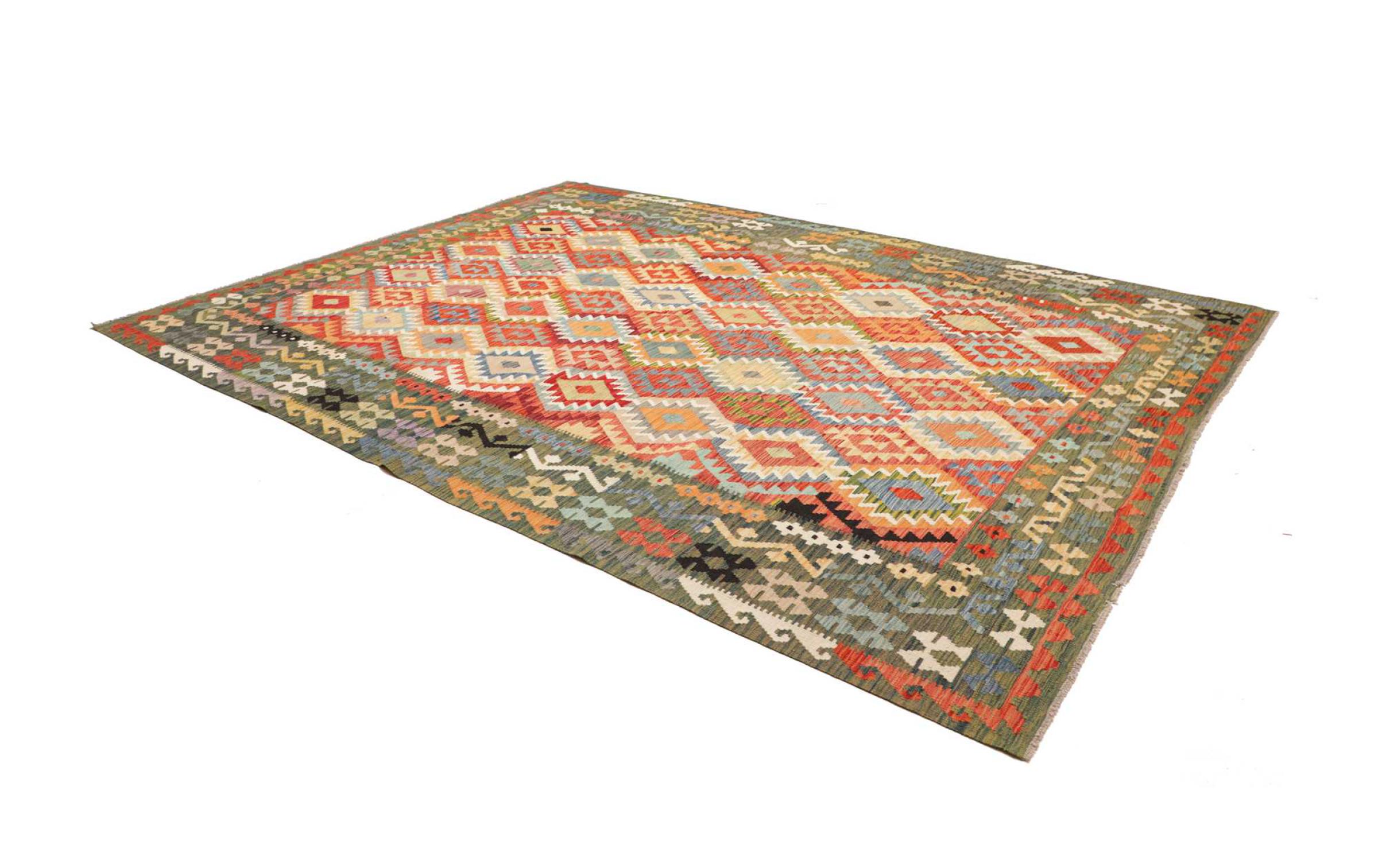 Denna handvävda kelim afghan är vacker tack vare de mångfacetterade färgerna och det typiska mönstret. Den var handvävd i Afghanistan av 100 % fårull. Den är utan tvekan mer robust och hållbar än maskintillverkade mattor. Dessutom har denna kelim en alldeles egen karaktär. En unik pjäs för dig och ditt hem som du aldrig kommer att hitta igen.