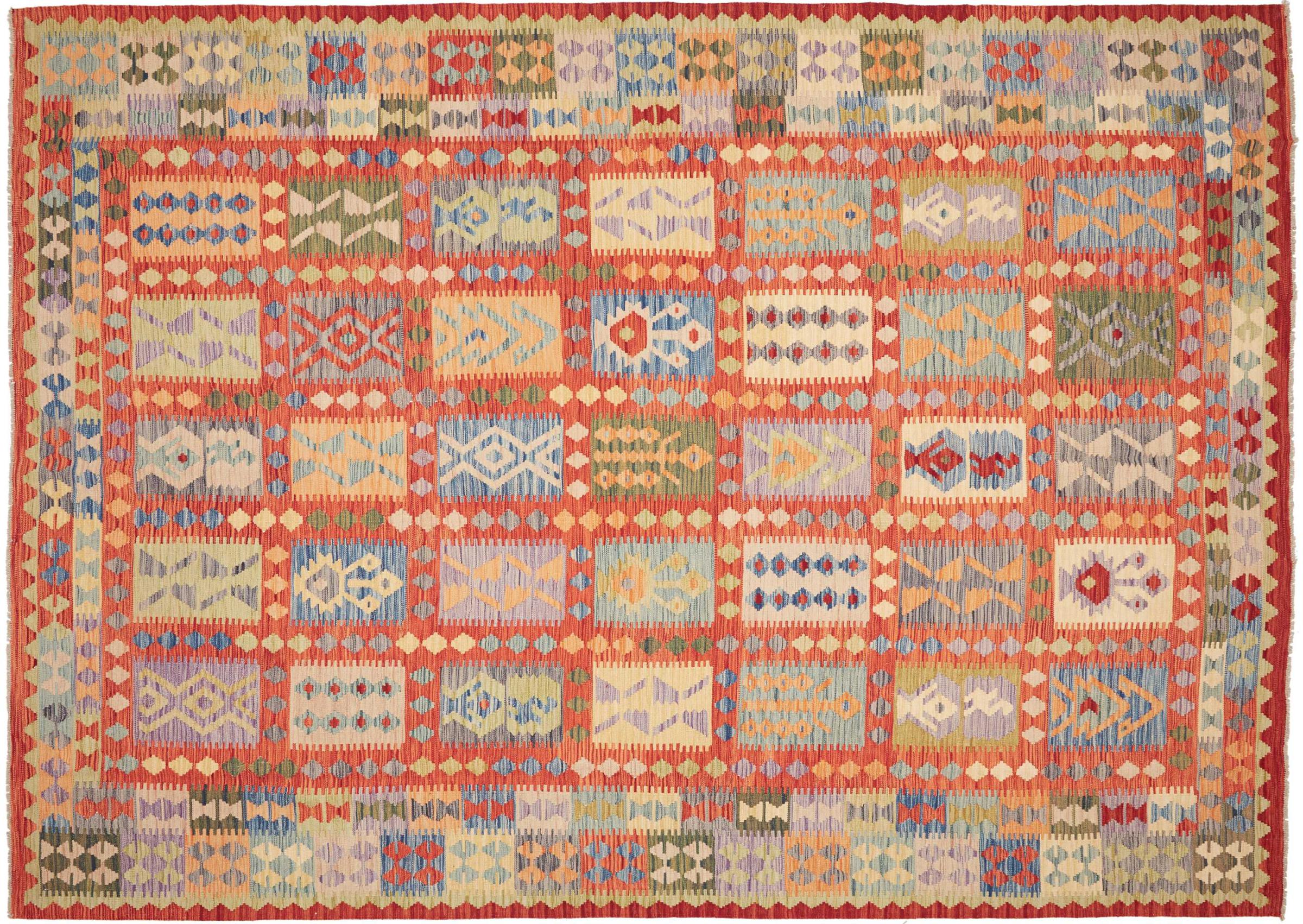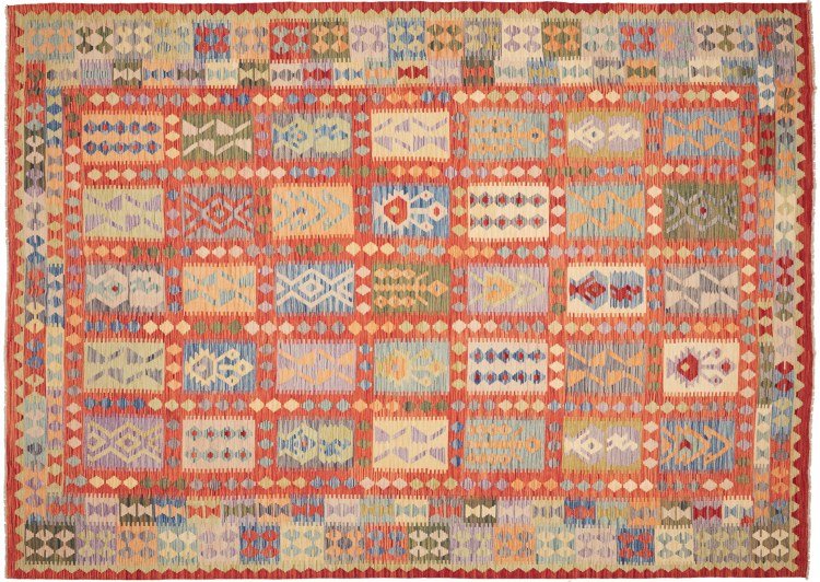 Denna handvävda kelim afghan är vacker tack vare de mångfacetterade färgerna och det typiska mönstret. Den var handvävd i Afghanistan av 100 % fårull. Den är utan tvekan mer robust och hållbar än maskintillverkade mattor. Dessutom har denna kelim en alldeles egen karaktär. En unik pjäs för dig och ditt hem som du aldrig kommer att hitta igen.