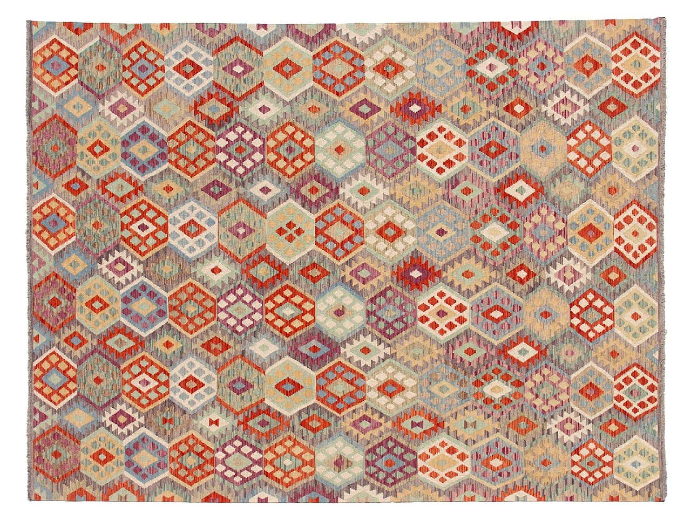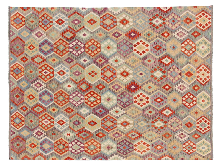 Denna handvävda kelim afghan är vacker tack vare de mångfacetterade färgerna och det typiska mönstret. Den var handvävd i Afghanistan av 100 % fårull. Den är utan tvekan mer robust och hållbar än maskintillverkade mattor. Dessutom har denna kelim en alldeles egen karaktär. En unik pjäs för dig och ditt hem som du aldrig kommer att hitta igen.